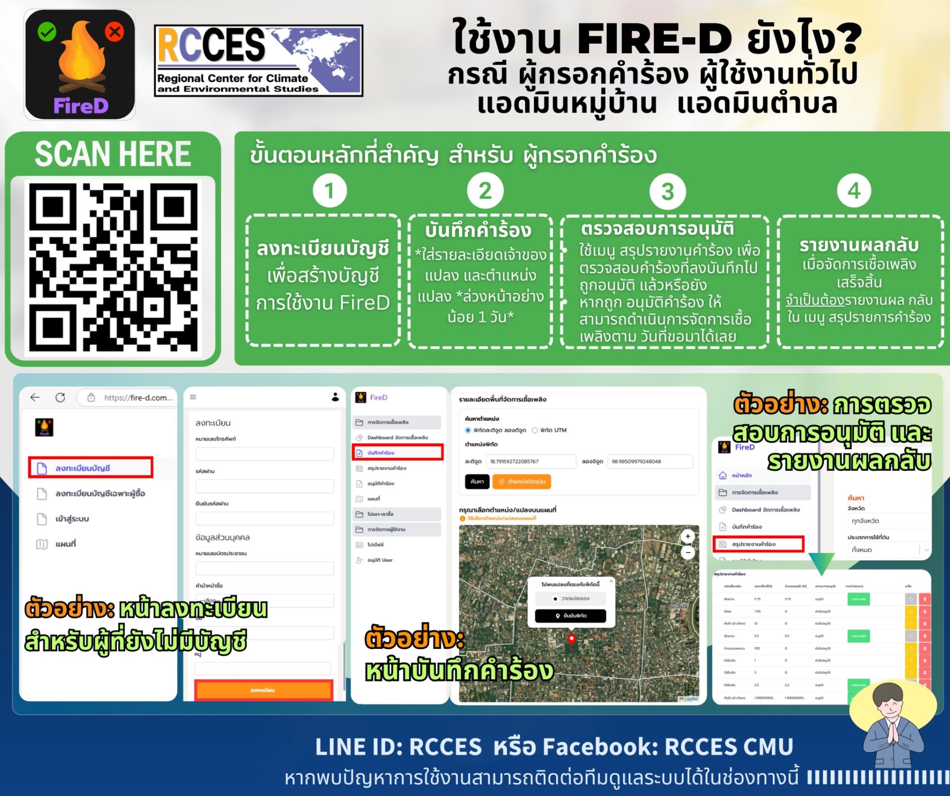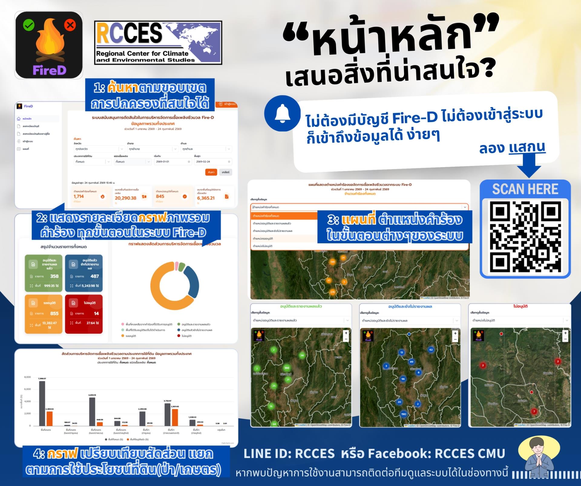 Fire-D หรือ ระบบสนับสนุนการตัดสินใจด้านการจัดการเชื้อเพลิงชีวมวล ถูกออกแบบและพัฒนาระบบ โดย ผู้ช่วยศาสตราจารย์ ดร.ชาคริต โชติอมรศักดิ์ ภาควิชาภูมิศาสตร์ คณะสังคมศาสตร์ มหาวิทยาลัยเชียงใหม่ โดย Fire-D เป็นแพลตฟอร์มที่รวบรวมและวิเคราะห์ข้อมูลจากหลายมิติ ทั้งข้อมูลเชิงพื้นที่ ข้อมูลเชื้อเพลิง และการพยากรณ์สถานการณ์หมอกควัน เพื่อนำมาประมวลผลร่วมกันอย่างครบวงจรเพื่อสนับสนุนการตัดสินใจทั้งระดับนโยบายและปฏิบัติการ เป็นเครื่องมือสำคัญที่ช่วยยกระดับการจัดการไฟจากเดิมที่เป็นการแก้ไขปัญหาเฉพาะหน้า ไปสู่การวางแผนเชิงรุกบนฐานข้อมูล ทำให้หน่วยงานสามารถตัดสินใจได้อย่างแม่นยำ และลดผลกระทบต่อคุณภาพอากาศได้อย่างมีประสิทธิภาพ