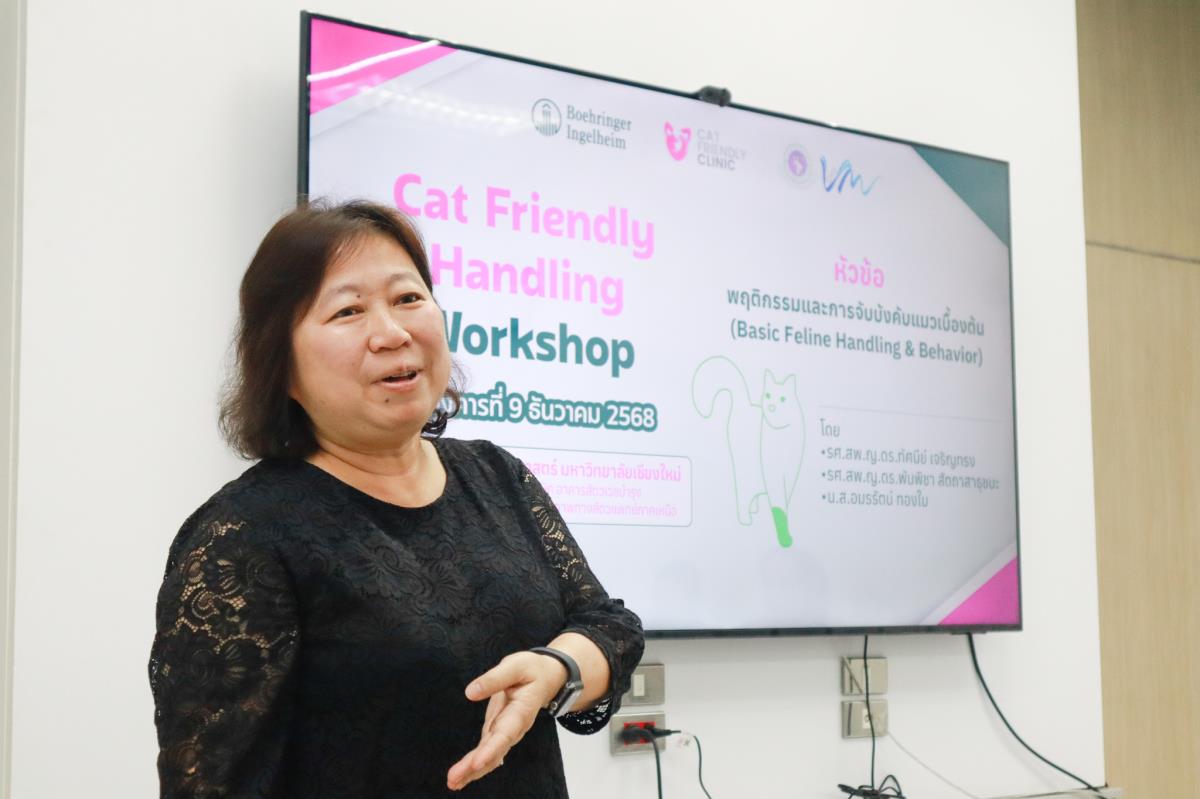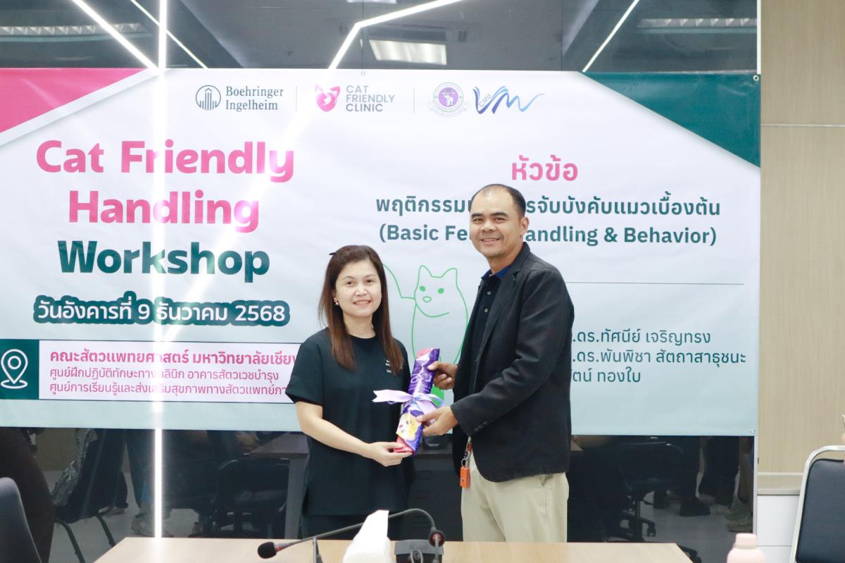 เมื่อวันที่ 9 ธันวาคม 2568 คณะสัตวแพทยศาสตร์ มหาวิทยาลัยเชียงใหม่ จัดอบรม “Cat Friendly Handling Workshop” โดยได้รับการสนับสนุนจาก บริษัท เบอริงเกอร์ อินเกลไฮม์ (ไทย) จำกัด มุ่งยกระดับแนวทางการดูแลและจับบังคับแมวอย่างอ่อนโยน เพื่อลดความเครียดของสัตว์ทั้งในด้านการเจาะเลือด การเก็บปัสสาวะ และการตรวจร่างกายอย่างปลอดภัย ณ ศูนย์เวชศาสตร์ชันสูตรโรคสัตว์และนวัตกรรมด้านสุขภาพสัตว์ (NOVEL CMU) โรงพยาบาลสัตว์แห่งใหม่