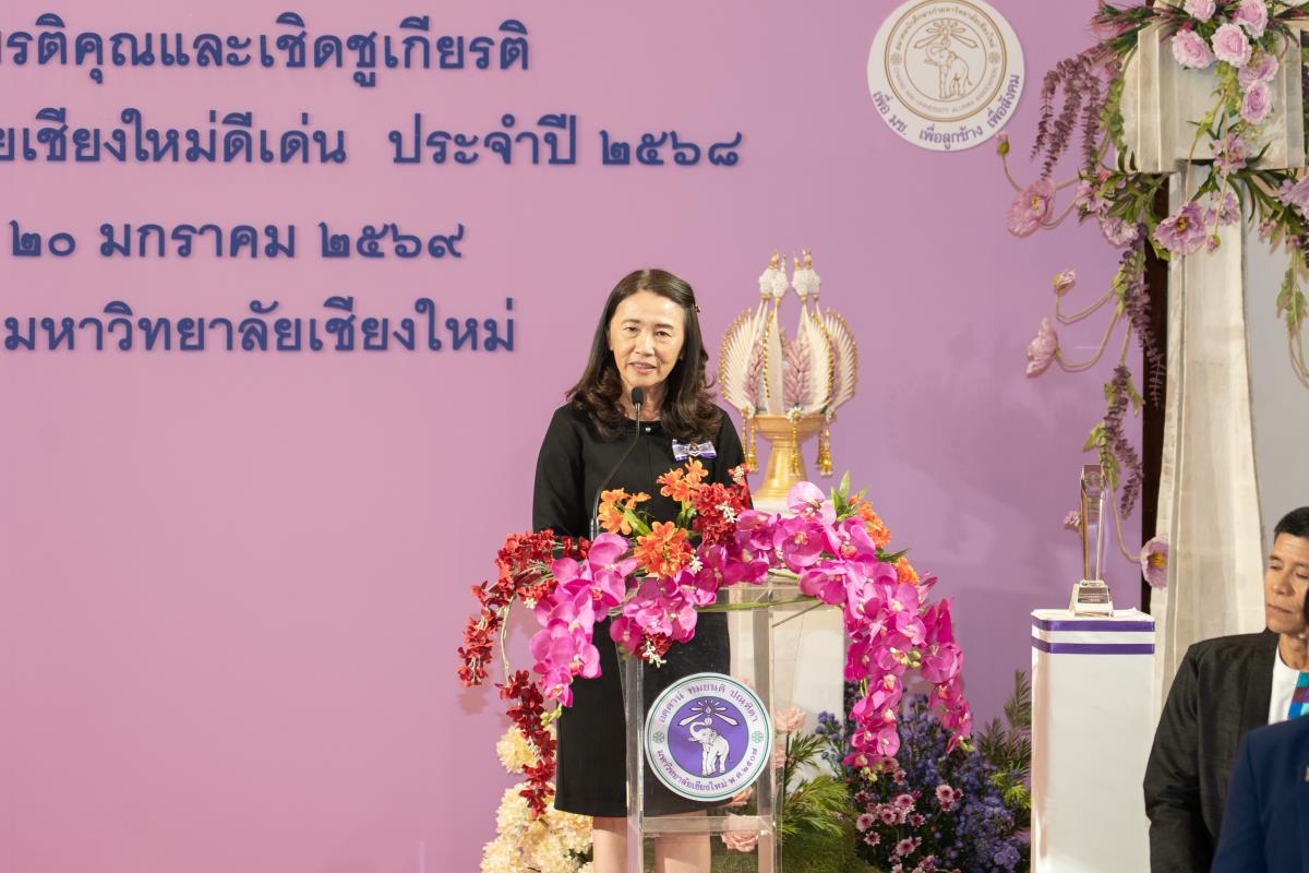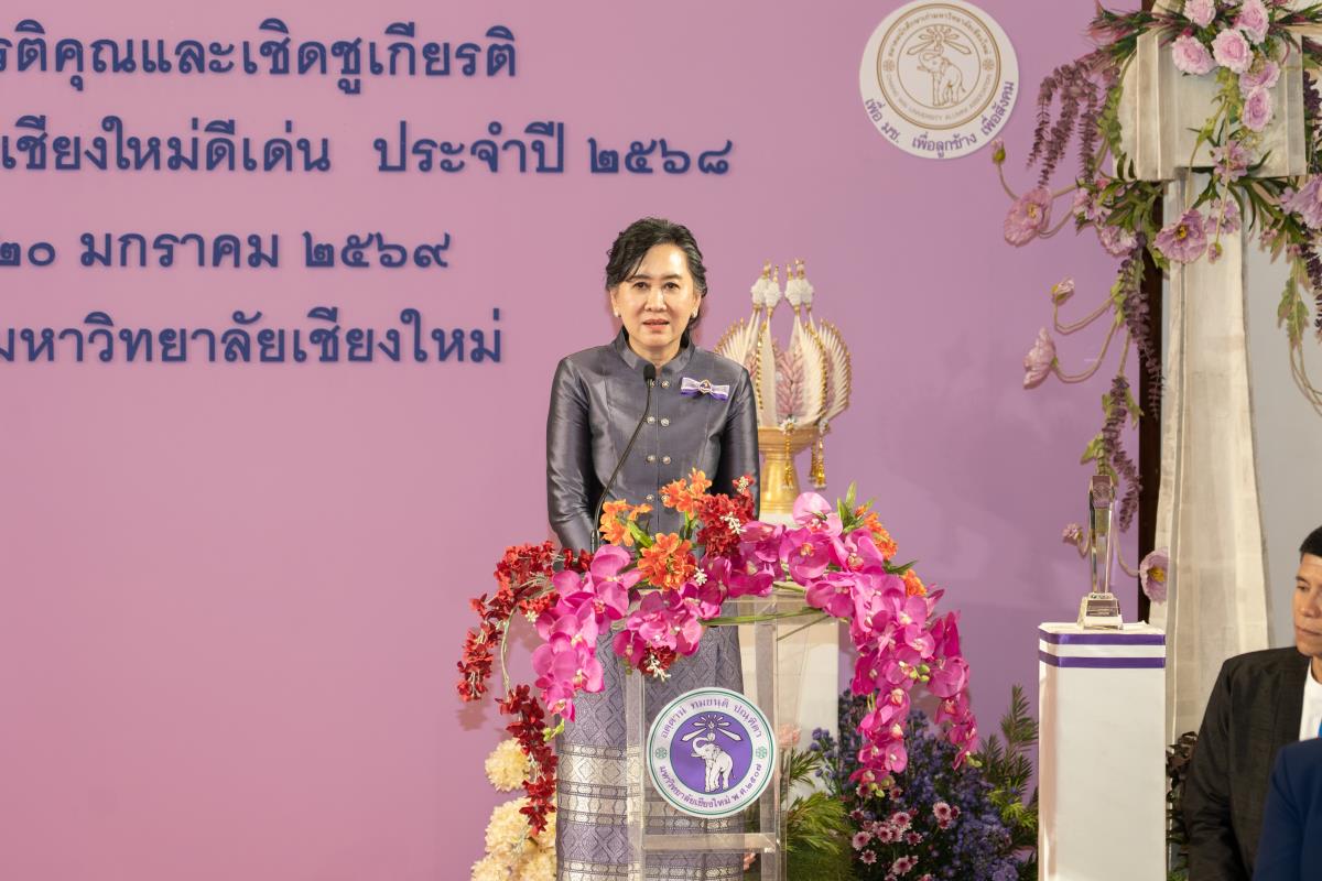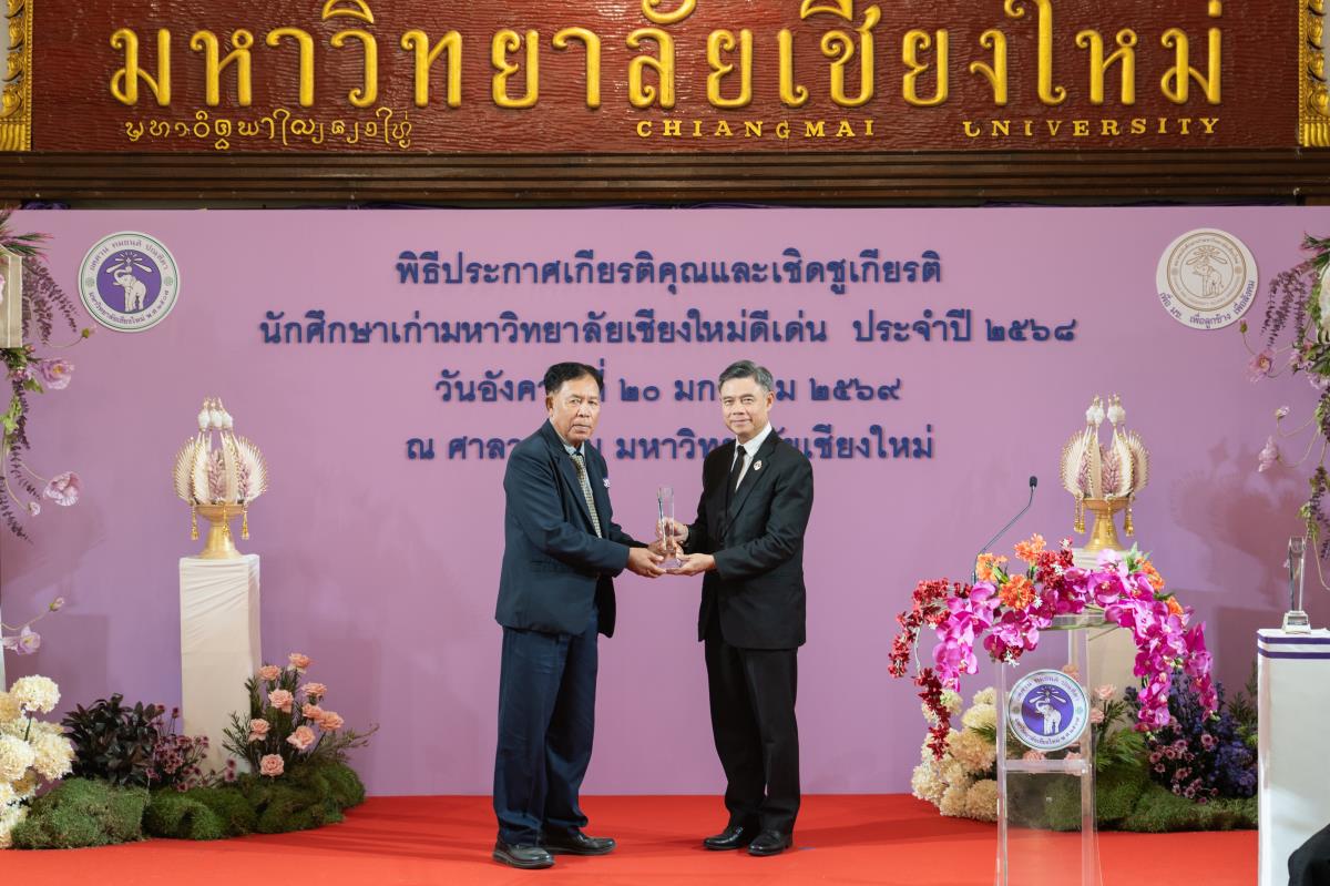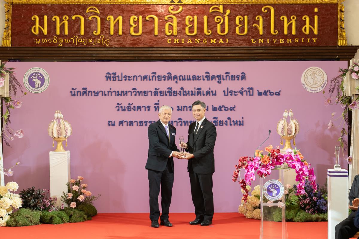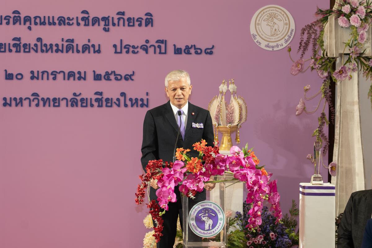 ศาสตราจารย์ ดร.นายแพทย์พงษ์รักษ์ ศรีบัณทิตมงคล อธิการบดีมหาวิทยาลัยเชียงใหม่ เป็นประธานในพิธีประกาศเกียรติคุณและแสดงความยินดีแก่นักศึกษาเก่ามหาวิทยาลัยเชียงใหม่ดีเด่น ประจำปี 2568 ทั้งภาครัฐและเอกชนร่วมกัน 7 สาขา ประกอบด้วย 1.สาขาวิชาการ 2.สาขาบริหารองค์กรการศึกษา 3.สาขาบริหารราชการ หรือ สาขาบริหารรัฐกิจ 4.สาขาบริหารธุรกิจ หรือ สาขาบริหารองค์กร 5.สาขาบริการสังคม 6.สาขาส่งเสริมศิลปวัฒนธรรม และสิ่งแวดล้อม 7. สาขาอื่นๆ เพื่อยกย่องและเชิดชูเกียรติให้แก่นักศึกษาเก่ามหาวิทยาลัยเชียงใหม่ที่ประสบความสำเร็จในหน้าที่การงาน มุ่งมั่นสร้างสรรค์พัฒนาตนเอง ครอบครัว หน่วยงาน องค์กร สนับสนุนและช่วยเหลือมหาวิทยาลัยในด้านต่างๆ เมื่อวันอังคารที่ 20 มกราคม 2569 ณ ศาลาธรรม มหาวิทยาลัยเชียงใหม่
