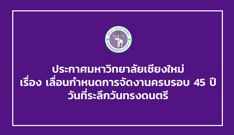 ประกาศ มช. เรื่อง เลื่อนกำหนดการจัดงานครบรอบ 45 ปี วันที่ระลึกวันทรงดนตรี
