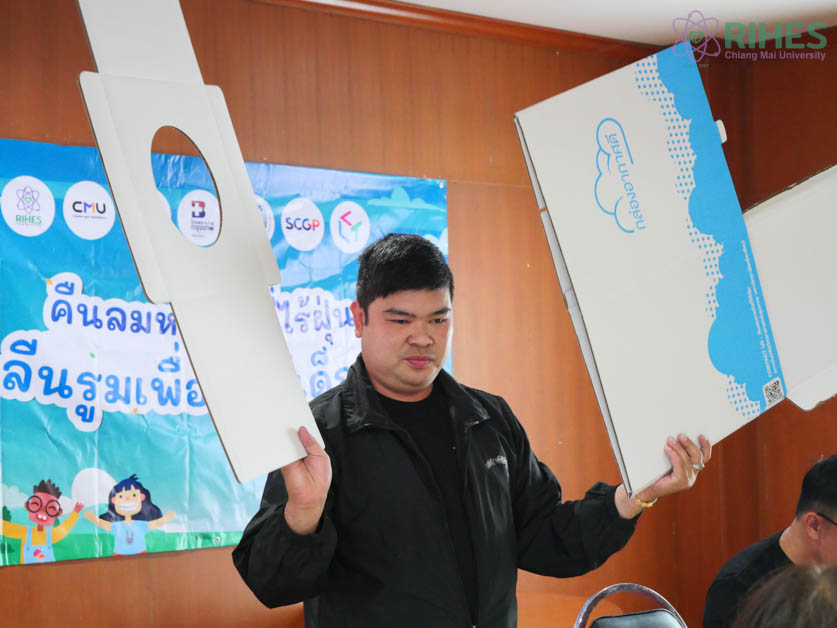 กิจกรรมดังกล่าวได้รับเกียรติจาก ร.ต.ท. นคร ปัญญาทิพย์ นายกเทศมนตรีตำบลเวียงพร้าว กล่าวเปิดงาน โดย ดร. แสวง กาวิชัย กล่าวถึงการดำเนินงานของโครงการคืนลมหายใจที่ไร้ฝุ่น คุณพัชราภา ธรรมเทศน์ กรรมการผู้จัดการ บริษัทลลิตา พีพีโอ จำกัด กล่าวถึงการสนับสนุนการผลิต “กล่องอากาศดี” และคุณธนัชชา ว่องอมรนิธิ ผู้อำนวยการฝ่ายขาย บริษัทสยามคราฟท์อุตสาหกรรม จำกัด (SCGP) กล่าวถึงความร่วมมือด้านกิจกรรมบริการชุมชนจากภาคเอกชน