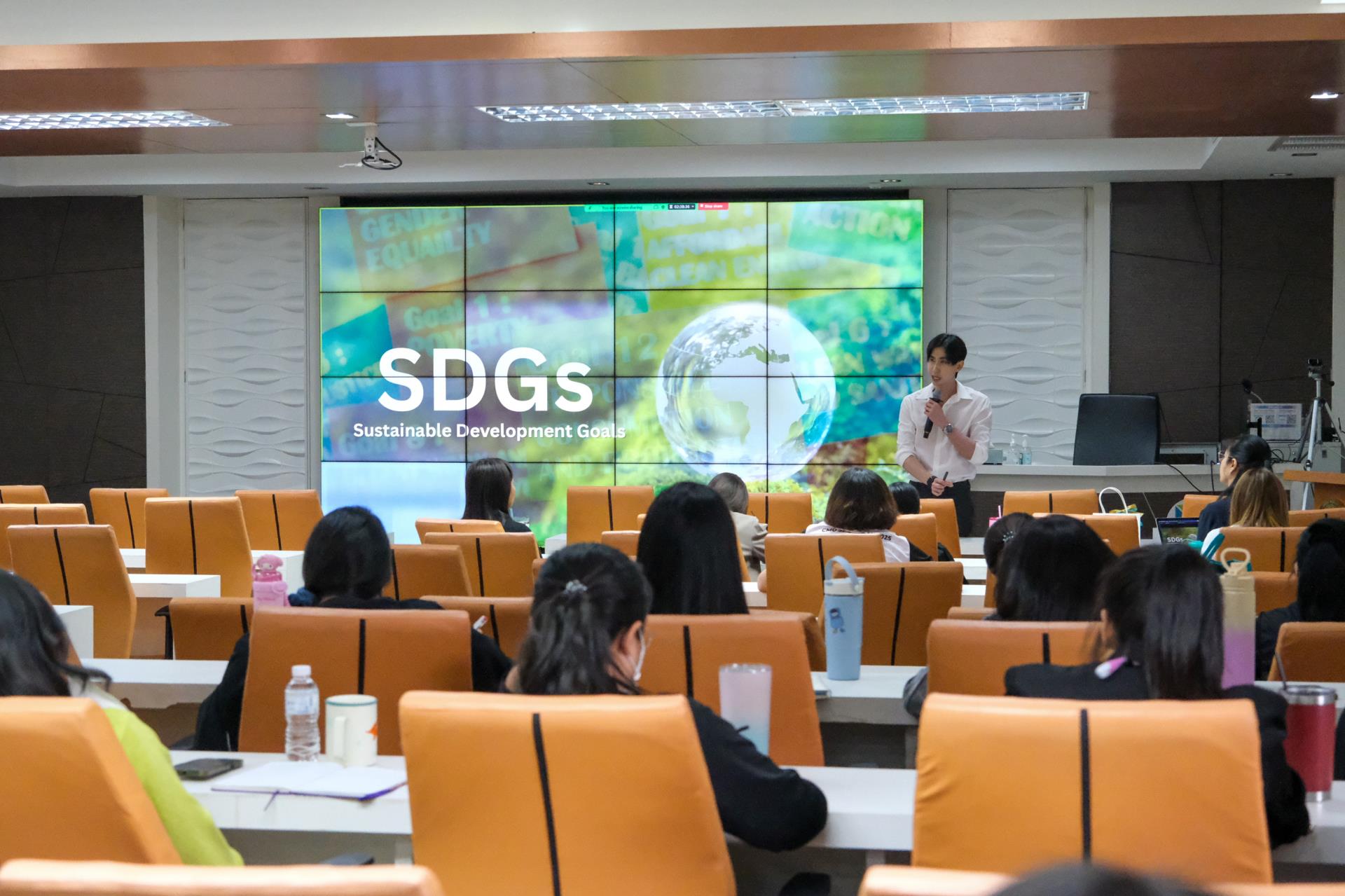 ในการนี้ ผศ. ดร.ก้องภู นิมานันท์ คณบดีคณะบริหารธุรกิจ พร้อมด้วย อาจารย์ ดร.ศิรวัจน์ ธีราโสภณพงศ์ ผู้ช่วยคณบดี ด้านเทคโนโลยีสารสนเทศและอาคารสถานที่ ได้ร่วมบรรยายให้ความรู้เกี่ยวกับแนวคิดด้านความยั่งยืน พร้อมถ่ายทอดนโยบายและแนวทางการดำเนินงาน Sustainable CMUBS เพื่อสร้างความรู้ ความเข้าใจ และความตระหนักรู้ให้แก่บุคลากรสายสนับสนุน ซึ่งมีบทบาทสำคัญในการสนับสนุนภารกิจด้านการบริหารและการให้บริการของคณะ โดยมุ่งส่งเสริมให้บุคลากรสามารถนำแนวคิดด้านความยั่งยืนไปประยุกต์ใช้ในการปฏิบัติงานและพัฒนากระบวนการทำงาน อันจะนำไปสู่การยกระดับประสิทธิภาพการดำเนินงานและการพัฒนาองค์กรอย่างยั่งยืน