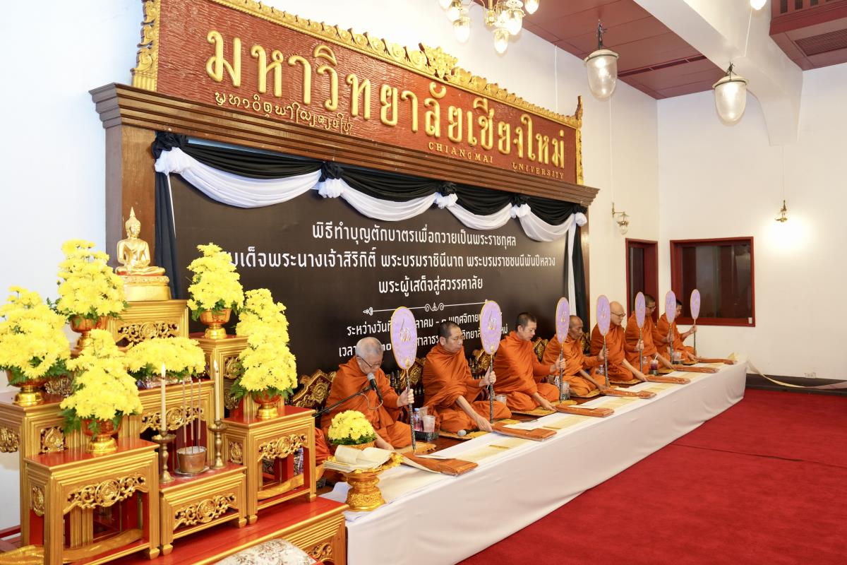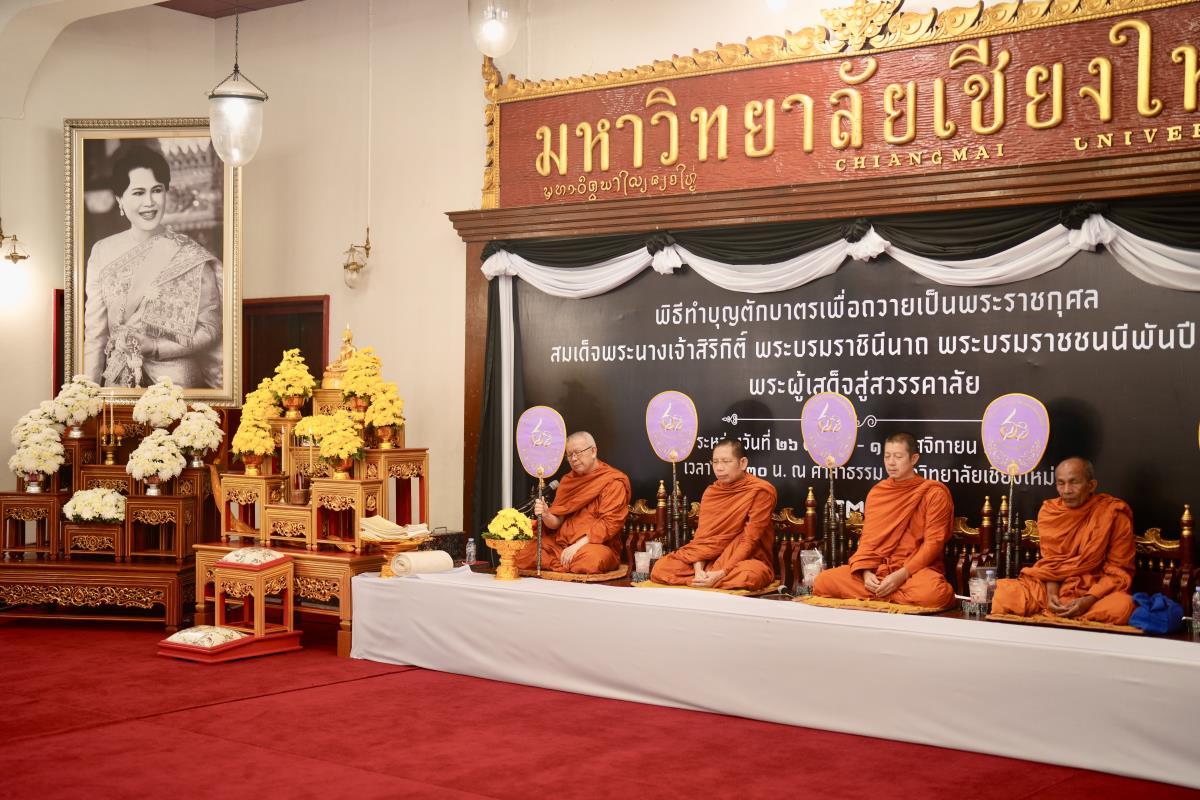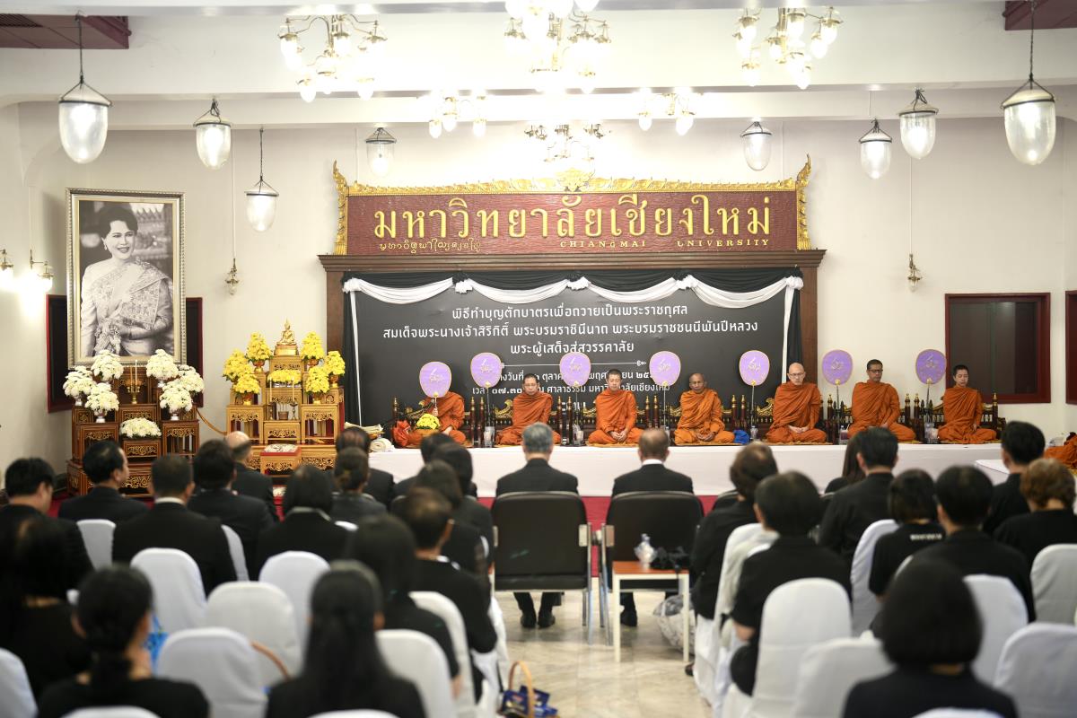 โดยมหาวิทยาลัยเชียงใหม่จะจัดพิธีทำบุญตักบาตรเพื่อถวายเป็นพระราชกุศล สมเด็จพระนางเจ้าสิริกิติ์ พระบรมราชินีนาถ พระบรมราชชนนีพันปีหลวง พระผู้เสด็จสู่สวรรคาลัยติดต่อกันเป็นเวลา 7 วัน ระหว่างวันอาทิตย์ที่ 26 ตุลาคม ถึงวันเสาร์ที่ 1 พฤศจิกายน 2568 เวลา 07.30 น. ณ ศาลาธรรม มหาวิทยาลัยเชียงใหม่ มีพระสงฆ์จำนวน 10 รูป จาก 7 วัด ร่วมพิธี