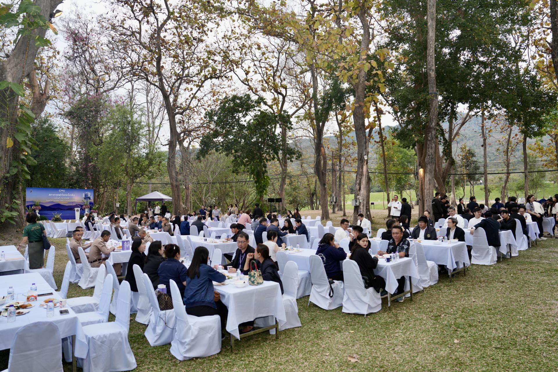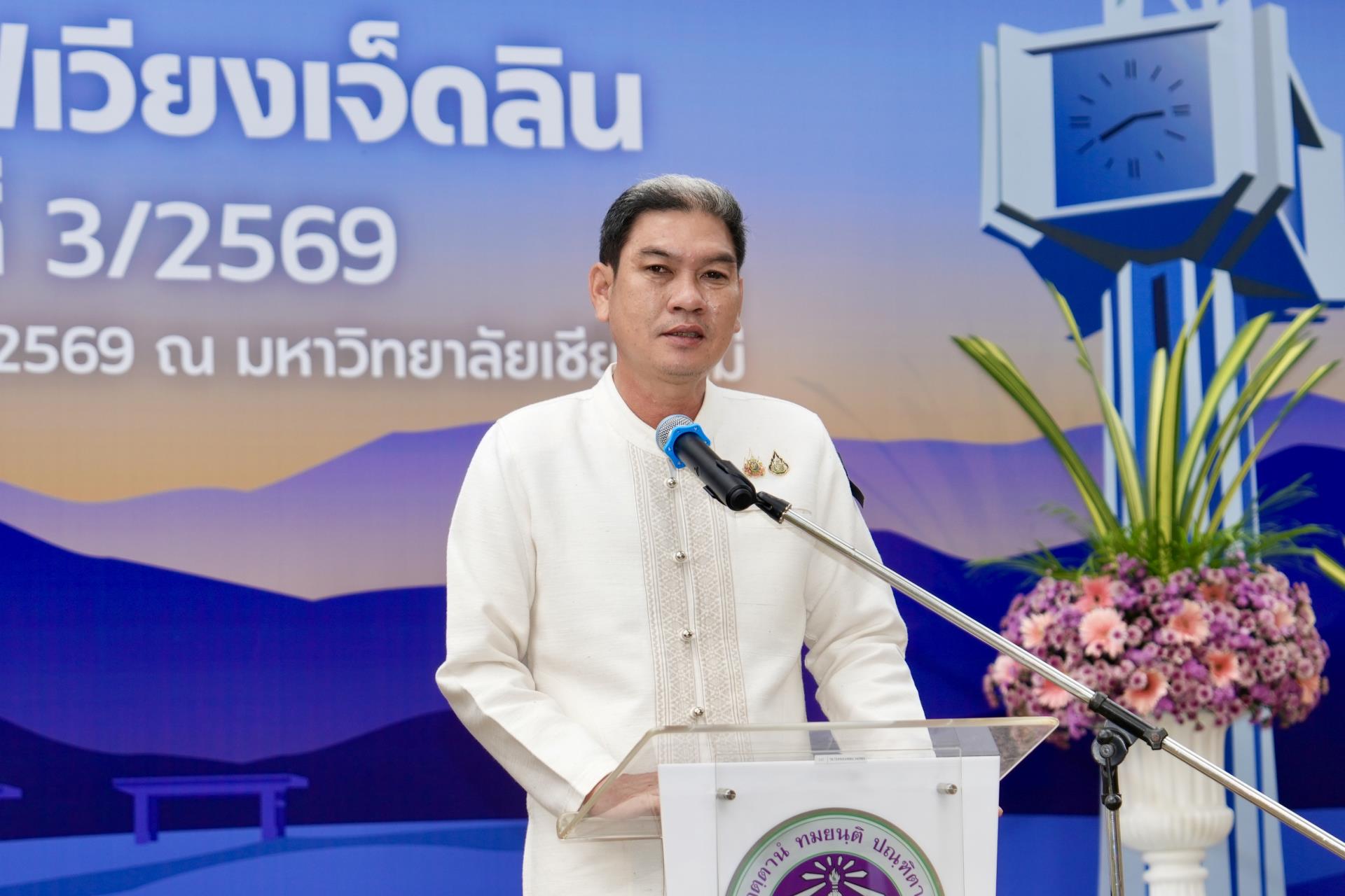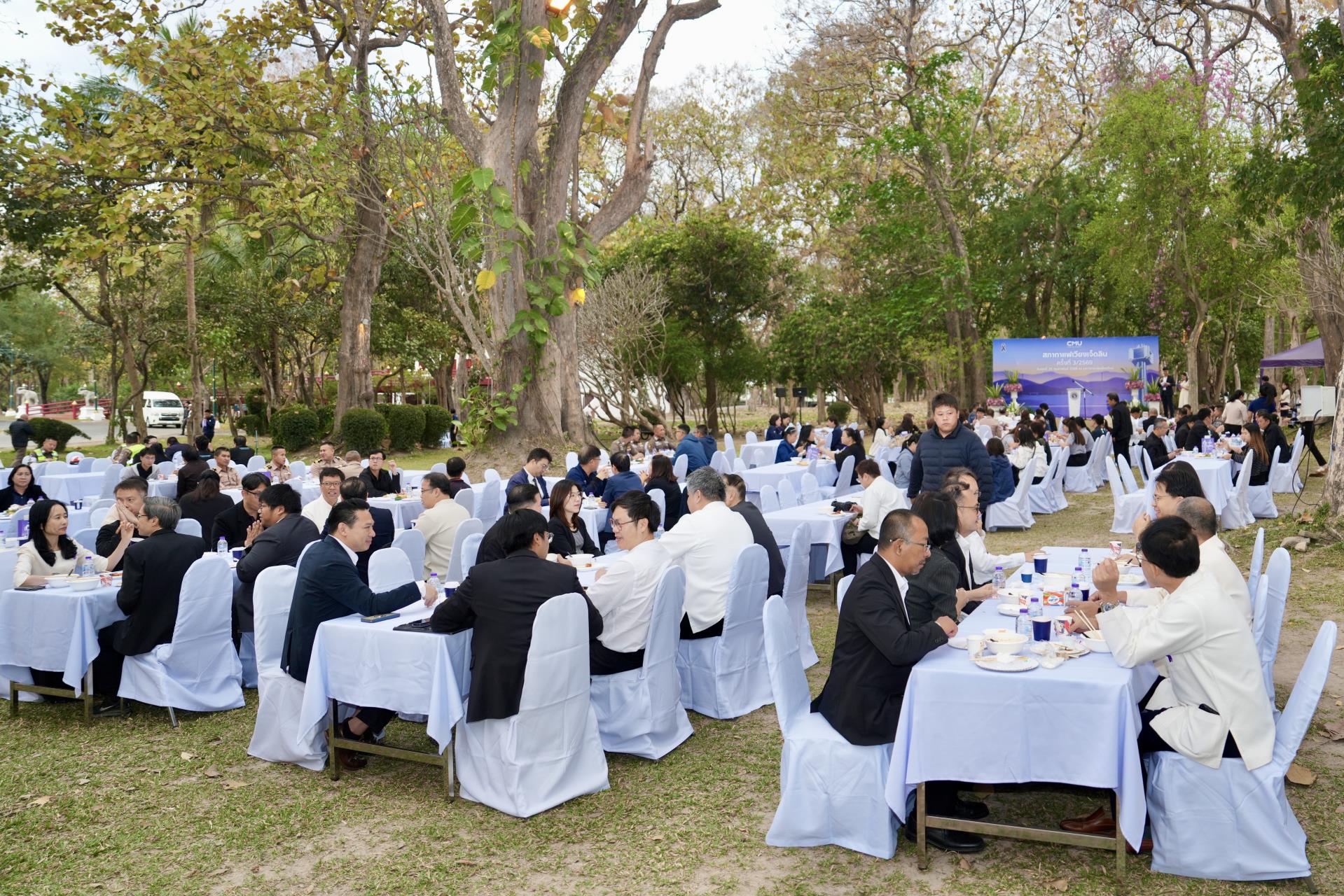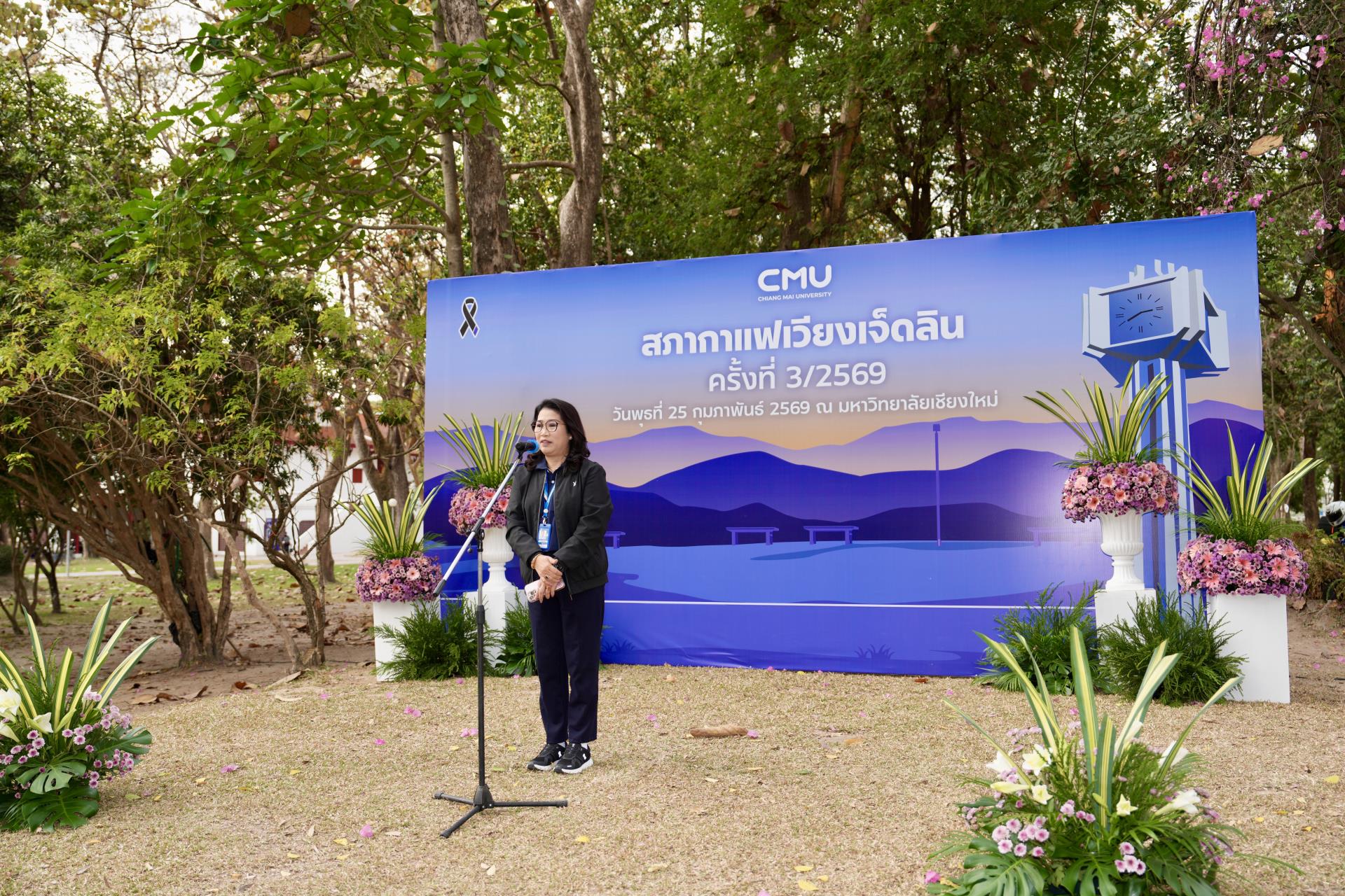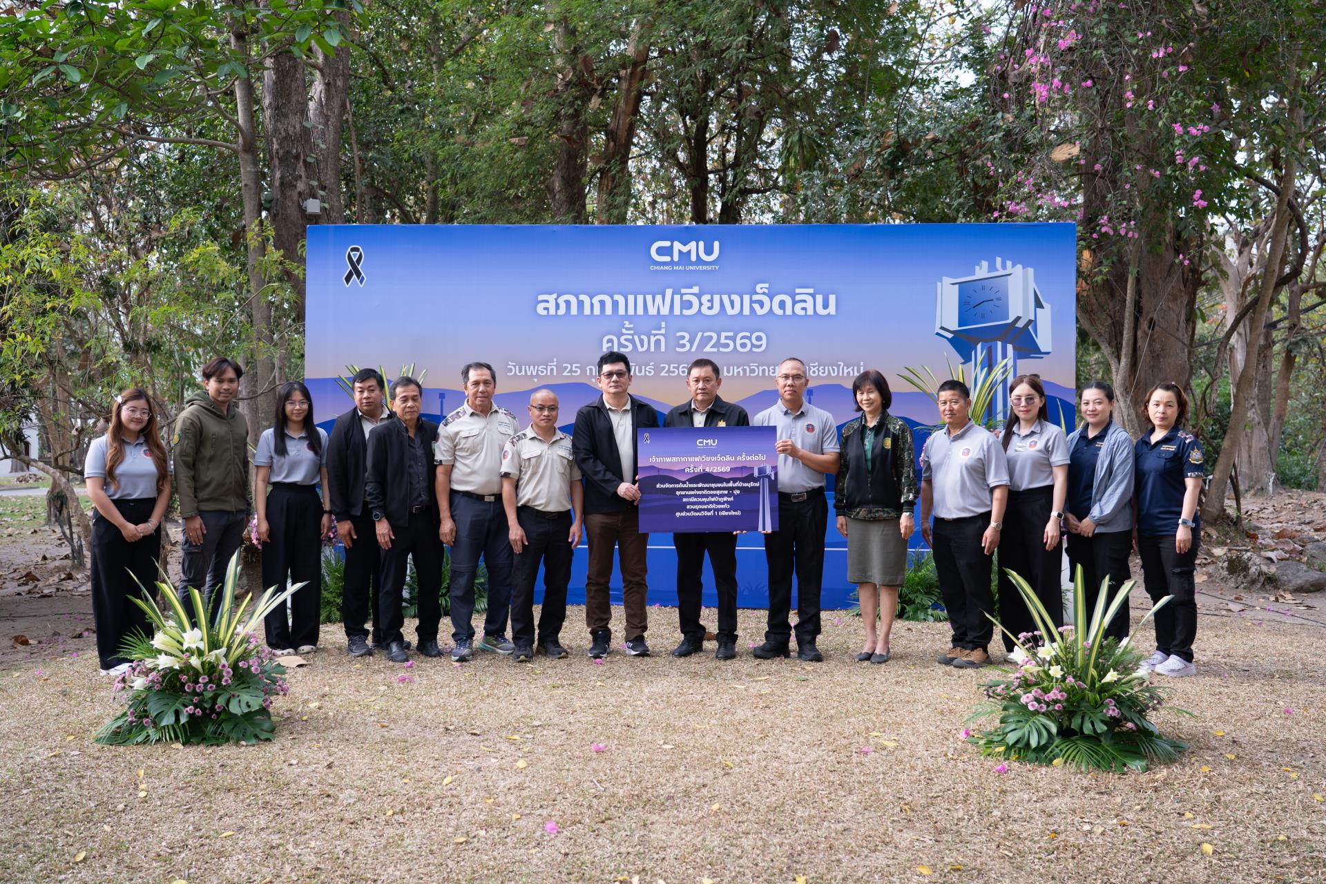 ศาสตราจารย์ ดร.นายแพทย์พงษ์รักษ์ ศรีบัณฑิตมงคล อธิการบดีมหาวิทยาลัยเชียงใหม่ กล่าวต้อนรับ นายรัฐพล นราดิศร ผู้ว่าราชการจังหวัดเชียงใหม่ พร้อมด้วยคณะผู้บริหาร ผู้แทน เจ้าหน้าที่ จากหน่วยงาน องค์กรต่างๆ ในเขตพื้นที่เวียงเจ็ดลิน ที่มาร่วมกิจกรรมสภากาแฟเวียงเจ็ดลิน ครั้งที่ 3/2569 ซึ่งมหาวิทยาลัยเชียงใหม่ เป็นเจ้าภาพจัดงาน เพื่อแลกเปลี่ยนข้อคิดเห็น ข้อมูลข่าวสาร กิจกรรมต่างๆ ของแต่ละหน่วยงาน และส่งมอบป้ายเจ้าภาพจัดกิจกรรมครั้งต่อไปให้แก่ส่วนจัดการต้นน้ำและพัฒนาชุมชนในพื้นที่ป่าอนุรักษ์ อุทยานดอยสุเทพ – ปุย สถานีควบคุมไฟป่าภูพิงค์ สวนรุกขชาติห้วยแก้ว และศูนย์วนวัฒนวิจัยที่ 1 (เชียงใหม่) ณ ลานสัก ศาลาธรรม มหาวิทยาลัยเชียงใหม่ เมื่อวันพุธที่ 25 กุมภาพันธ์ พ.ศ. 2569