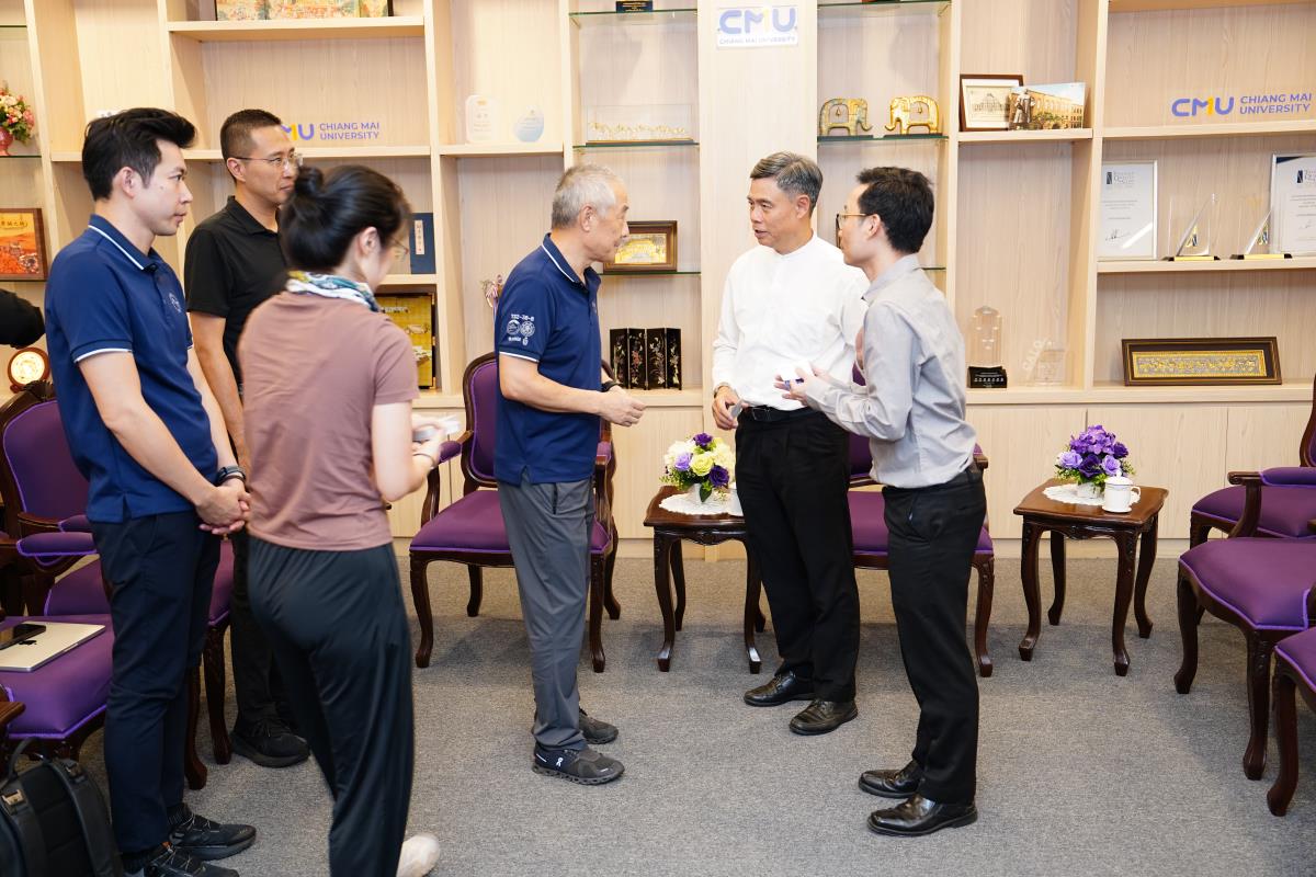 ศาสตราจารย์ ดร.นพ.พงษ์รักษ์ ศรีบัณฑิตมงคล อธิการบดีมหาวิทยาลัยเชียงใหม่ พร้อมด้วยคณะผู้บริหารมหาวิทยาลัยเชียงใหม่ ให้การต้อนรับProf. Wang Jian, Co-founder and Chairman of Beijing GBI Biotech Co., Ltd. (BGI) สาธารณรัฐประชาชนจีน และคณะผู้บริหารจากบริษัท BGI ในโอกาสที่มาเยี่ยมเยือนมหาวิทยาลัยเชียงใหม่ และปรึกษาหารือเพื่อสร้างความร่วมมือในการตรวจวินิจฉัยธาลัสซีเมีย เมื่อวันอังคารที่ 1 ตุลาคม 2567 ณ ห้องรับรอง มล.ปิ่น มาลากุล อาคารสำนักงานมหาวิทยาลัย 1 มหาวิทยาลัยเชียงใหม่