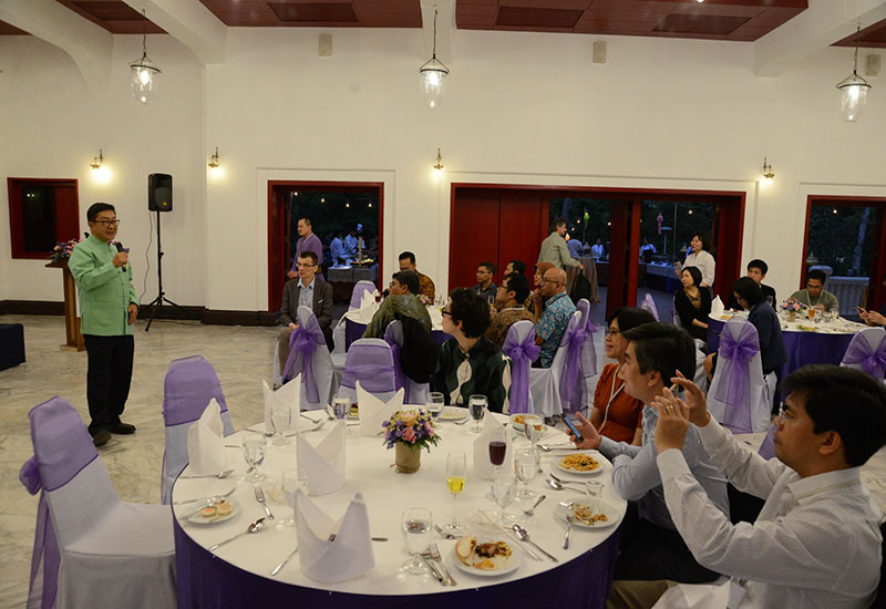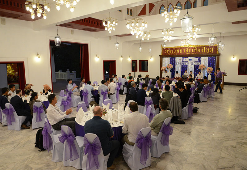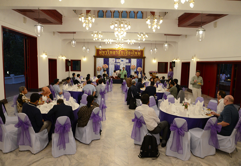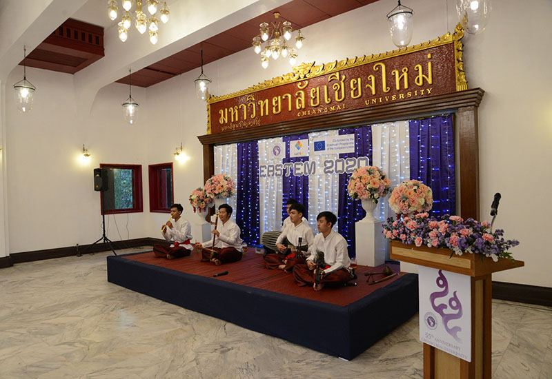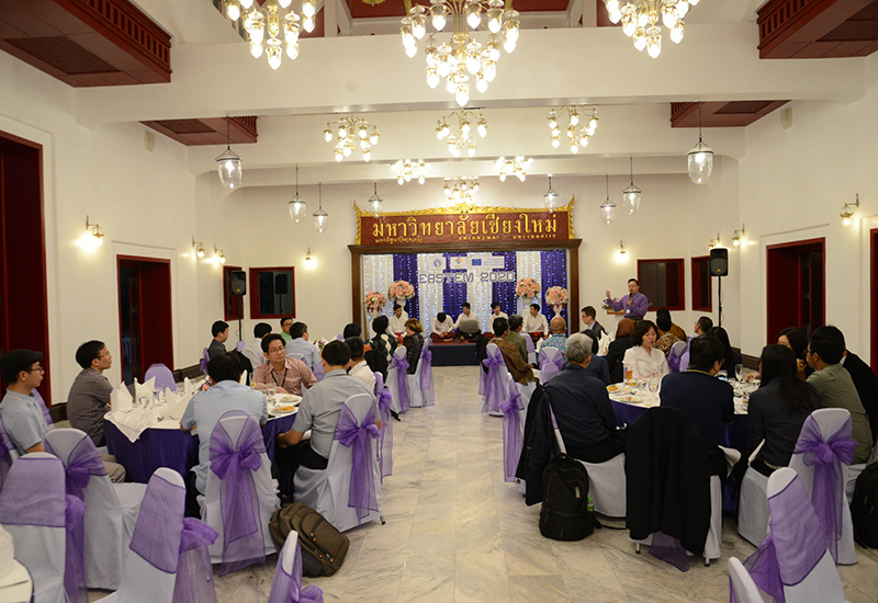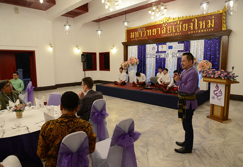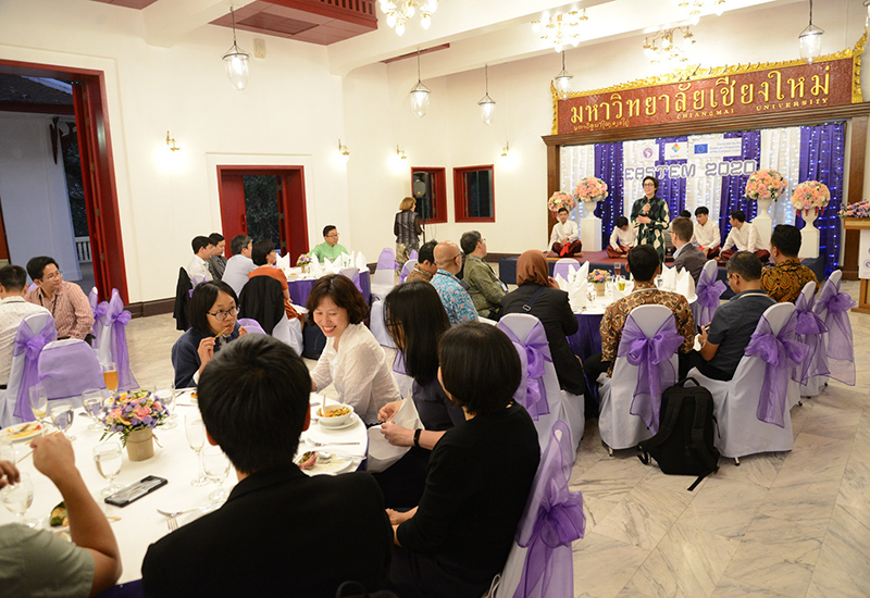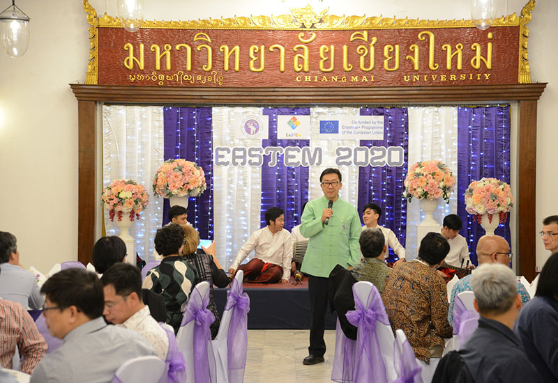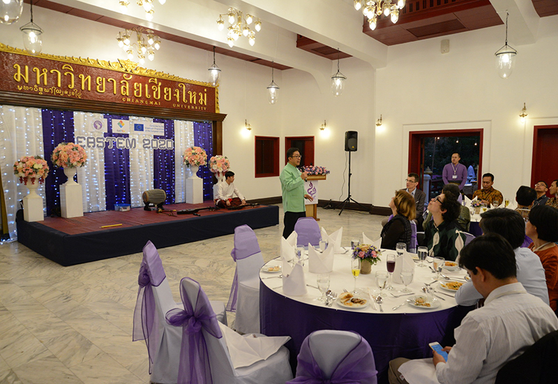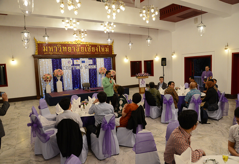 รองศาสตราจารย์ โรม จิรานุกรม รองอธิการบดีมหาวิทยาลัยเชียงใหม่ กล่าวต้อนรับในงานเลี้ยงต้อนรับ นักวิชาการจากนานาชาติ จากทวียุโรป เอเชีย และคณะผู้เข้าร่วมการประชุมวิชาการนานาชาติ EASTEM 2020 ณ ศาลาธรรม มหาวิทยาลัยเชียงใหม่ วันพุธที่ 12 กุมภาพันธ์ พ.ศ. 2563
