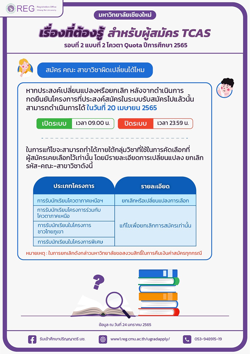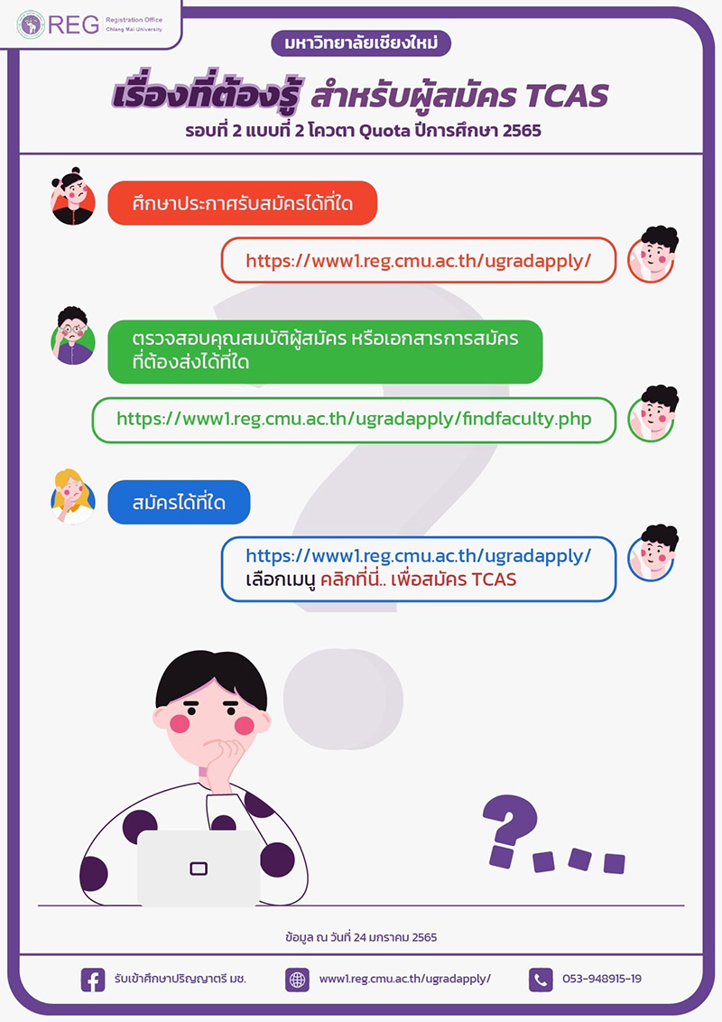 มช. รับสมัคร TCAS รอบที่ 2 โควตา ถึง 24 กุมภาพันธ์นี้