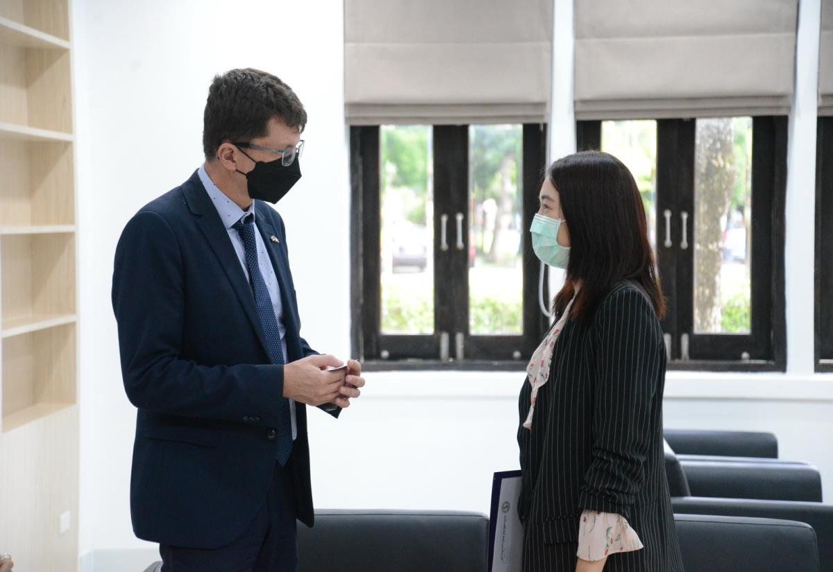 ผู้ช่วยศาสตราจารย์ ดร.ทพญ.วรกัญญา บูรณพัฒนา ผู้ช่วยอธิการบดีมหาวิทยาลัยเชียงใหม่ ให้การต้อนรับ Mr. Xavier Grosmitre, Attache for Scientific and Higher Education Cooperation และคณะจากหน่วยงานแคมปัสฟรานส์ (Campus France) สถานทูตฝรั่งเศสประจำประเทศไทย ในโอกาสที่มาเยี่ยมคารวะผู้บริหารมหาวิทยาลัยเชียงใหม่ และพบปะนักศึกษาบุคลากรของมหาวิทยาลัยเชียงใหม่ ที่มีความสนใจเกี่ยวกับการศึกษาต่อในระดับปริญญาตรี ปริญญาโท และปริญญาเอก ตลอดจนการขอทุนสนับสนุนด้านการวิจัย ณ ห้องรับรอง 1 สำนักงานมหาวิทยาลัย มหาวิทยาลัยเชียงใหม่ และสำนักบริการเทคโนโลยีสารสนเทศ (ITSC) วันพุธที่ 21 กันยายน พ.ศ. 2565
