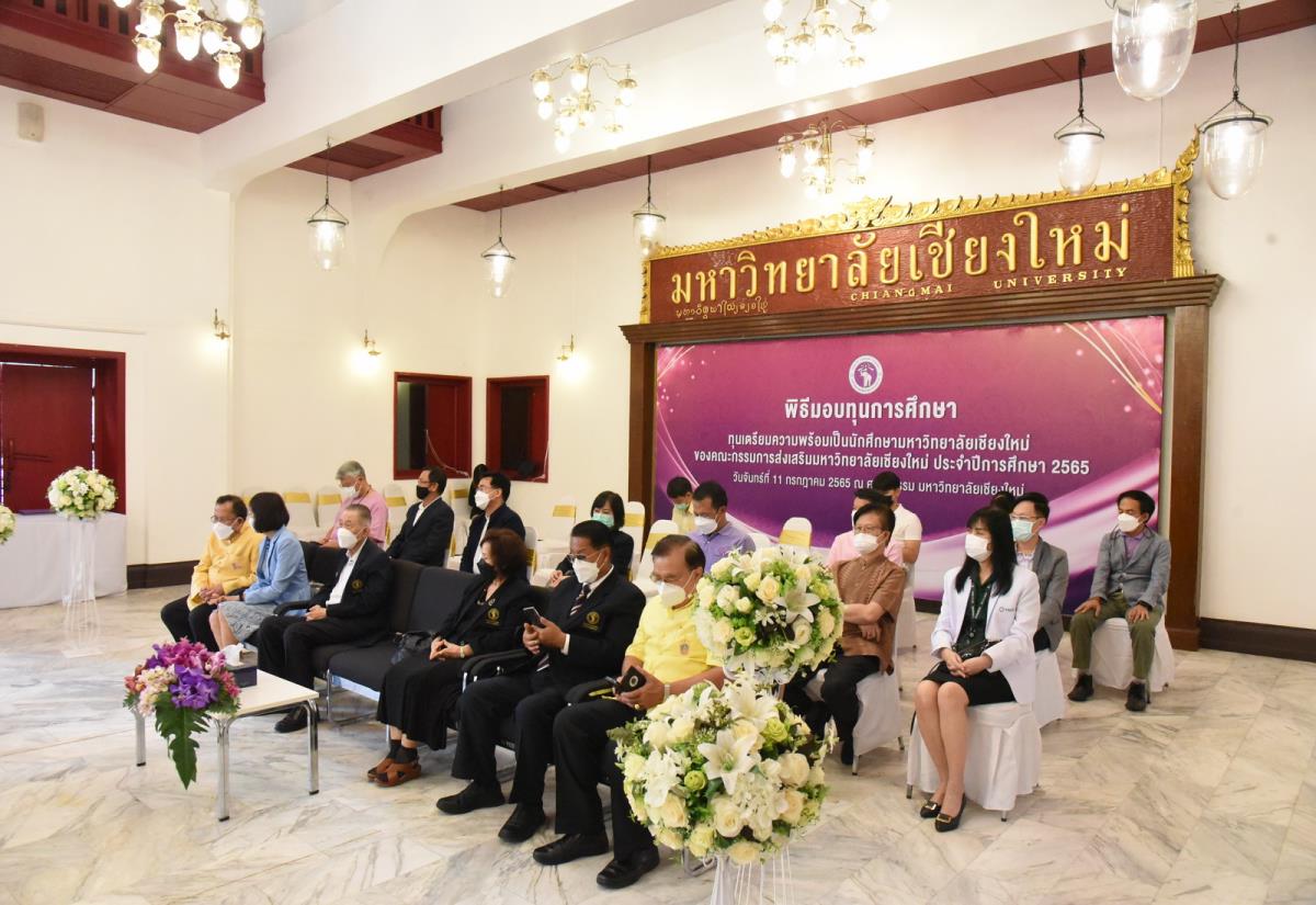 พิธีมอบทุนการศึกษาเตรียมความพร้อมเป็นนักศึกษามหาวิทยาลัยเชียงใหม่ ของคณะกรรมการส่งเสริมมหาวิทยาลัยเชียงใหม่ ประจำปีการศึกษา 2565 โดยมีคุณวีณา ภัทรประสิทธิ์ ประธานคณะกรรมการส่งเสริม เป็นประธานในพิธี พร้อมด้วยคณะกรรมการส่งเสริม คณะกรรมการพิจารณาทุนการศึกษา ร่วมมอบทุนการศึกษา รองศาสตราจารย์ นพ.อำนาจ อยู่สุข รองอธิการบดี กล่าวรายงานและกล่าวขอบคุณ ทุนการศึกษาดังกล่าว เป็นทุนที่มอบให้กับนักศึกษาชั้นปีที่ 1 จากคณะต่างๆ ที่ขาดแคลนทุนทรัพย์ สนับสนุนส่งเสริมให้มีเงินทุนในการศึกษาและการใช้ชีวิตประจำวัน เป็นนักศึกษาที่ดีของมหาวิทยาลัยเชียงใหม่ต่อไปในอนาคต ณ ศาลาธรรม มหาวิทยาลัยเชียงใหม่ วันจันทร์ที่ 11 กรกฎาคม พ.ศ. 2565