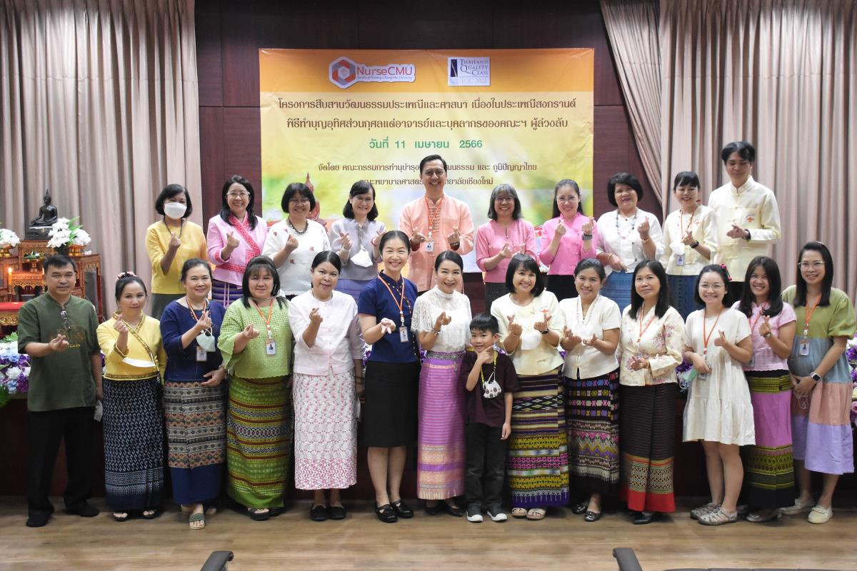 คณะกรรมการทำนุบำรุงศิลปะ วัฒนธรรม และภูมิปัญญาไทย คณะพยาบาลศาสตร์ มหาวิทยาลัยเชียงใหม่ จัดโครงการสืบสานวัฒนธรรมประเพณีและศาสนา "พิธีทำบุญอุทิศส่วนกุศลแด่อาจารย์และบุคลากรของคณะฯ ผู้ล่วงลับ" เนื่องในประเพณีสงกรานต์ ประจำปี 2566 โดยมี ผู้ช่วยศาสตราจารย์ ดร.ธานี แก้วธรรมานุกูล คณบดีคณะพยาบาลศาสตร์ เป็นประธาน ภายในพิธีได้นิมนต์พระสงฆ์จากวัดดับภัย จังหวัดเชียงใหม่ จำนวน 5 รูป มาประกอบพิธีกรรมทางศาสนา ณ ห้องประชุมชั้น 5 อาคาร 4 เมื่อวันอังคารที่ 11 เมษายน 2566