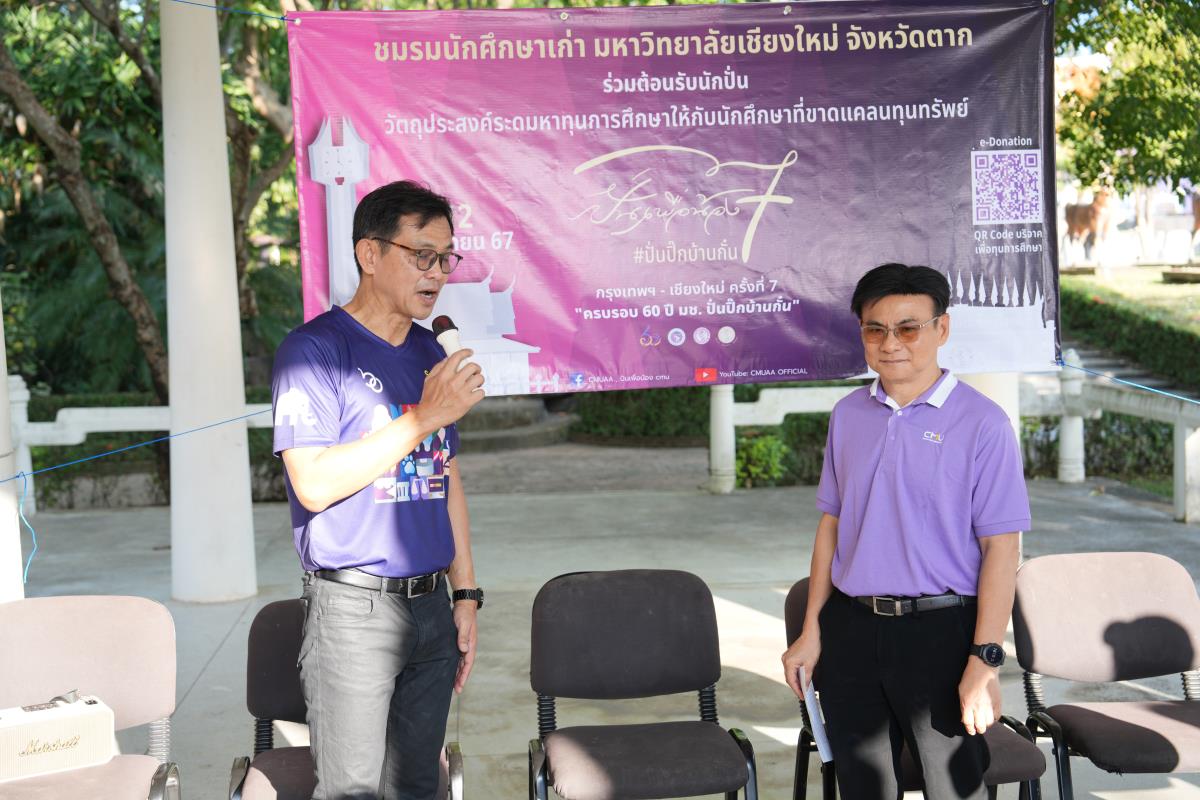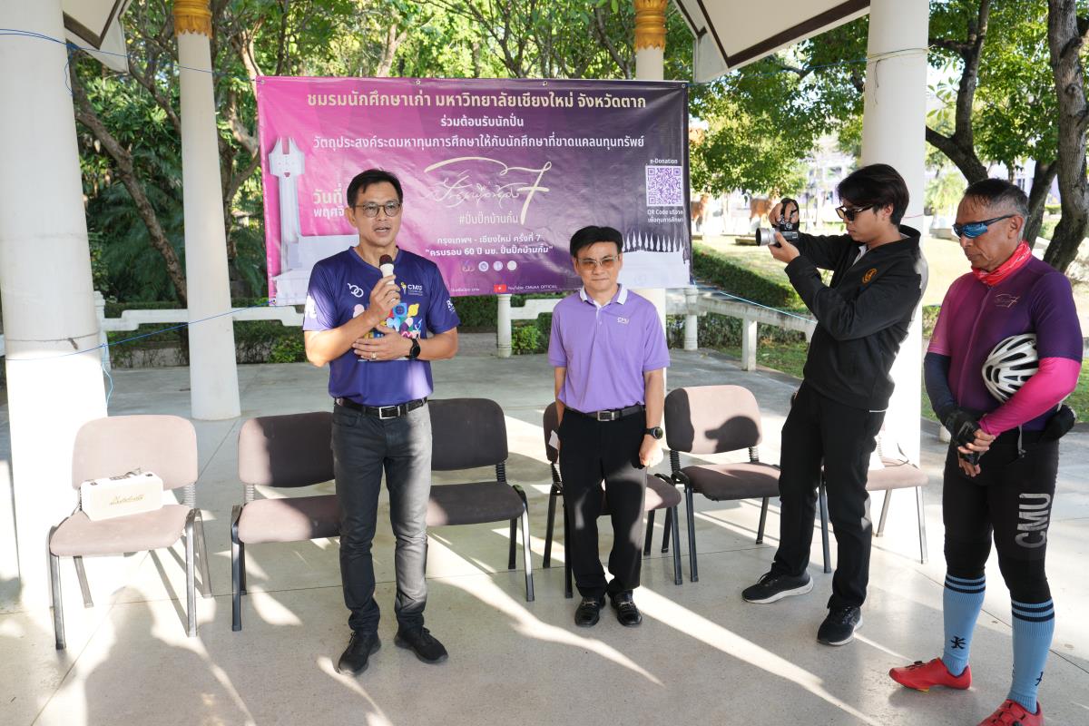 ชมรมนักศึกษาเก่ามหาวิทยาลัยเชียงใหม่จังหวัดตาก จัดงานเลี้ยงต้อนรับนักปั่นเพื่อน้อง กรุงเทพ-เชียงใหม่ ครั้งที่ 7 ฉลอง “ครบรอบ 60 ปี มช. ปั่นปิ๊กบ้านกั๋น” โดยมี คุณอารักษ์ อนุชปรีชา ผู้อำนวยการวิทยาลัยชุมชนตาก ประธานชมรมนักศึกษาเก่ามหาวิทยาลัยเชียงใหม่ จังหวัดตาก กล่าวต้อนรับ, ผู้ช่วยศาสตราจารย์ ดร.ปิติพงษ์ ยอดมงคล รองอธิการบดีมหาวิทยาลัยเชียงใหม่ กล่าวขอบคุณ พร้อมด้วยคณะผู้บริหารมหาวิทยาลัยเชียงใหม่ สมาคมนักศึกษาเก่ามหาวิทยาลัยเชียงใหม่จังหวัดตาก ร่วมให้การต้อนรับนักปั่น ณ ร้านอาหารเฮือนภูแก้ว เขื่อนภูมิพล จ.ตาก เมื่อวันอังคารที่ 12 พฤศจิกายน พ.ศ.2567