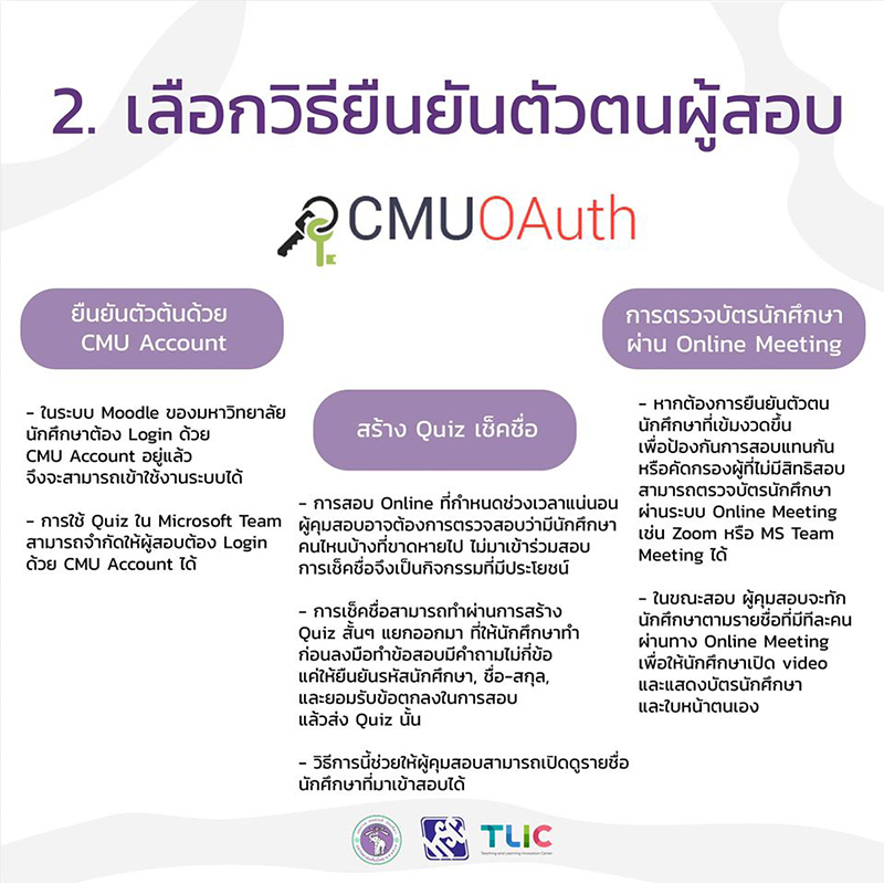 ทั้งนี้สามารถอ่านข้อมูลฉบับละเอียดได้ที่ https://tlic.cmu.ac.th/online-exam/