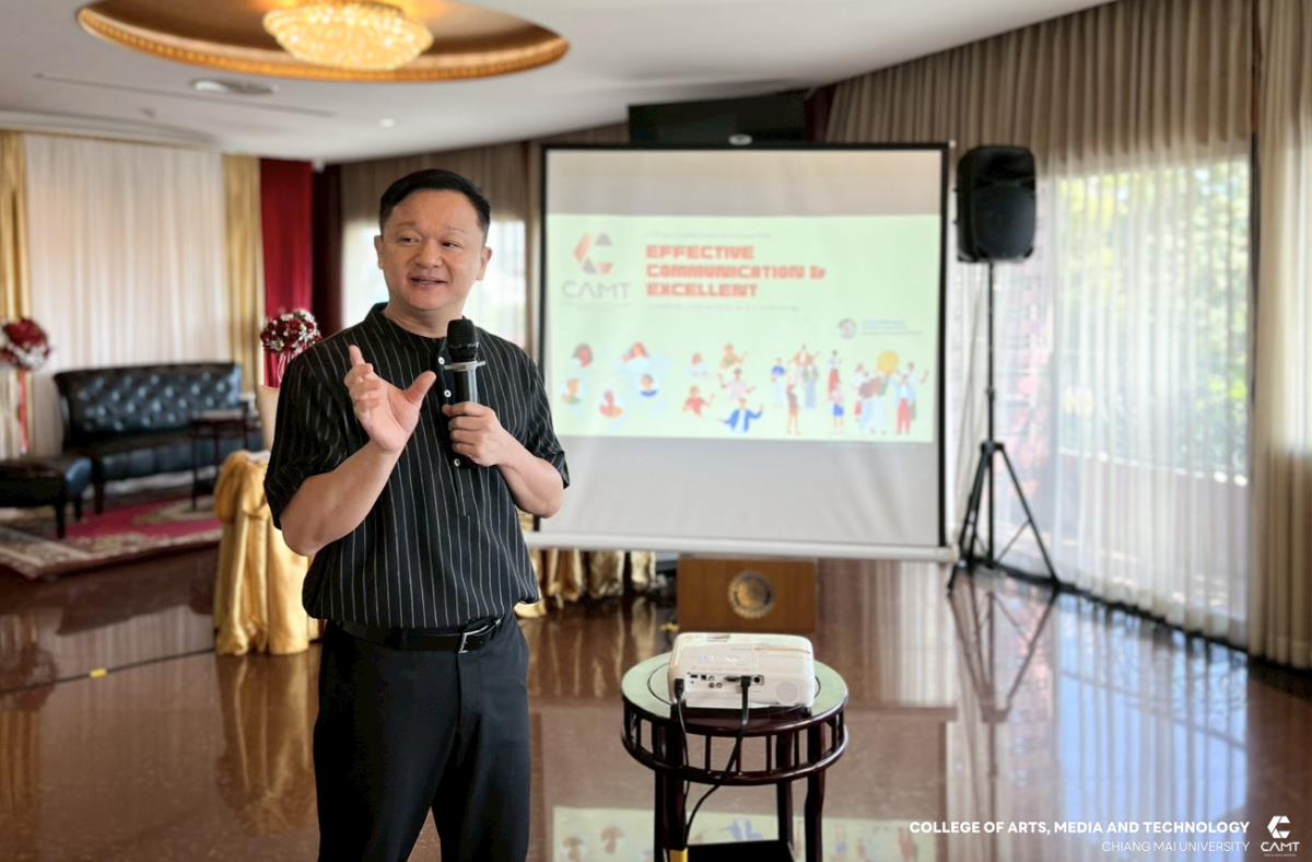 วิทยาลัยศิลปะ สื่อ และเทคโนโลยี มหาวิทยาลัยเชียงใหม่ จัดอบรมหัวข้อ “Effective Communication & Excellent Attitude” ให้แก่บุคลากรวิทยาลัยฯ เพื่อมุ่งเน้นการเสริมสร้างความเข้มแข็งและศักยภาพของทีมงาน โดยมีวัตถุประสงค์สำคัญเพื่อพัฒนาทักษะการสื่อสารอย่างมีประสิทธิภาพ โดยการอบรมครั้งนี้ถูกออกแบบเพื่อให้ผู้เข้าร่วมได้เรียนรู้วิธีการสื่อสารเพื่อสร้างความร่วมมือ ตลอดจนเสริมสร้างทัศนคติเชิงบวก อันเป็นรากฐานสู่ความสำเร็จในการทำงานร่วมกัน เพื่อให้เกิดความสัมพันธ์และความร่วมมือที่ดี โดยการอบรมครั้งนี้ได้รับเกียรติจากวิทยากรผู้เชี่ยวชาญด้านจิตวิทยาและการบริหารองค์กร ผู้ช่วยศาสตราจารย์ ดร.ณฐวัฒน์ ล่องทอง อาจารย์ประจำภาควิชาจิตวิทยา คณะมนุษยศาสตร์มหาวิทยาลัยเชียงใหม่ มาให้ความรู้และแลกเปลี่ยนประสบการณ์แก่บุคลากรสายสนับสนุนของวิทยาลัยฯ ในวันที่ 25 พฤศจิกายน 2568 ณ ห้อง CON 2 ชั้น 2 โรงแรมวินทรี ซิตี้ รีสอร์ท เชียงใหม่