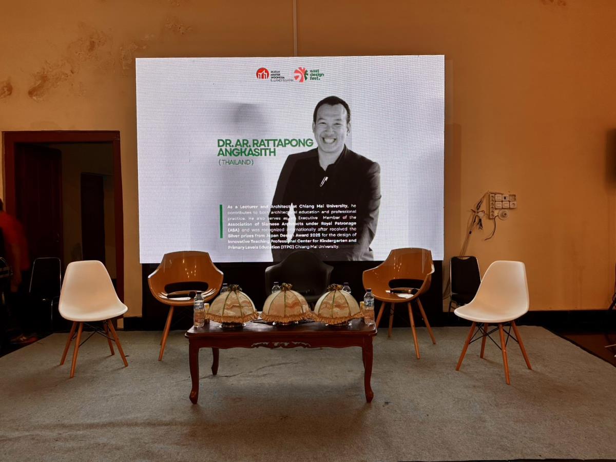 เมื่อวันที่ 14 ธันวาคม 2568 ณ งาน IAI East Design Festival 2025 จัดโดยสมาคมสถาปนิกอินโดนีเซีย ภาคสุลาเวสีใต้ (IAI Sulsel) เมืองมากัสซาร์ สาธารณรัฐอินโดนีเซีย ได้มีการจัดการประชุมนานาชาติ EAST LEGACY: International Seminar 2025 ภายใต้หัวข้อ “Re-imagining Spatial Solutions, Human Settlements, Technology, and Communities for Urban Waterfront Cities”