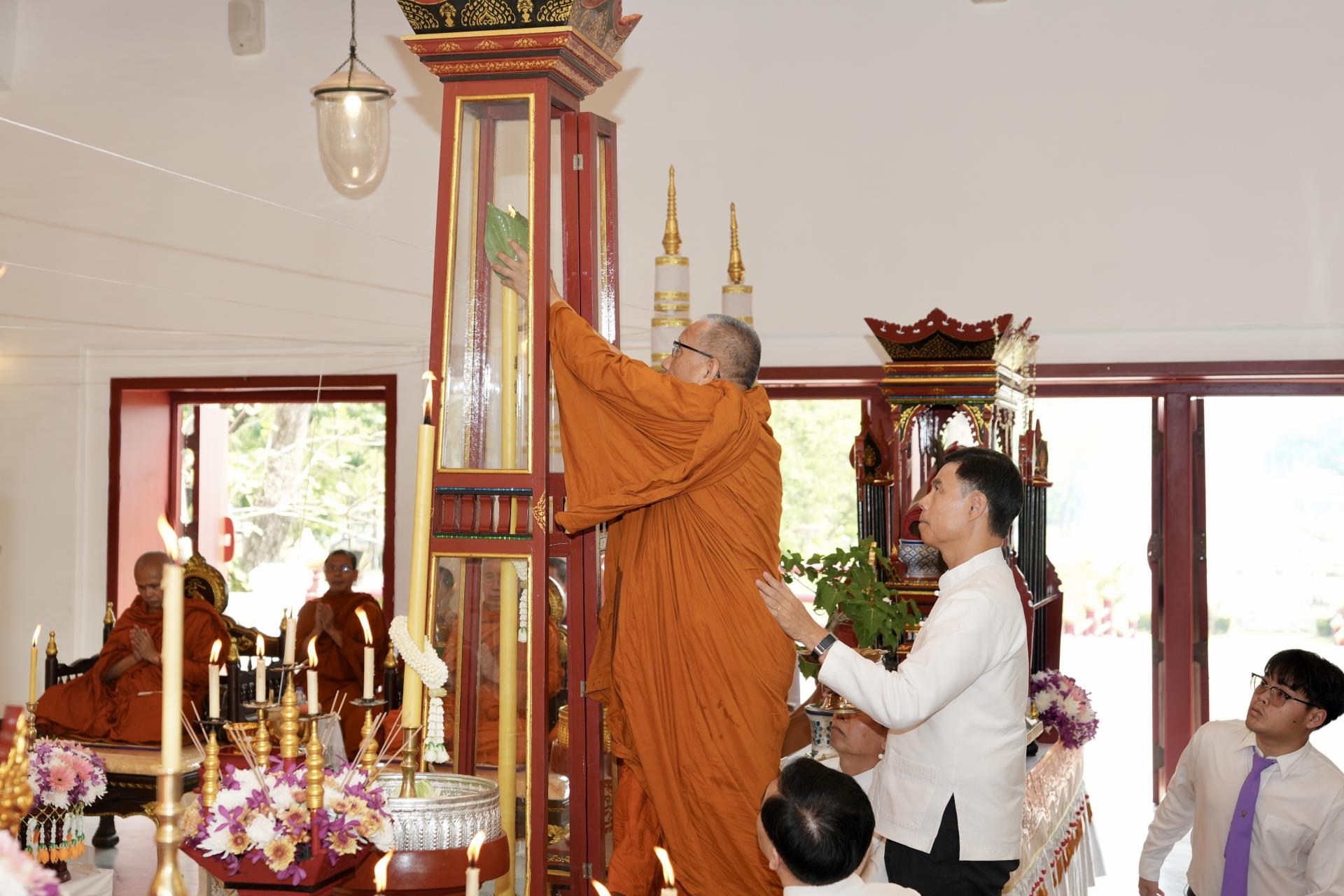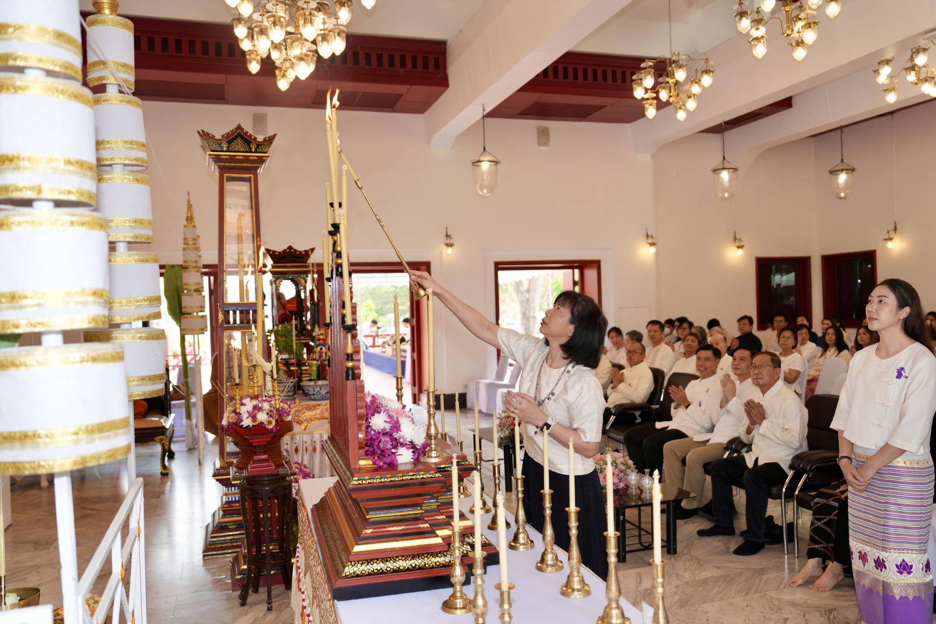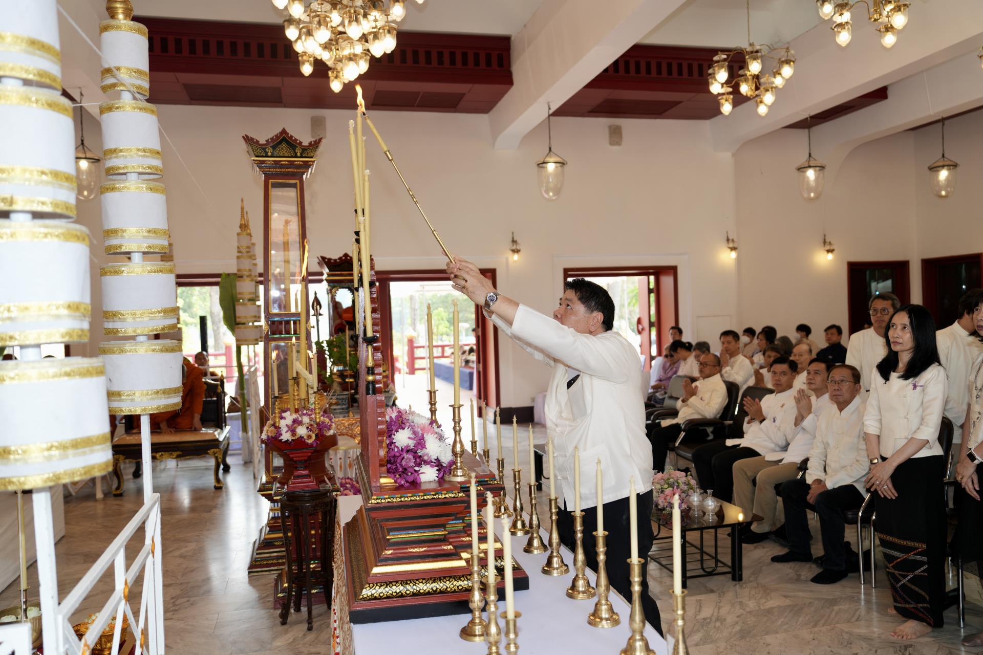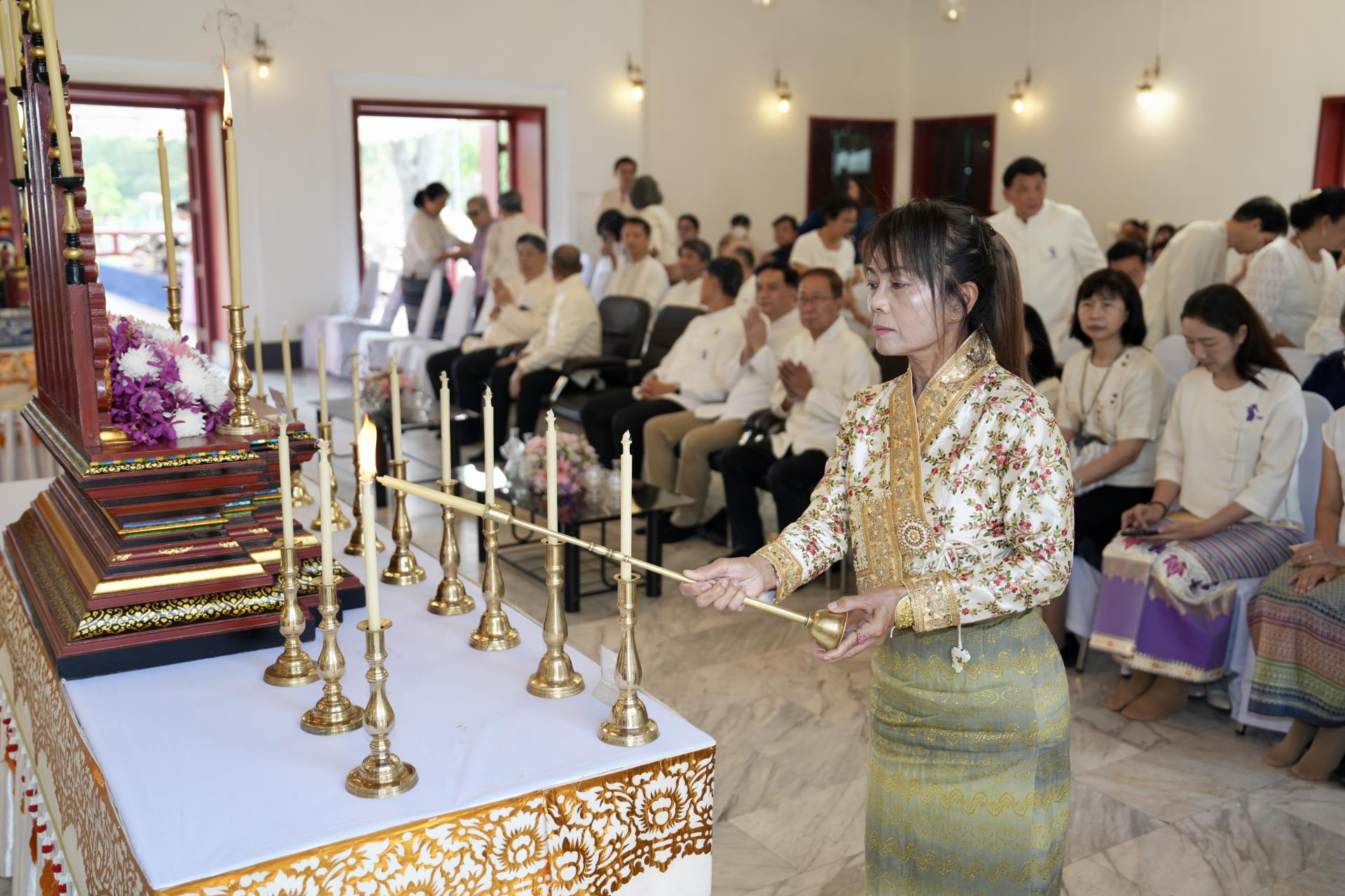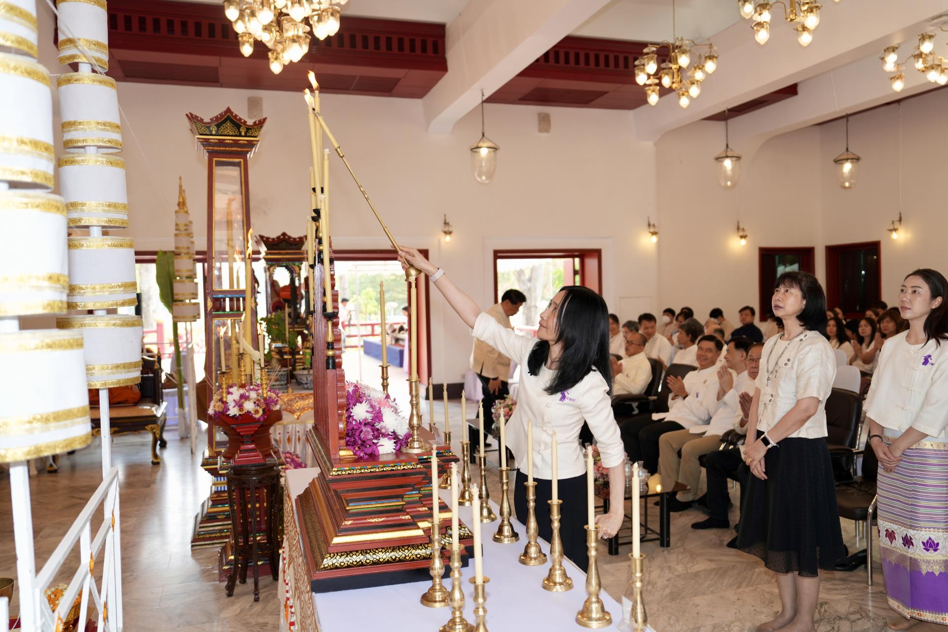 สำนักงานมหาวิทยาลัย ร่วมกับ มหาวิทยาลัยเชียงใหม่ จัดพิธีพุทธาภิเษก “พระพุทธเมตตาสิกขาชน” พระพุทธปฏิมาประจำสำนักงานมหาวิทยาลัย และพิธีทำบุญสำนักงานมหาวิทยาลัย โดยได้รับความเมตตาจาก พระครูสังวรญาณโสภณ (เจริญ ญาณวุฑฺโฒ) เจ้าอาวาสวัดถ้ำปากเปียง อ.เชียงดาว จ.เชียงใหม่ เป็นประธานสงฆ์ และมี ศาสตราจารย์ ดร.นพ.พงษ์รักษ์ ศรีบัณฑิตมงคล อธิการบดีมหาวิทยาลัยเชียงใหม่ เป็นประธานฝ่ายฆราวาสในพิธี เนื่องในประเพณีปี๋ใหม่เมือง ประจำปี 2569 โดยมีคณะผู้บริหาร ผู้อำนวยการและเจ้าหน้าที่ บุคลากร ของสำนักงานมหาวิทยาลัย เข้าร่วมพิธีฯ ณ ศาลาธรรม มหาวิทยาลัยเชียงใหม่ เมื่อวันศุกร์ที่ 24 เมษายน พ.ศ. 2569