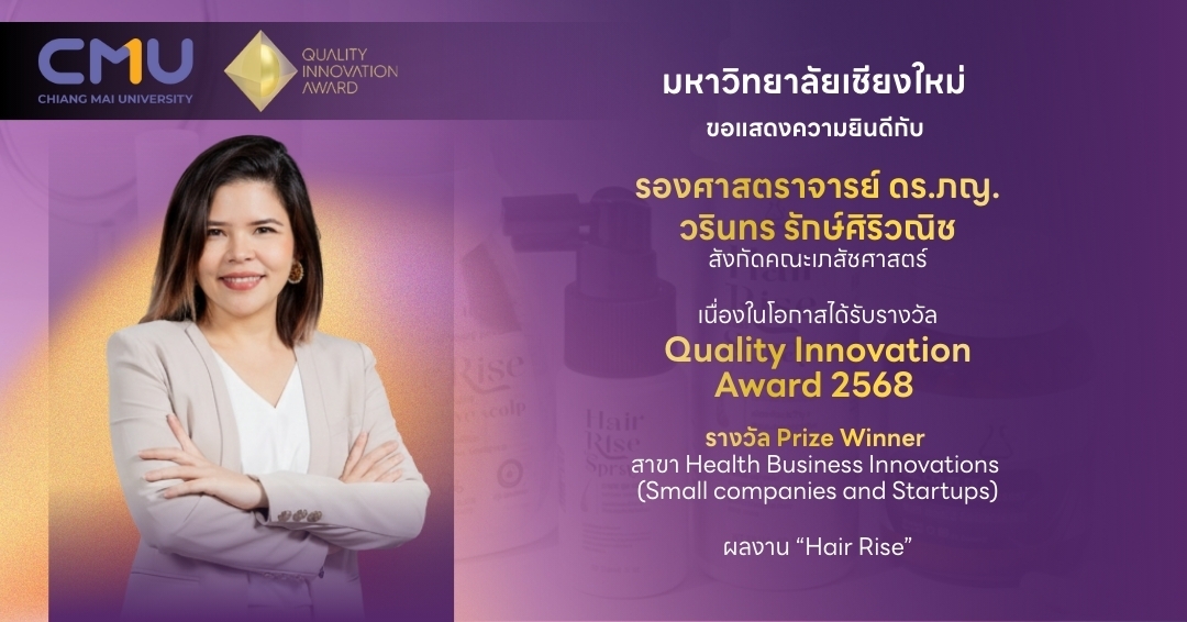 คณาจารย์และนักวิจัยมหาวิทยาลัยเชียงใหม่ สร้างชื่อเสียงในเวทีระดับนานาชาติ ได้รับรางวัล Prize Winner จากการประกวด Quality Innovation Award (QIA) ประจำปี 2025 ระดับนานาชาติ รวมทั้งสิ้น 4 ผลงาน ใน 4 สาขา