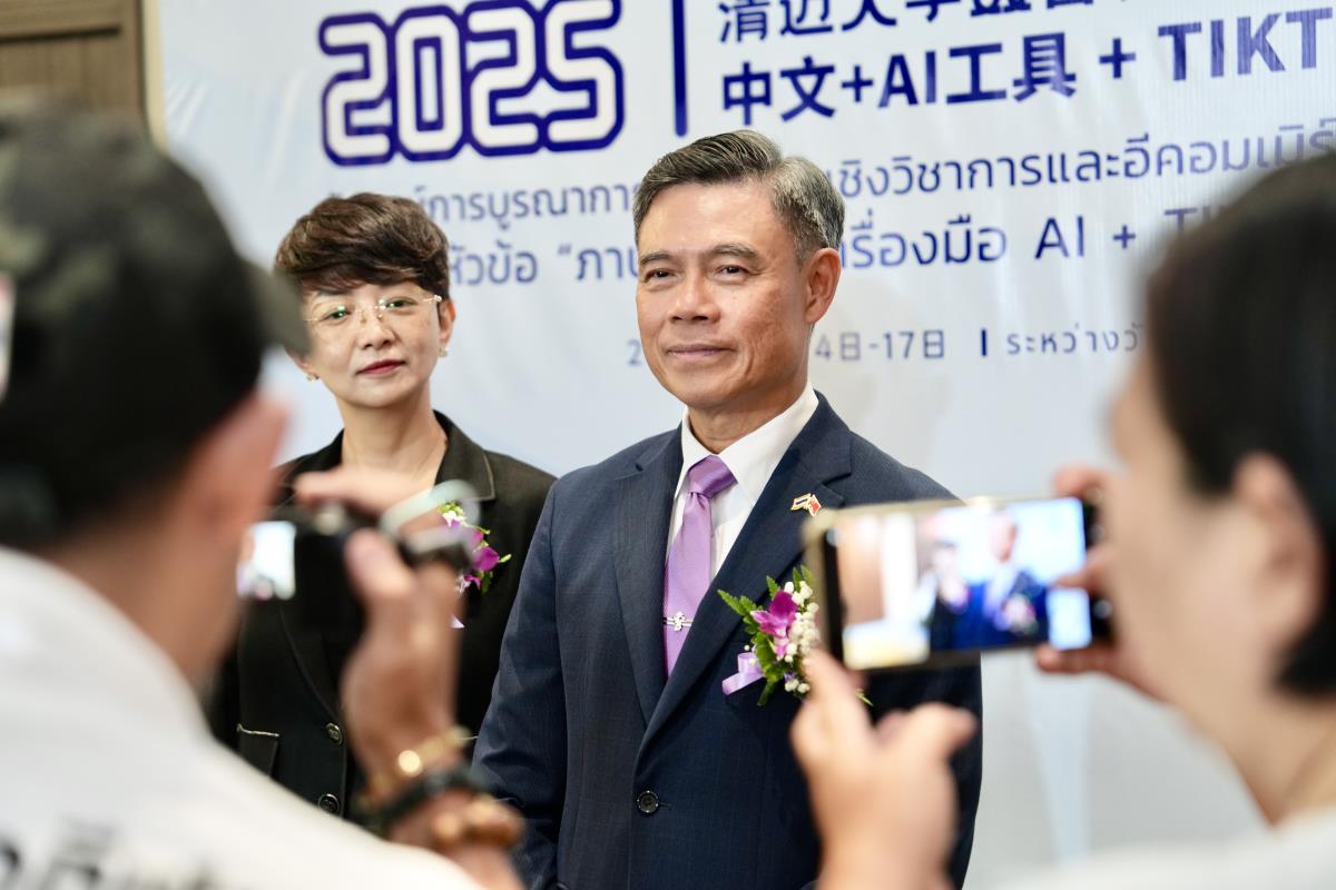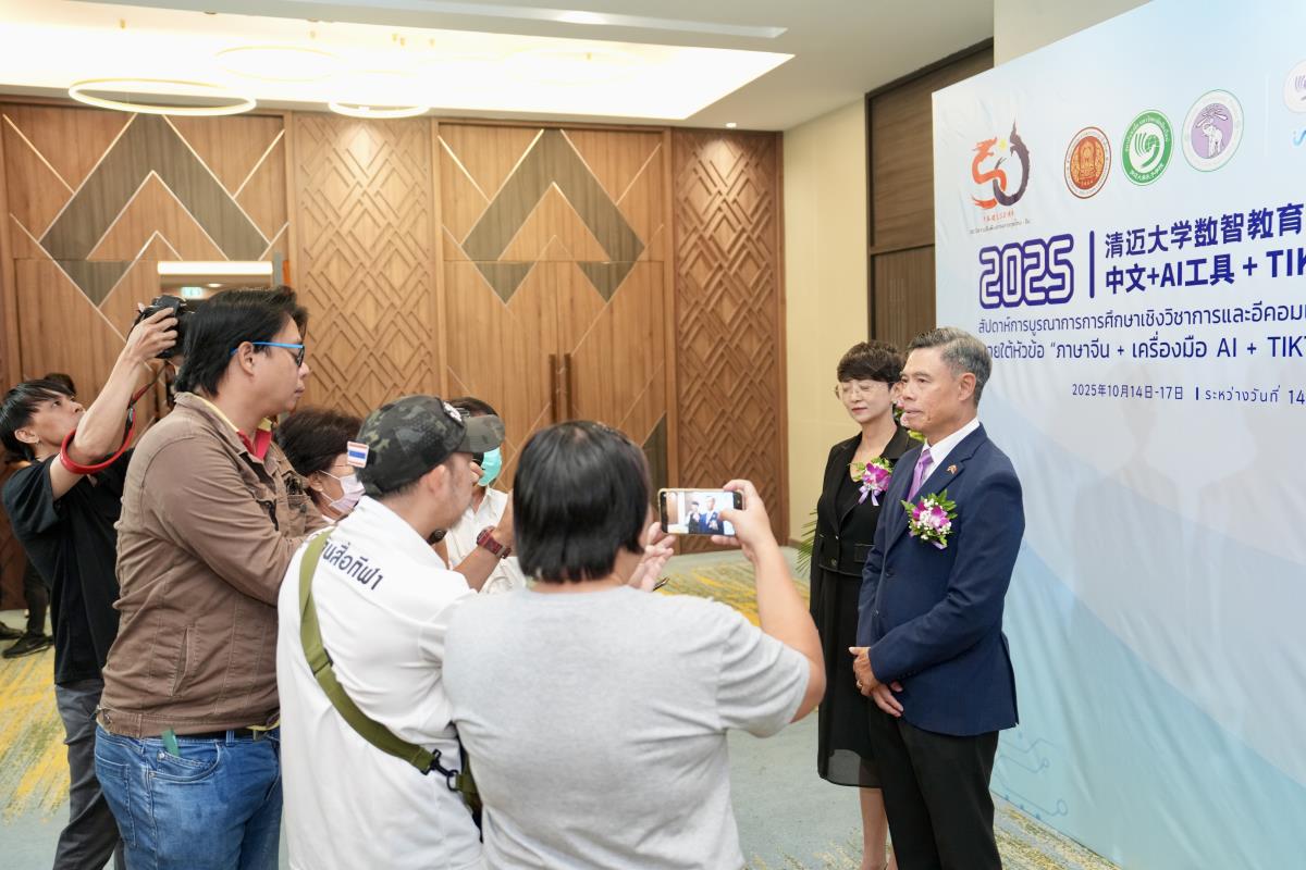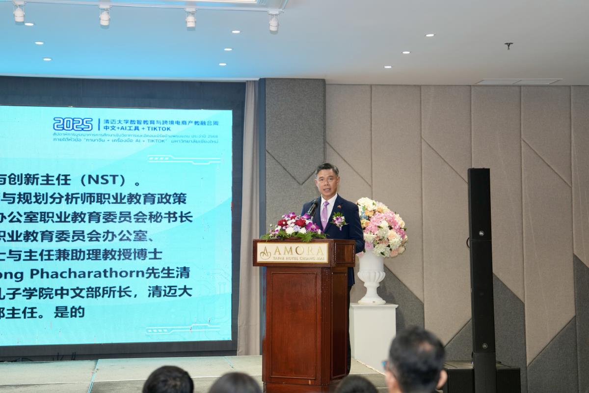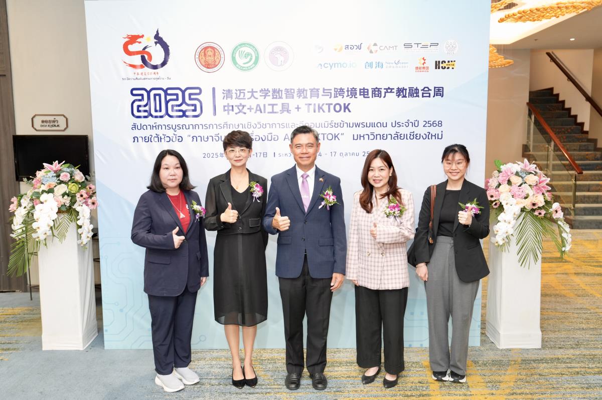 สถาบันขงจื่อ มหาวิทยาลัยเชียงใหม่ ร่วมกับสำนักงานคณะกรรมการการอาชีวศึกษา และวิทยาลัย ศิลปะ สื่อและเทคโนโลยี จัดโครงการ “สัปดาห์การบูรณาการการศึกษาเชิงวิชาการและอีคอมเมิร์ซข้ามพรมแดน” ภายใต้หัวข้อ “ภาษาจีน + เครื่องมือ AI + TikTok” ระหว่างวันที่ 14-17 ตุลาคม 2568 เพื่อพัฒนาทักษะด้านอีคอมเมิร์ซข้ามพรมแดนในยุคดิจิทัล โดยผู้เข้าร่วมโครงการจะได้เรียนรู้และฝึกฝนการใช้เครื่องมือ AI และทักษะการบริหารจัดการแพลตฟอร์ม TikTok เพื่อสร้างสรรค์เนื้อหาสำหรับโปรโมตสินค้าท้องถิ่นและแหล่งท่องเที่ยวอันเป็นเอกลักษณ์ของไทยและเพื่อเฉลิมฉลองครบรอบ 50 ปีความสัมพันธ์ไทย-จีนอย่างสร้างสรรค์ โดยได้รับเกียรติจาก ศาสตราจารย์ดร. นายแพทย์พงษ์รักษ์ ศรีบัณฑิตมงคล อธิการบดีมหาวิทยาลัยเชียงใหม่ ประธานเปิดโครงการ พร้อมด้วย Ms. Lian Chen ผู้อำนวยการฝ่ายจีน สถาบันขงจื่อ มหาวิทยาลัยเชียงใหม่ ณ โรงแรมอโมร่า ท่าแพ จังหวัดเชียงใหม่ เมื่อวันอังคาร ที่14 ตุลาคม 2568
