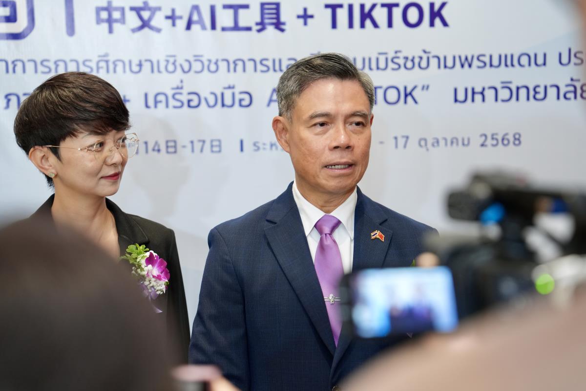 พิธีเปิดโครงการ “สัปดาห์การบูรณาการการศึกษาเชิงวิชาการและอีคอมเมิร์ซข้ามพรมแดน” ภายใต้หัวข้อ “ภาษาจีน + เครื่องมือ AI + TikTok” ประจำปี 2568