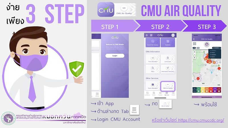 CMU Mobile Application พัฒนาฟีเจอร์ใหม่เพิ่มเติม มีฟังก์ชัน CMU Air Quality ระบุ Clean Room ภายในมหาวิทยาลัยเชียงใหม่ เพื่อนักศึกษาและบุคลากร มหาวิทยาลัยเชียงใหม่ ใช้ง่าย เพียง 3 Step