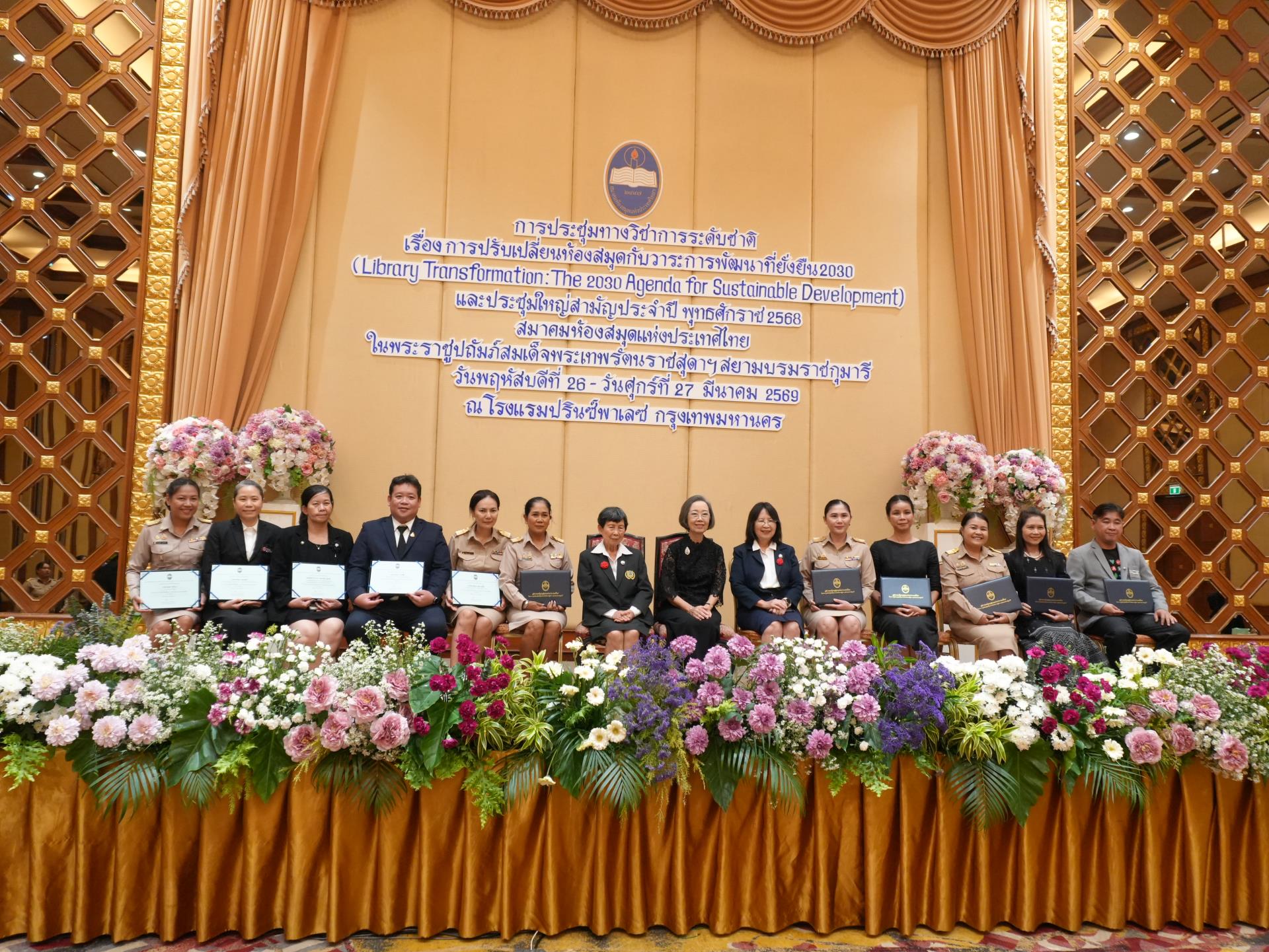 สำนักหอสมุดขอแสดงความยินดีกับ นายธนะพันธุ์ การคนซื่อ บรรณารักษ์ปฏิบัติการ และผู้ช่วยผู้อำนวยการสำนักหอสมุด ได้รับการพิจารณาเป็นบุคคลดีเด่นในวิชาชีพบรรณารักษศาสตร์และสารสนเทศศาสตร์ ประจำปี 2568 ในโครงการประกวดบุคคลดีเด่นในวิชาชีพบรรณารักษศาสตร์และสารสนเทศศาสตร์ โดยรับมอบรางวัลและเกียรติบัตรของสมาคมห้องสมุดแห่งประเทศไทย ในพระราชูปถัมภ์ จากคุณหญิงกษมา วรวรรณ ณ อยุธยา ประธานพิธี กรรมการผู้ทรงคุณวุฒิในคณะกรรมการบริหารกองทุนเพื่อความเสมอภาคทางการศึกษา อดีตเลขาธิการสํานักงานคณะกรรมการการศึกษาขั้นพื้นฐาน และปลัดกระทรวงศึกษาธิการ เพื่อยกย่องเชิดชูและประกาศเกียรติคุณประจำปี จากสมาคมห้องสมุดแห่งประเทศไทย ในพระราชูปถัมภ์สมเด็จพระเทพรัตนราชสุดาฯ สยามบรมราชกุมารี ณ โรงแรมปรินช์ พาเลซ มหานาค กรุงเทพมหานคร เมื่อวันที่ 26 มีนาคม พ.ศ. 2569