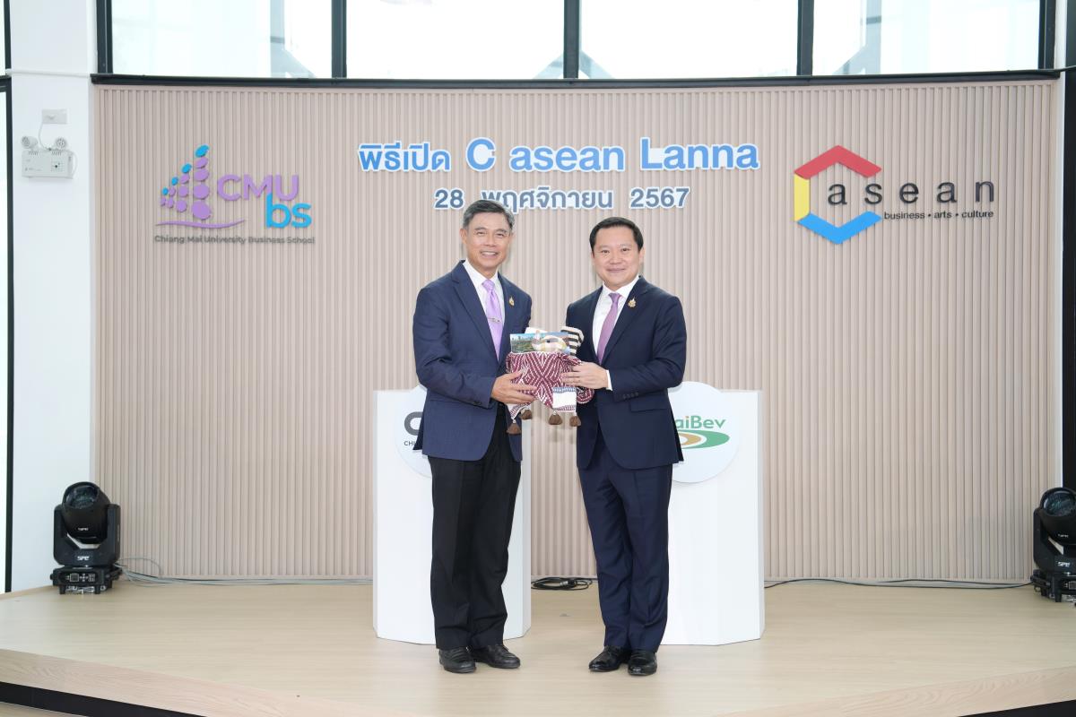 คณะบริหารธุรกิจ มหาวิทยาลัยเชียงใหม่ เดินหน้า ศูนย์กลางเชื่อมโยงเครือข่ายทุกภาคส่วนสู่การพัฒนาที่ยั่งยืนของภูมิภาคอาเซียน จับมือ บริษัท ไทยเบฟเวอเรจ จำกัด (มหาชน) ภายใต้การสนับสนุนจากมูลนิธิสิริวัฒนภักดี จัดพิธีเปิด C asean Lanna ณ คณะบริหารธุรกิจ มหาวิทยาลัยเชียงใหม่ ตอกย้ำการเป็นผู้นำศูนย์กลางความเชื่อมโยงเครือข่ายทุกภาคส่วน เสริมความเข้มแข็งประชาคมอาเซียนให้ยั่งยืน พร้อมขับเคลื่อนการดำเนินงานให้บรรลุตามเป้าหมายในการสร้างความร่วมมือและเชื่อมโยงทุกภาคส่วนในภูมิภาคอาเซียนให้เป็นหนึ่งเดียวกัน ทั้งในด้านธุรกิจ สังคม และศิลปวัฒนธรรม โดยมีศาสตราจารย์ ดร.นพ.พงษ์รักษ์ ศรีบัณฑิตมงคล อธิการบดีมหาวิทยาลัยเชียงใหม่ พร้อมด้วยนายฐาปน สิริวัฒนภักดี ประธานเจ้าหน้าที่บริหาร บริษัท ไทยเบฟเวอเรจ จำกัด (มหาชน) นำทีมคณะผู้บริหาร บริษัท ไทยเบฟเวอเรจ จำกัด (มหาชน) คณะผู้บริหารมหาวิทยาลัย คณาจารย์ เครือข่ายภาคเอกชน ภาคสังคม และนักศึกษา ร่วมพิธีเปิดงานและเป็นสักขีพยานการลงนามบันทึกข้อตกความร่วมมืออย่างเป็นทางการระหว่าง บริษัท ไทยเบฟเวอเรจ จำกัด (มหาชน) กับ มหาวิทยาลัยเชียงใหม่