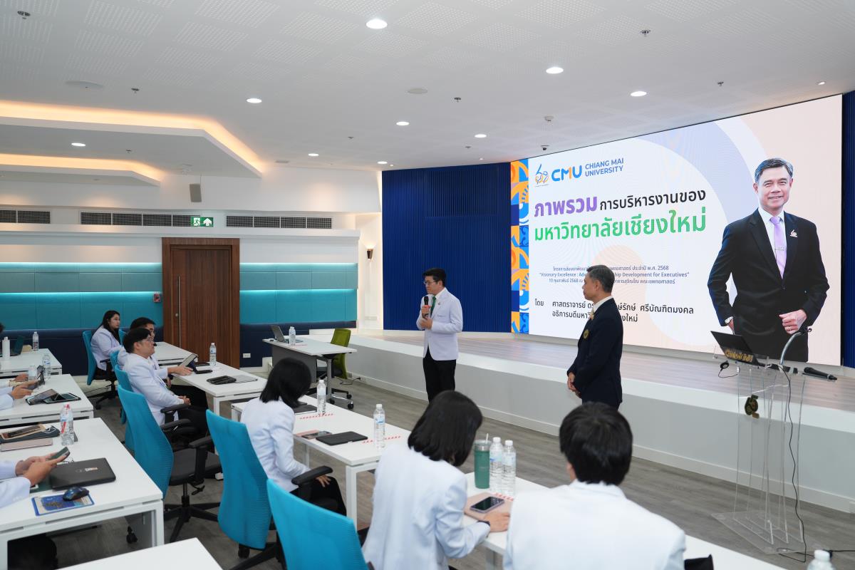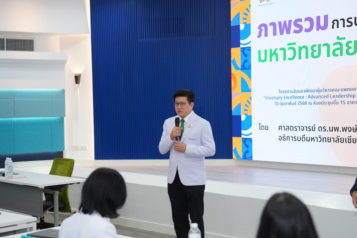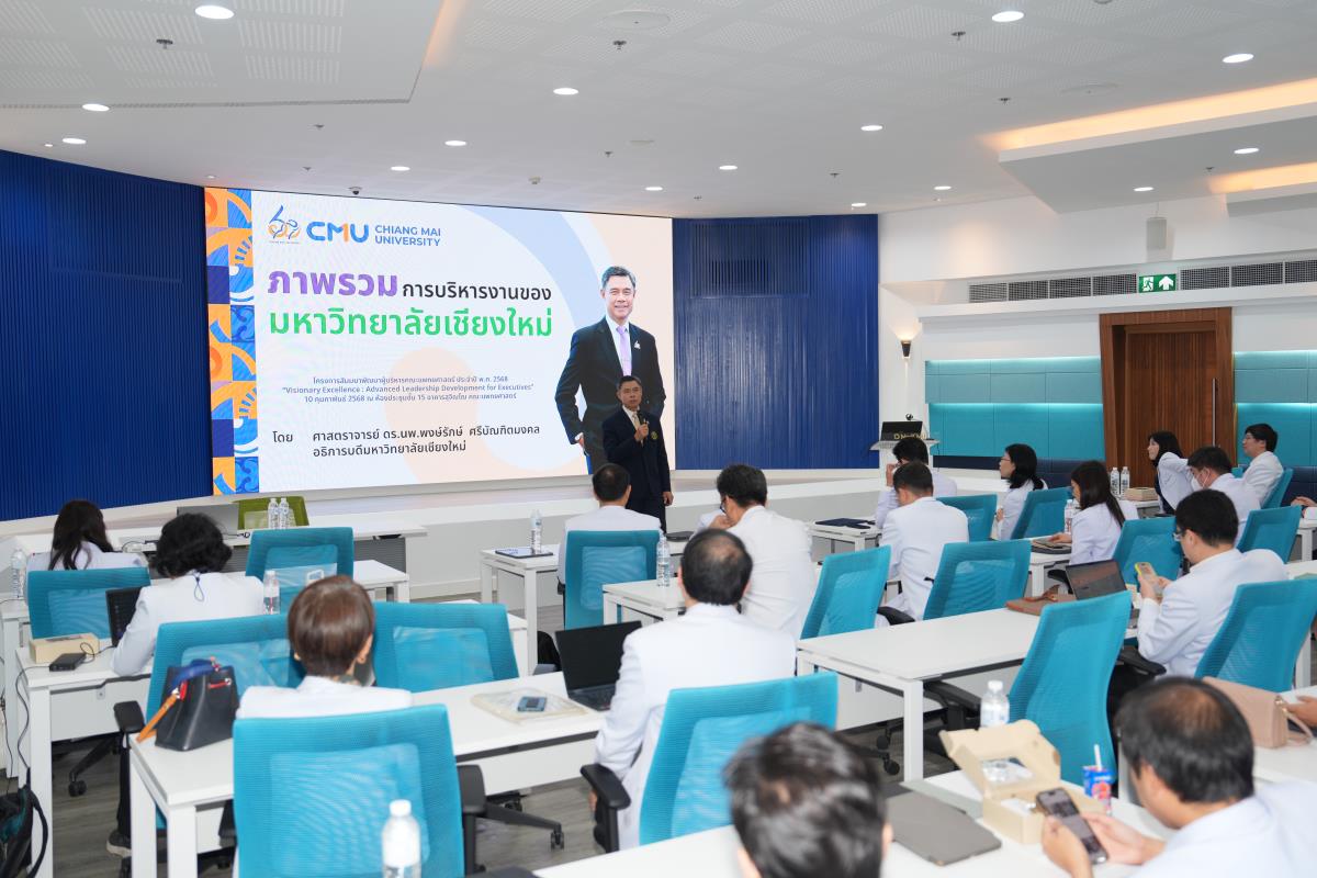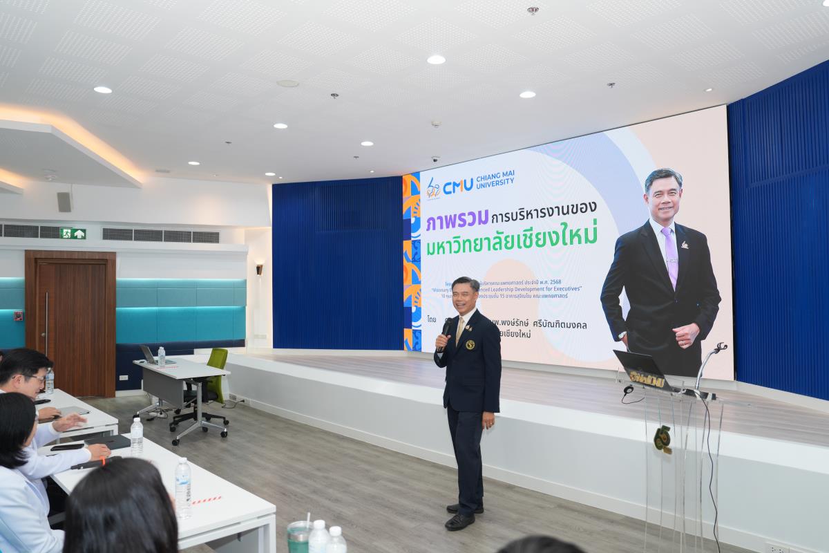 ศาสตราจารย์ ดร.นพ.พงษ์รักษ์ ศรีบัณฑิตมงคล อธิการบดีมหาวิทยาลัยเชียงใหม่ บรรยายพิเศษ เรื่อง "ภาพรวมการดำเนินงานของมหาวิทยาลัยเชียงใหม่" ในโครงการสัมมนาพัฒนาผู้บริหารคณะแพทยศาสตร์ ประจำปี พ.ศ. 2568 "Visionary Excellence: Advanced Leadership Development for Executives" พร้อมนำเสนอวิสัยทัศน์ นโยบาย และแนวทางการบริหารงานมหาวิทยาลัยเชียงใหม่ ระยะ 4 ปี และแลกเปลี่ยนข้อคิดเห็นเชิงนโยบายการบริหารงานมหาวิทยาลัยเชียงใหม่ โดยมี รองศาสตราจารย์ นพ.นเรนทร์ โชติรสนิรมิต คณบดีคณะแพทยศาสตร์ และทีมคณะผู้บริหารคณะแพทยศาสตร์ ในวาระบริหาร พ.ศ. 2568-2572 ร่วมรับฟังการบรรยาย ณ ห้องประชุมชั้น 15 อาคารสุจิณโณ คณะแพทยศาสตร์ เมื่อวันจันทร์ที่ 10 กุมภาพันธ์ 2568