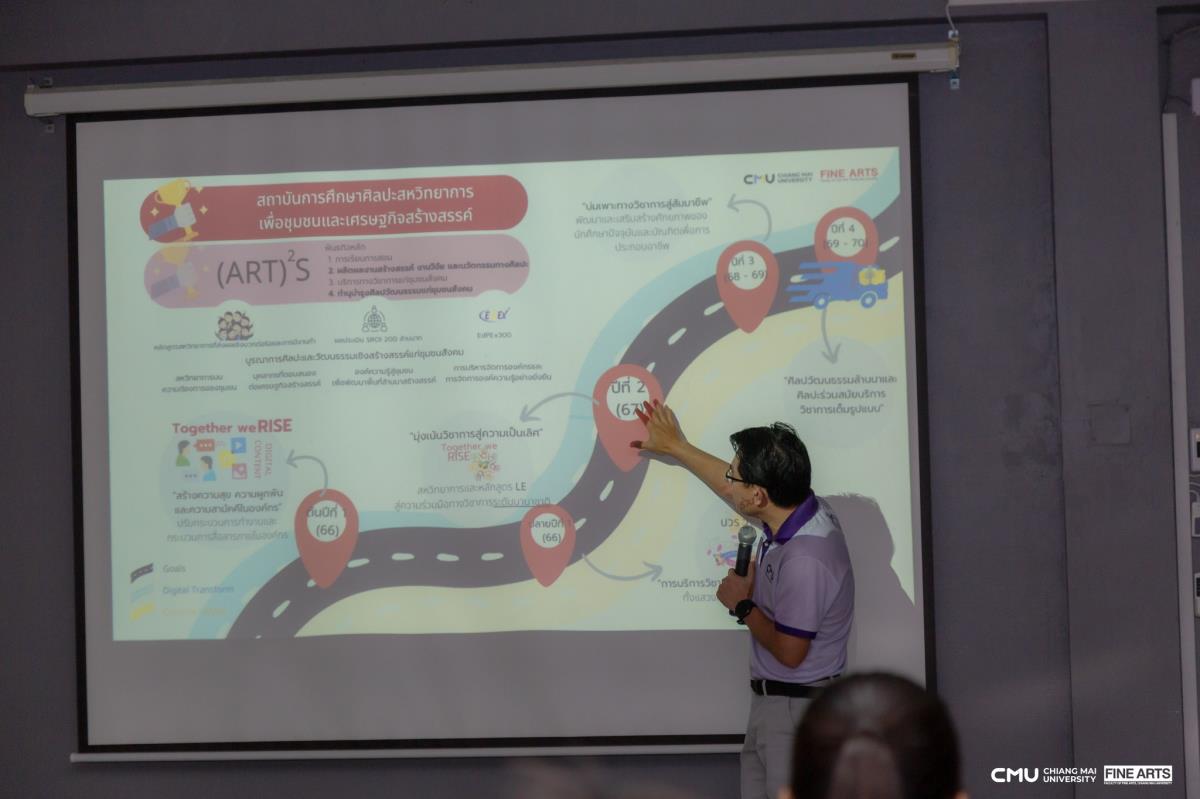 ในการนี้ รองศาสตราจารย์ ดร.สุกรี เกษรเกศรา คณบดีคณะวิจิตรศิลป์ ให้เกียรติเป็นประธานกล่าวเปิดโครงการ พร้อมทั้ง ผู้ช่วยศาสตราจารย์ ดร.วีระพันธ์ จันทร์หอม รองคณบดีฝ่ายวิชาการและยุทธศาสตร์ นำเสนอ แผนยุทธศาสตร์คณะวิจิตรศิลป์ เพื่อสร้างความเข้าใจในทิศทางการพัฒนาและการขับเคลื่อนภารกิจของคณะในอนาคต