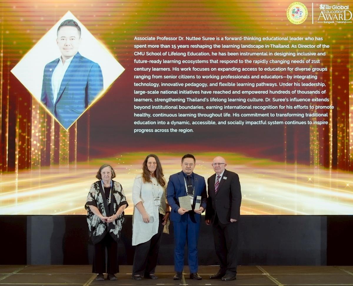 ในขณะเดียวกัน รางวัลระดับบุคคล “Outstanding Contribution to Education” ที่มอบแด่รองศาสตราจารย์ ดร.นัทธี สุรีย์ ผู้อำนวยการวิทยาลัยฯ ยังสะท้อนถึงบทบาทผู้นำที่มีวิสัยทัศน์กว้างไกลและความมุ่งมั่นในการผลักดันการปฏิรูปการเรียนรู้ในระดับมหาวิทยาลัยและระดับประเทศ ความโดดเด่นของท่านอยู่ที่การผลักดันระบบ Micro-credentials และการวางระบบนิเวศการเรียนรู้ที่ยืดหยุ่น (Flexible Learning Pathways) ซึ่งกลายเป็นรากฐานสำคัญที่ทำให้ประชาชนสามารถเข้าถึงการศึกษาได้หลากหลายรูปแบบมากขึ้น ทั้งยังได้รับการยอมรับในระดับสากลว่าเป็นโมเดลการพัฒนาการศึกษาที่เหมาะสมกับบริบทเอเชียในยุคดิจิทัล
