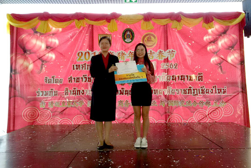 นักศึกษาจีนจากคณะมนุษยศาสตร์ มหาวิทยาลัยชียงใหม่ ชนะการประกวดร้องเพลงในเทศกาลตรุษจีนเชียงใหม่ ประจำปี 2562 ได้แก่ Miss Yini Xu ได้รับรางวัลชนะเลิศ และ Mr. Yuzhe Yang ได้รับรางวัลชมเชย