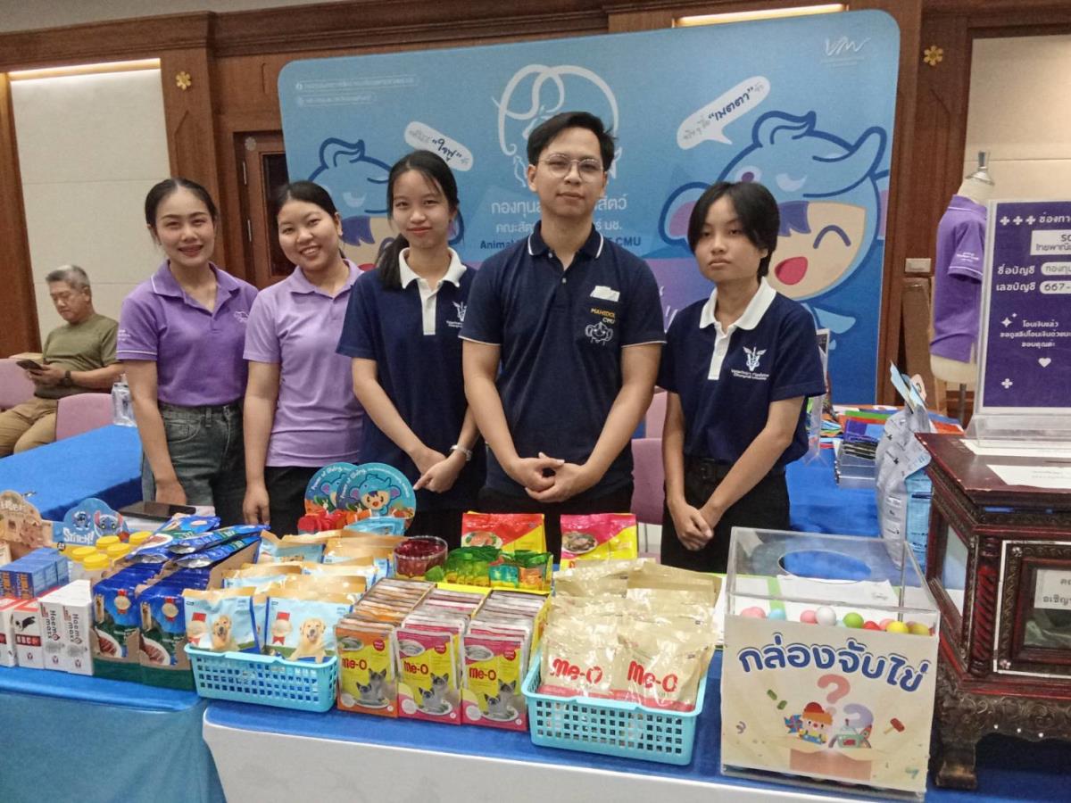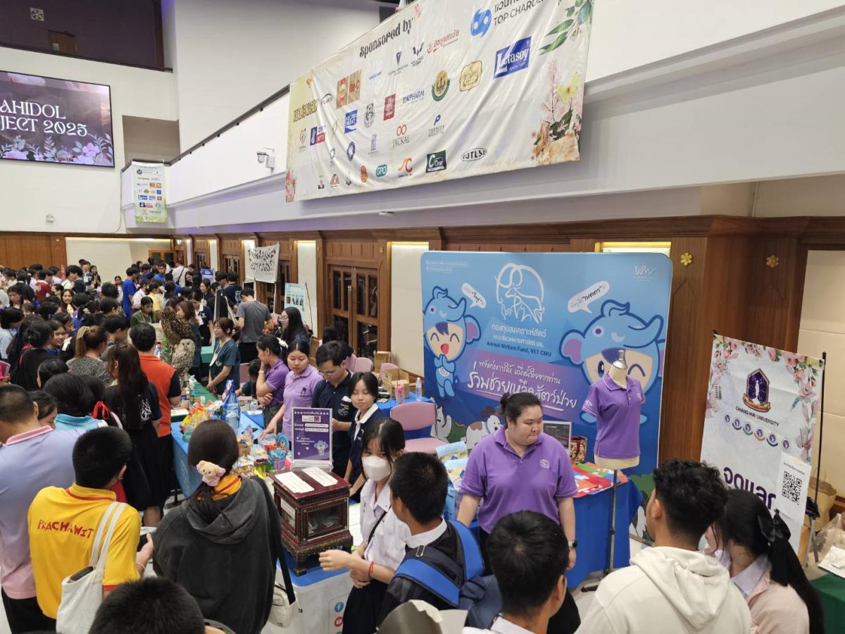 รศ. ดร. น.สพ.วรพัฒน์ ประชาศิลป์ชัย ประธานคณะทำงานกองทุนสงเคราะห์สัตว์ในพระอุปถัมภ์ฯ พร้อมด้วยคณะกรรมการกองทุนฯ ร่วมออกบูธกองทุนสงเคราะห์สัตว์ฯ จัดกิจกรรมสนุก ๆ และจำหน่ายสินค้าน่ารัก ๆ เพื่อระดมทุนช่วยเหลือสัตว์ป่วย ในงาน Mahidol Day x CMU Health Sciences Open House 2025 จัดโดยสโมสรนักศึกษา 6 คณะสาขาวิทยาศาสตร์สุขภาพ ระหว่างวันที่ 27 - 28 กันยายน 2568 ณ หอประชุมมหาวิทยาลัยเชียงใหม่