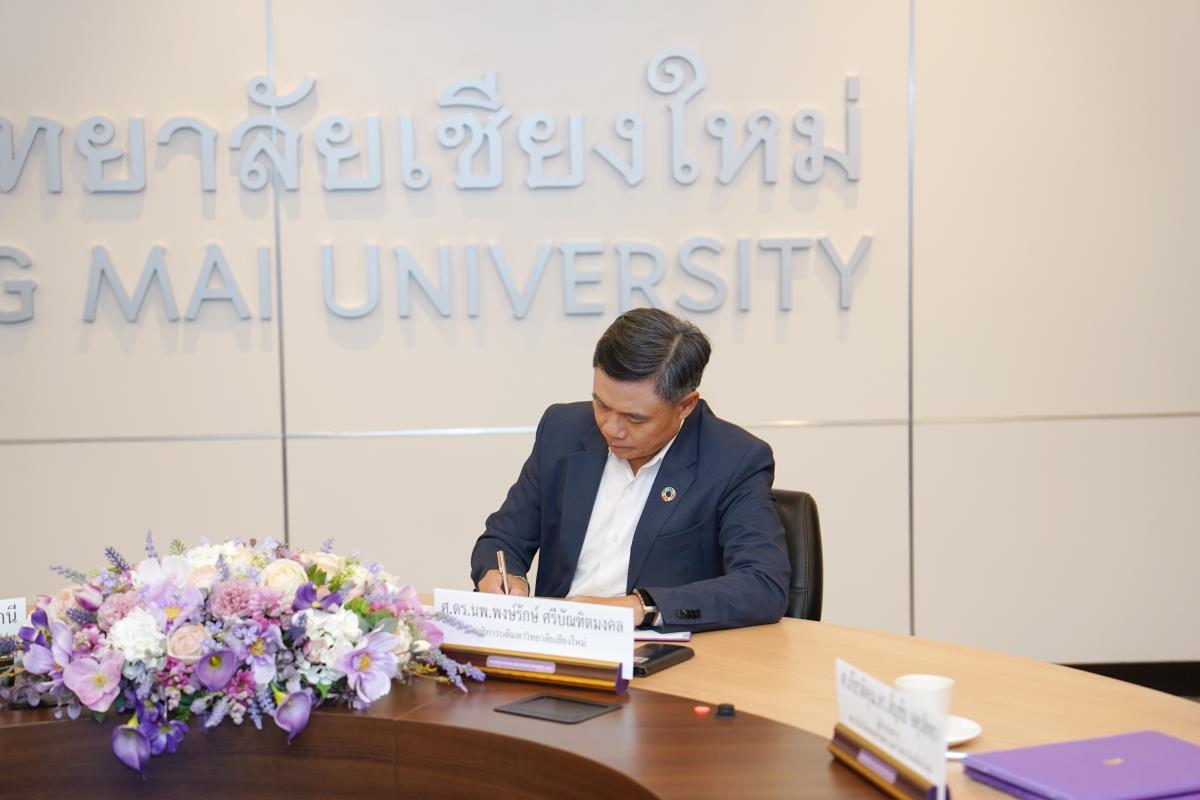 ศาสตราจารย์ ดร.นายแพทย์พงษ์รักษ์ ศรีบัณฑิตมงคล อธิการบดีมหาวิทยาลัยเชียงใหม่ พร้อมด้วย รองศาสตราจารย์ ดร.ศรินทร์ทิพย์ แทนธานี รักษาราชการแทนอธิการบดีมหาวิทยาลัยนเรศวร ร่วมลงนามบันทึกข้อตกลงความร่วมมือ (MOU) ว่าด้วยความร่วมมือศึกษาและพัฒนางานวิจัยด้านการลดก๊าซเรือนกระจกในภาคพลังงานของประเทศ ณ ห้องประชุมตะวัน กังวานพงศ์ อาคารยุทธศาสตร์ สำนักงานมหาวิทยาลัยเชียงใหม่ ในวันที่ 20 มีนาคม 2567