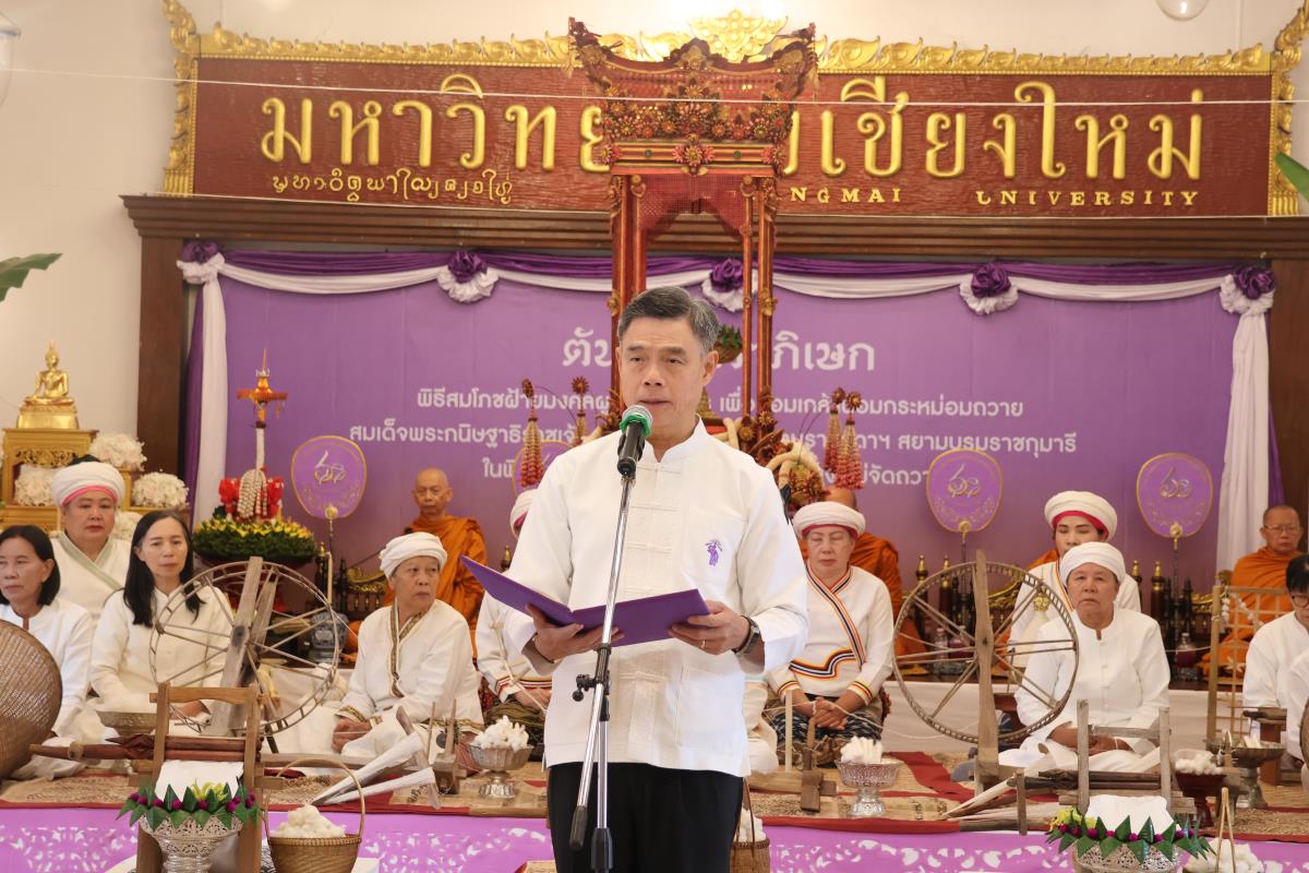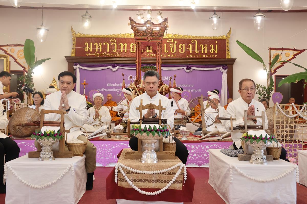คณะผู้บริหารและบุคลากรสำนักส่งเสริมศิลปวัฒนธรรมและล้านนาสร้างสรรค์ ร่วมพิธี “ตันติพทราภิเษก” สมโภชฝ้ายมงคลผูกข้อพระกร เพื่อเตรียมการน้อมเกล้าน้อมกระหม่อมถวาย สมเด็จพระกนิษฐาธิราชเจ้า กรมสมเด็จพระเทพรัตนราชสุดา ฯ สยามบรมราชกุมารี ในพิธีทูลพระขวัญ เนื่องในโอกาสมหามงคลเฉลิมพระชนมพรรษา 70 พรรษา ประจำปี 2568 ในวันที่ 11 มกราคม 2569 ณ ศาลาธรรม มหาวิทยาลัยเชียงใหม่