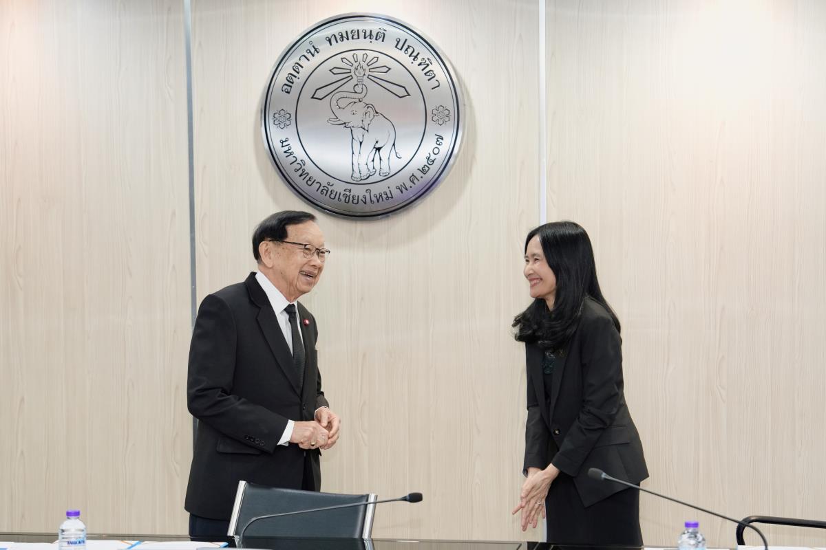 รองศาสตราจารย์ ภญ.อุษณีย์ คำประกอบ รองอธิการบดีมหาวิทยาลัยเชียงใหม่ ให้การต้อนรับ ศ.(พิเศษ) ดร.นพ.วิชัย เทียนถาวร อธิการบดีสถาบันพระบรมราชชนก พร้อมด้วยคณะผู้บริหารและบุคลากร สถาบันพระบรมราชชนก ในโอกาสที่เยี่ยมมหาวิทยาลัยเชียงใหม่ และศึกษาดูงานและแลกเปลี่ยนเรียนรู้แนวทางการดำเนินงานการประเมิน ITA รวมถึงระบบการบริหารจัดการการประเมินภายใน ของมหาวิทยาลัยเชียงใหม่ โดยมีคณะผู้บริหารมหาวิทยาลัยเชียงใหม่ ให้การต้อนรับและบรรยายสรุป เมื่อวันศุกร์ที่ 28 พฤศจิกายน 2568 ณ ห้องประชุมพระยา ศรีวิสารวาจา อาคารสำนักงานมหาวิทยาลัย มหาวิทยาลัยเชียงใหม่