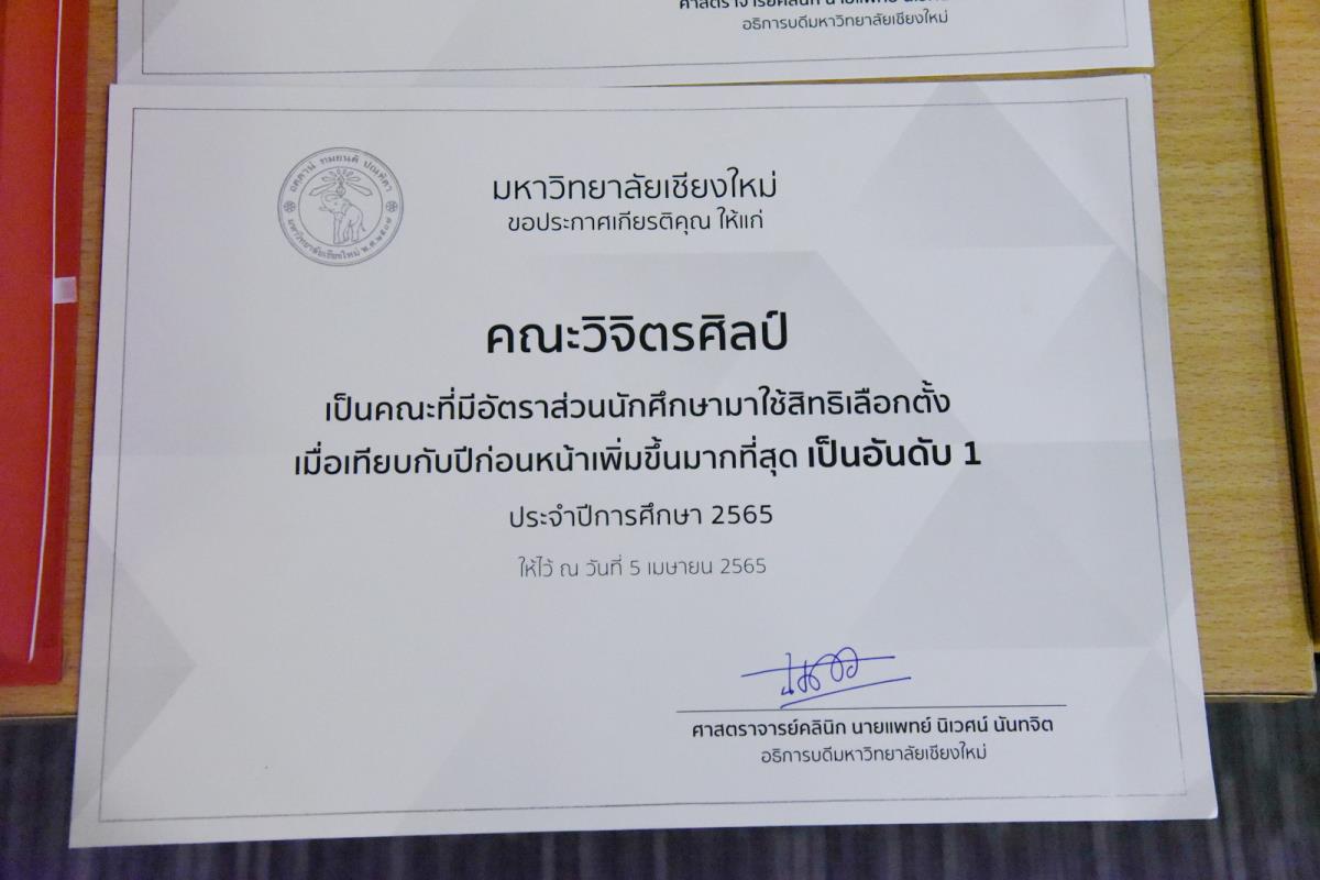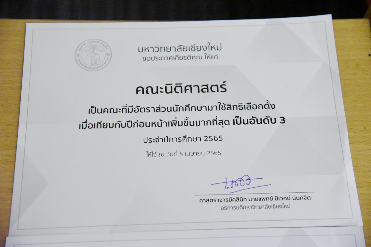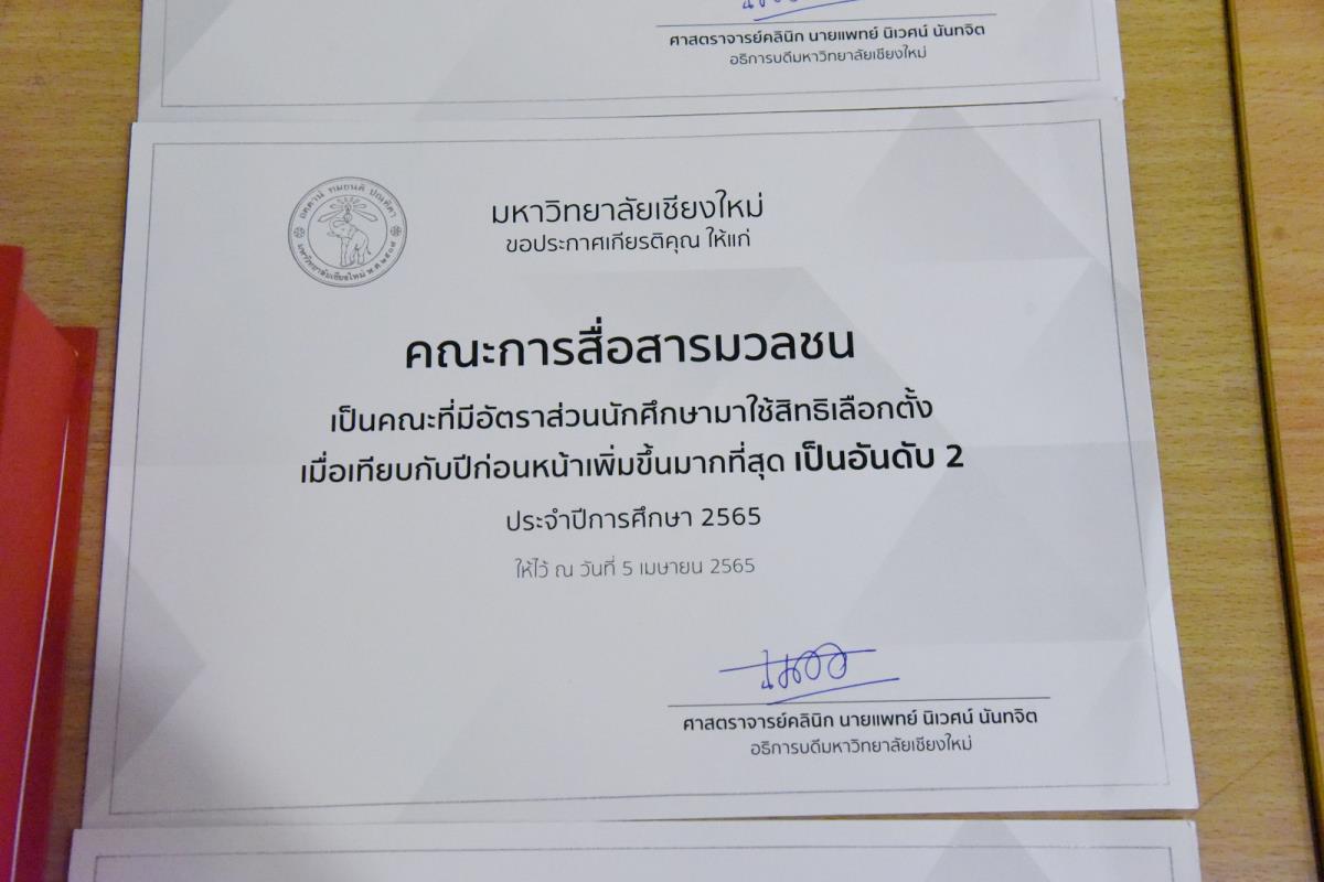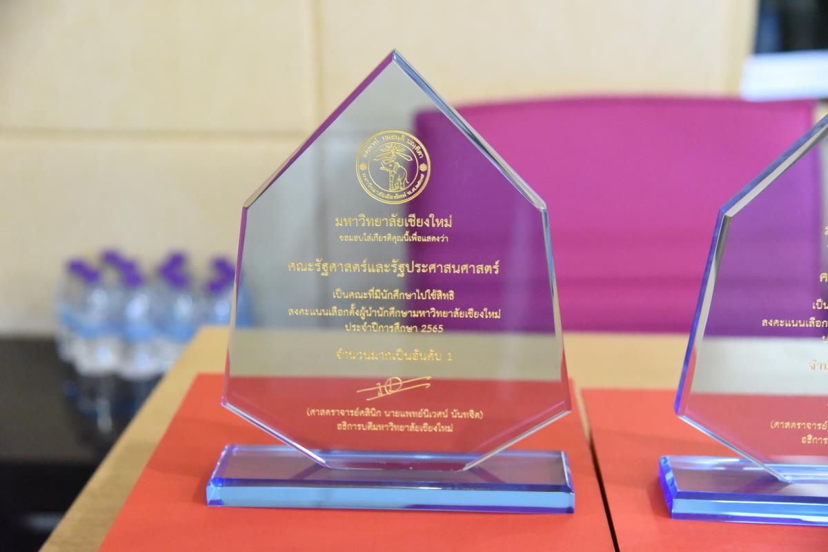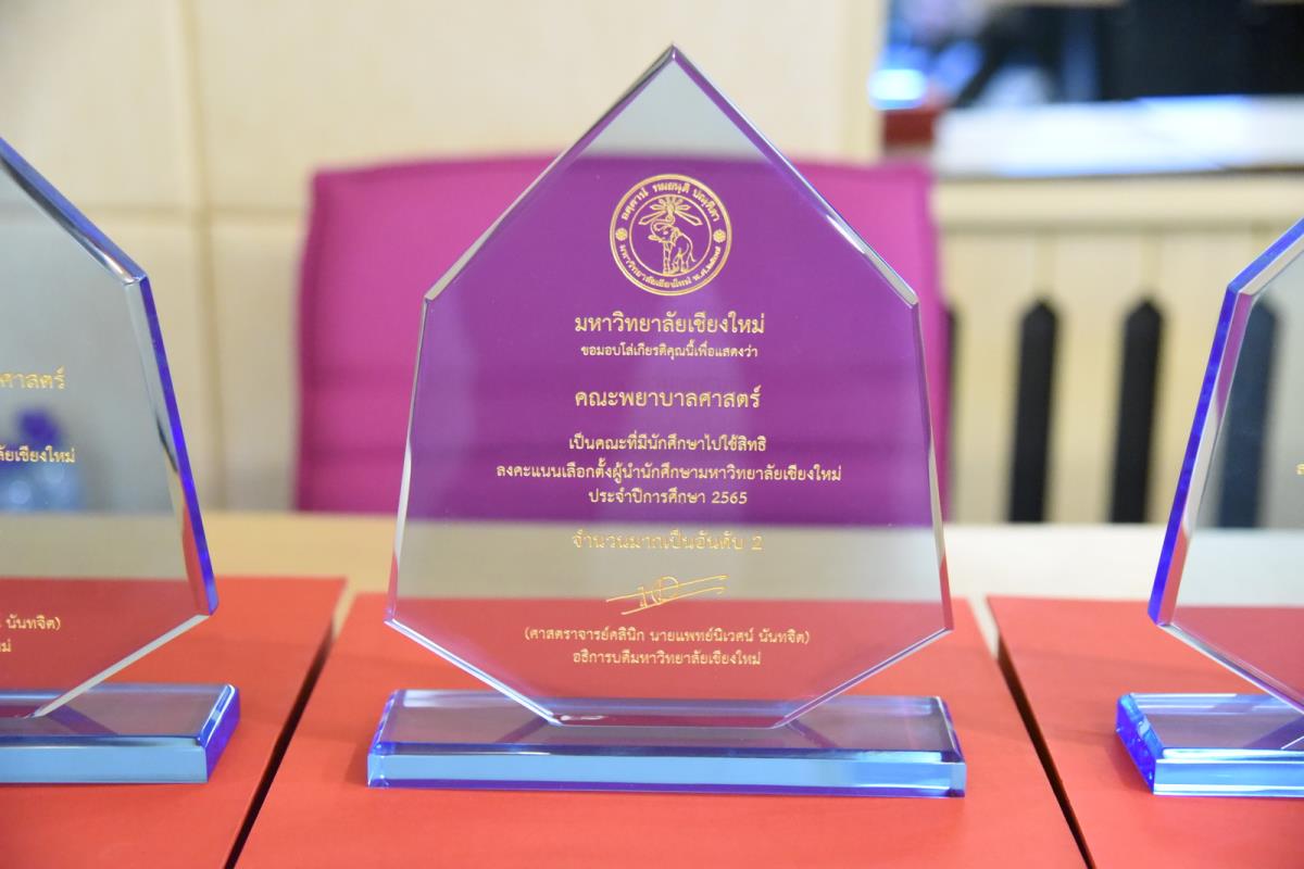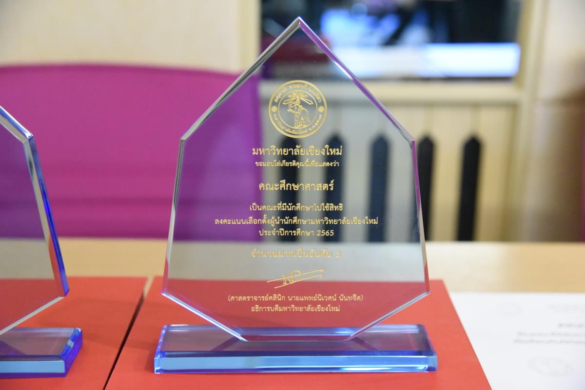 มอบโล่ประกาศเกียรติคุณและใบประกาศนียบัตร การลงคะแนนเสียงเลือกตั้งผู้นำนักศึกษามหาวิทยาลัยเชียงใหม่ ประจำปีการศึกษา 2565