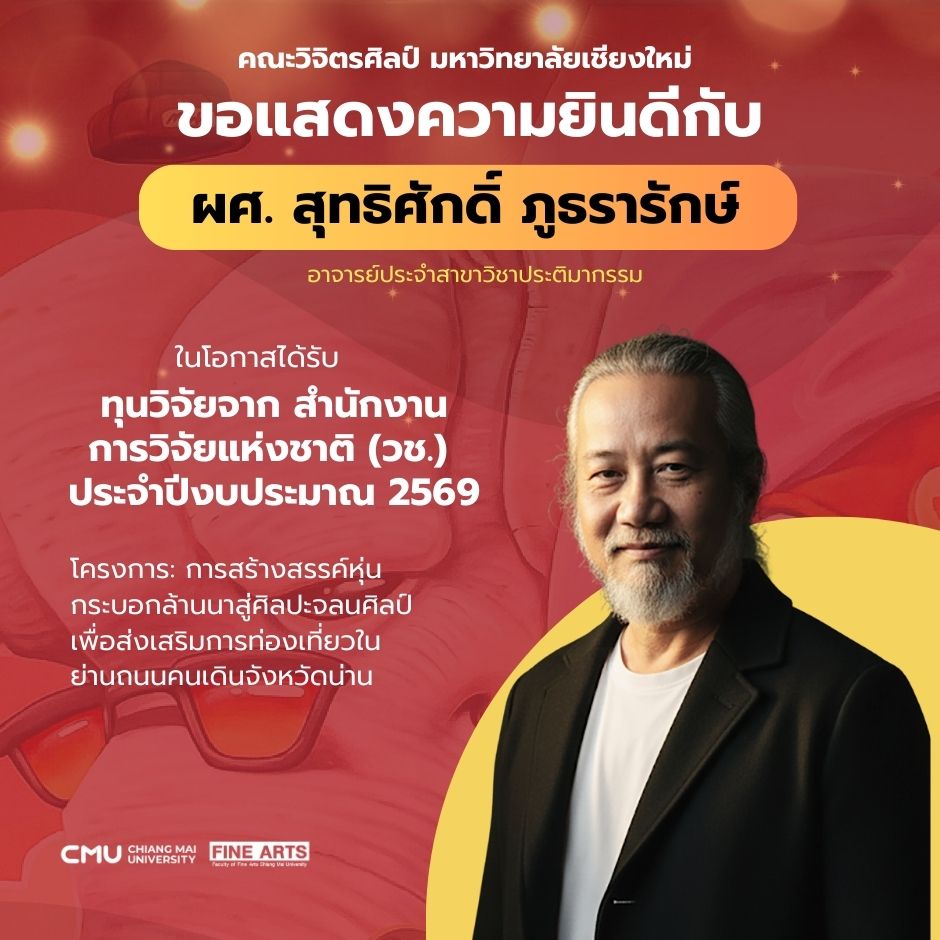 คณะวิจิตรศิลป์ มหาวิทยาลัยเชียงใหม่ ขอแสดงความยินดีกับอาจารย์ ในโอกาสได้รับทุนจาก สำนักงานการวิจัยแห่งชาติ (วช.) ประจำปีงบประมาณ 2569