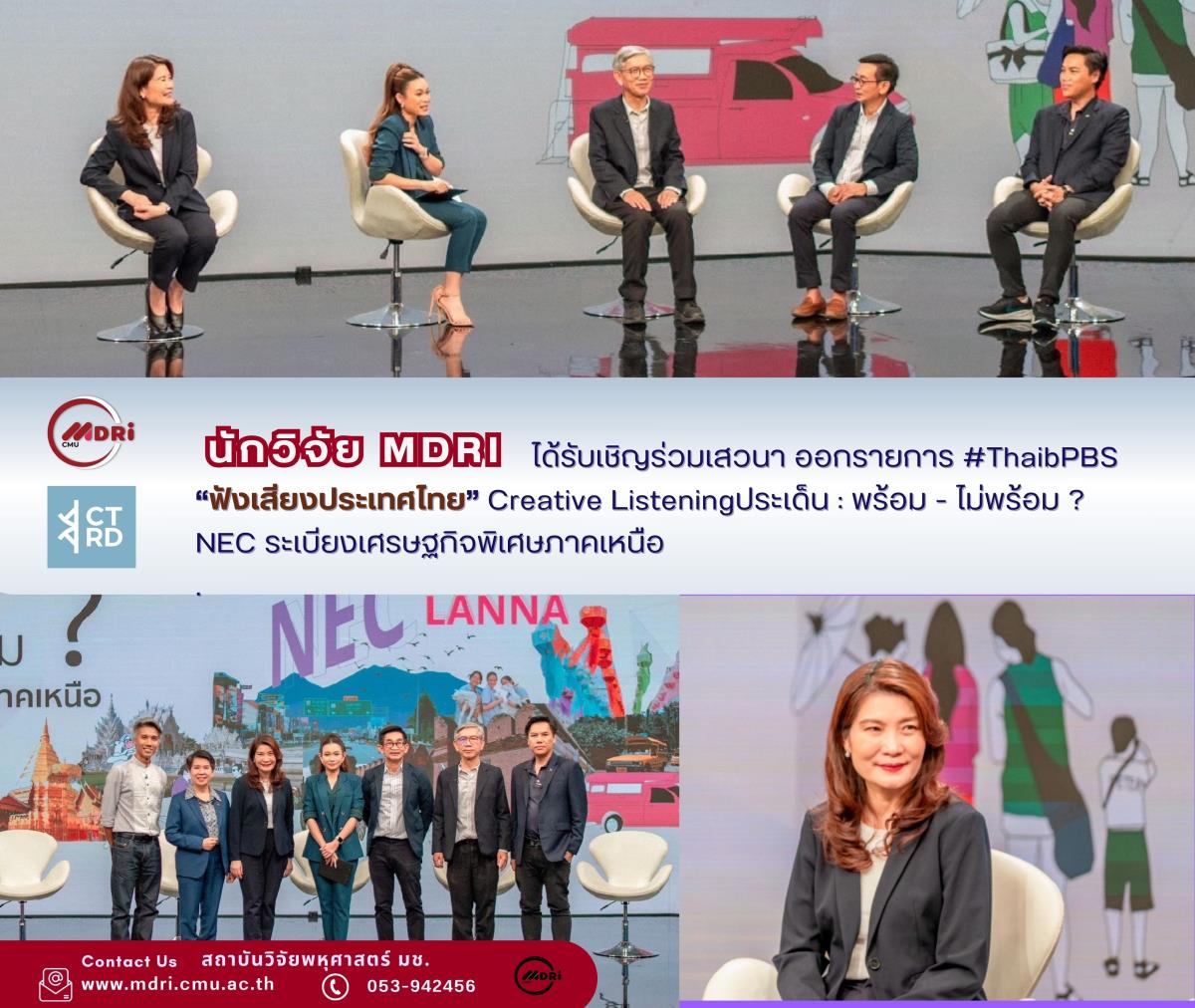 ดร.กรวรรณ สังขกร ศูนย์วิจัยและพัฒนาการท่องเที่ยว สถาบันวิจัยพหุศาสตร์ มหาวิทยาลัยเชียงใหม่ ได้รับเชิญร่วมเสวนา ออกรายการ #ThaibPBS “ฟังเสียงประเทศไทย” Creative Listening ประเด็น : พร้อม - ไม่พร้อม ? NEC ระเบียงเศรษฐกิจพิเศษภาคเหนือ