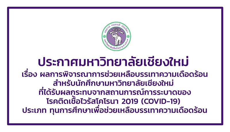 เรื่อง ผลการพิจารณาการช่วยเหลือบรรเทาความเดือดร้อนสำหรับนักศึกษามหาวิทยาลัยเชียงใหม่
