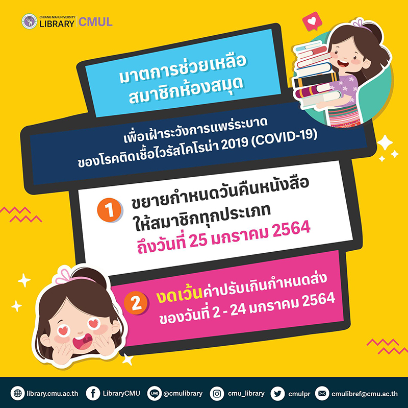 มาตการช่วยเหลือสมาชิกห้องสมุด ในสถานการณ์เฝ้าระวังและป้องกันการแพร่ระบาดของโรคติดเชื้อไวรัสโคโรน่า 2019 (COVID-19)