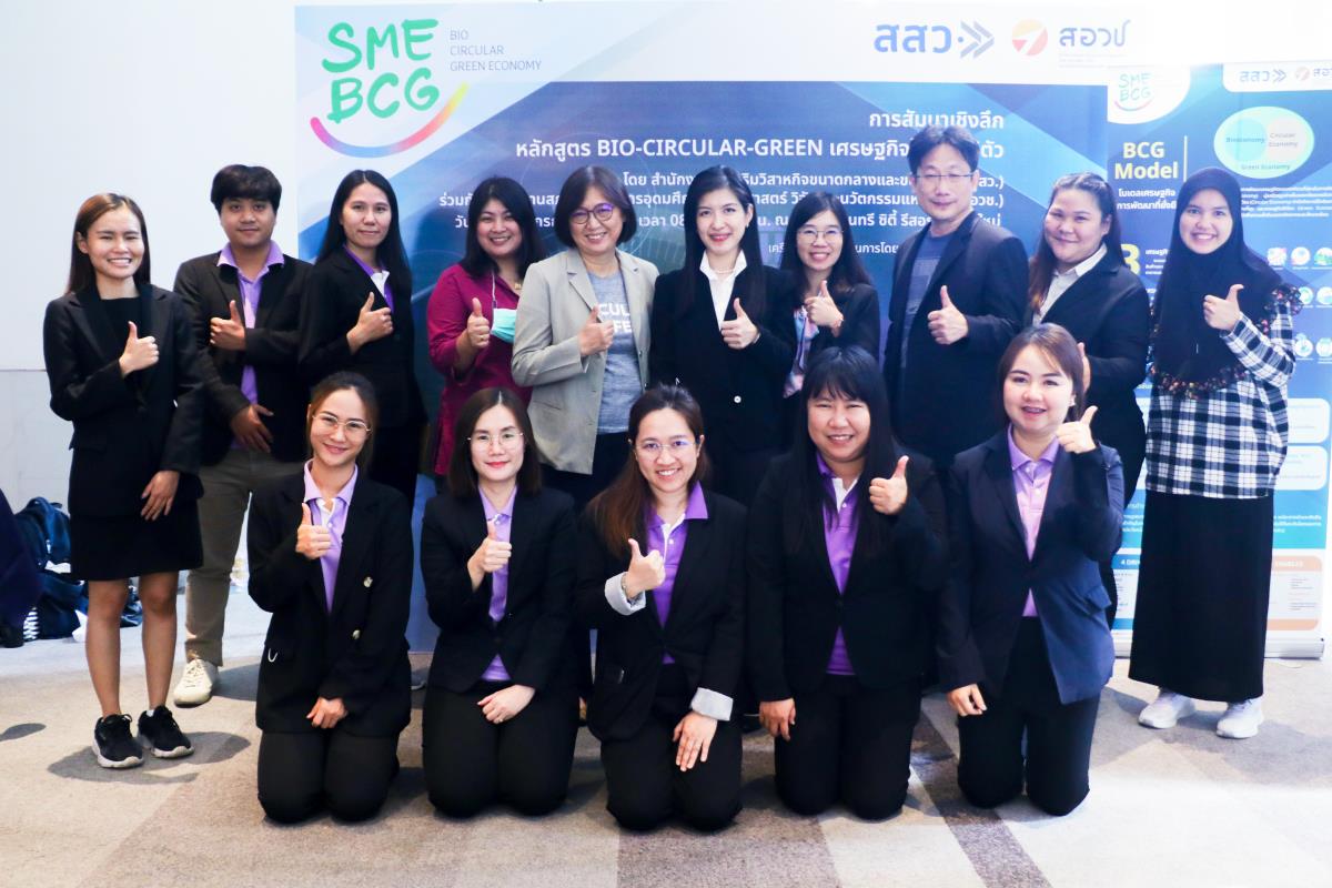 เมื่อวันศุกร์ที่ 21 กรกฎาคม 2566 สำนักงานสภานโยบายการอุดมศึกษา วิทยาศาสตร์ วิจัยและนวัตกรรมแห่งชาติ (สอวช.) ร่วมกับ สำนักงานส่งเสริมวิสาหกิจขนาดกลางและขนาดย่อม (สสว.) และเครือข่ายร่วมดำเนินการโดย วิทยาลัยนานาชาตินวัตกรรมดิจิทัล จัดงานสัมมนาเชิงลึกหลักสูตร BIO-CIRCULAR-GREEN เศรษฐกิจใหม่ ใกล้ตัว ภายใต้โครงการขับเคลื่อนระบบการส่งเสริมธุรกิจ MSME ด้วย BCG (BIO-CIRCULAR-GREEN ECONOMY) ณ ห้อง Convention 1-2 โรงแรมวินทรี ซิตี้ รีสอร์ท เชียงใหม่ โดยมีผู้เข้าร่วมสัมมนากว่า 150 คน ภายในงานมีการกล่าววัตถุประสงค์โดย รองศาสตราจารย์ ดร.มานัดถุ์ คำกอง รองคณบดีวิทยาลัยนานาชาตินวัตกรรมดิจิทัล และกล่าวเปิดงานโดย ดร.ศรวณีย์ สิงห์ทอง ผู้อำนวยการฝ่ายนโยบายเพื่อความยั่งยืน สำนักงานสภานโยบายการอุดมศึกษา วิทยาศาสตร์ วิจัยและนวัตกรรมแห่งชาติ สอวช.ผอ.กล่าวว่า โครงการนี้เป็นการช่วยเหลือผู้ประกอบการ MSME ผ่านการสร้างความตระหนักรู้ให้กับผู้ประกอบการ และยกระดับนักพัฒนา BCG ในพื้นที่ทั้ง 5 ภูมิภาค ผู้ประกอบการจะได้เรียนรู้การปรับธุรกิจสู่แนวคิด BCG “หลักสูตร BIO-CIRCULAR-GREEN เศรษฐกิจใหม่ ใกล้ตัว” เป็นกิจกรรมที่จัดขึ้นสำหรับผู้ประกอบการ MSME นักพัฒนาธุรกิจ นักออกแบบและพัฒนาผลิตภัณฑ์บริการ และผู้ที่สนใจด้าน BCG