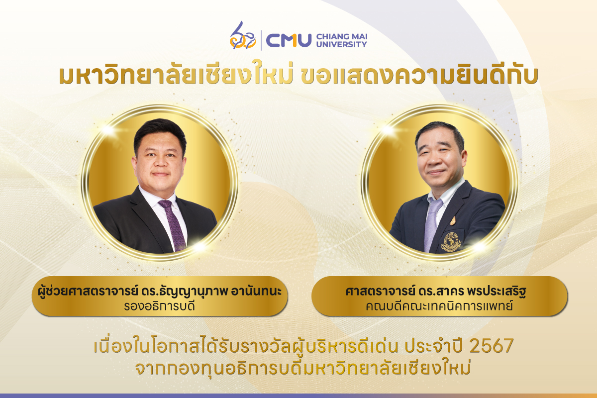 รางวัลผู้บริหารดีเด่น จากกองทุนอธิการบดีมหาวิทยาลัยเชียงใหม่ ประจำปี 2567 ได้แก่