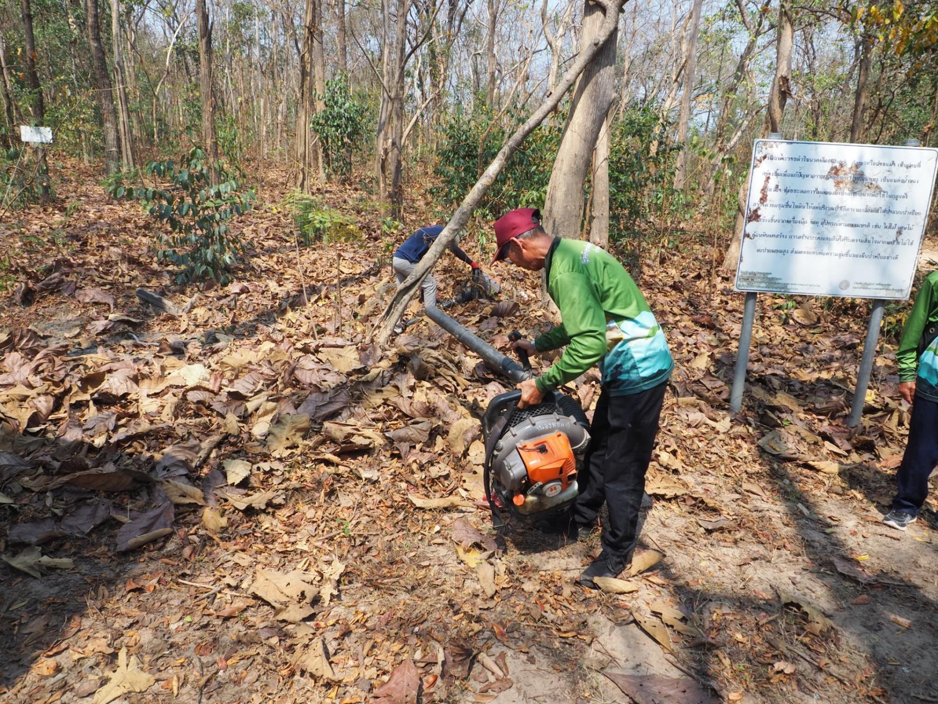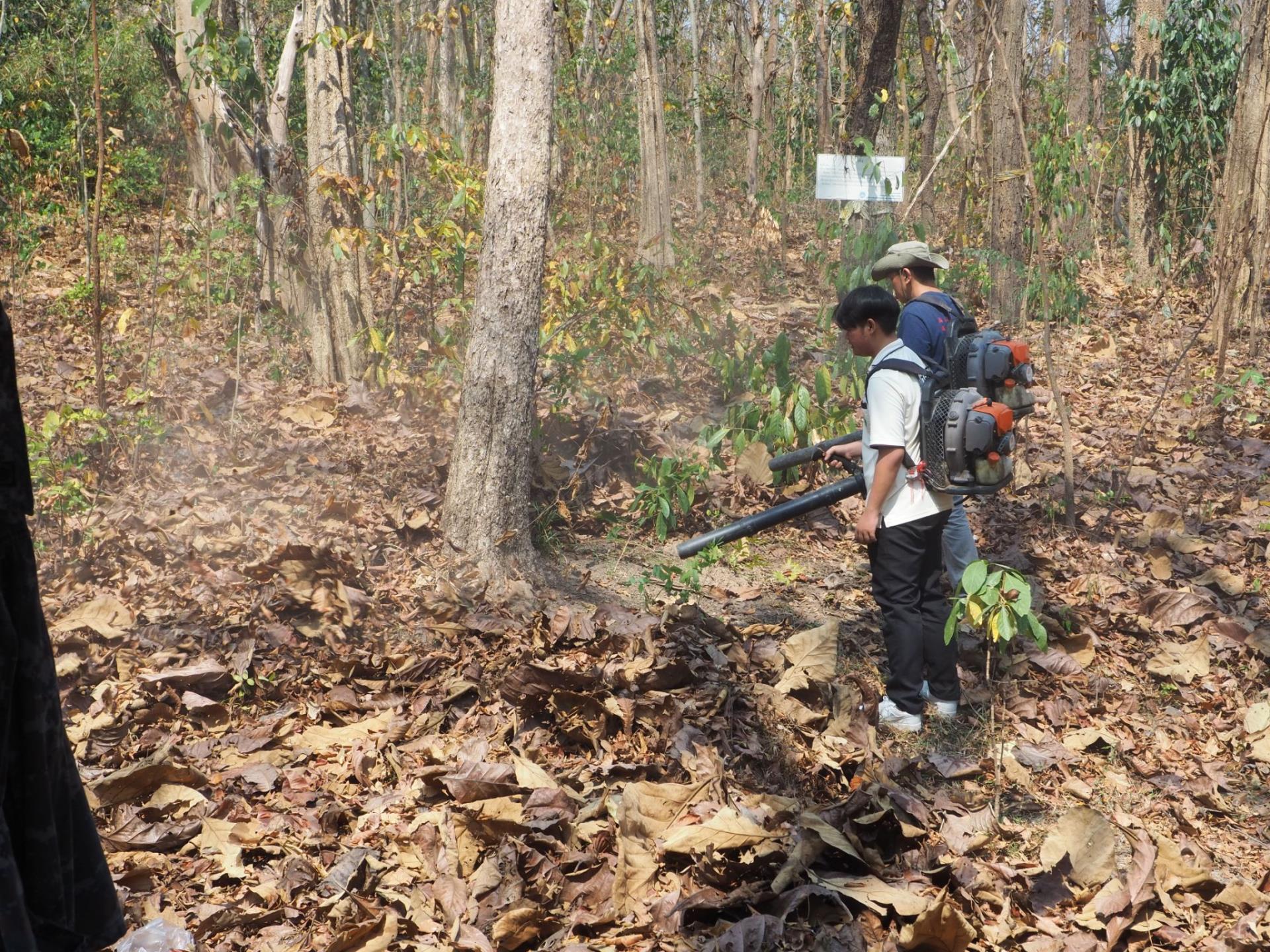 กิจกรรมที่ 2 : สาธิตการทำแนวกันไฟเพื่อปกป้องผืนป่า ชุมชนได้ถ่ายทอดแนวทางการจัดทำแนวกันไฟ ซึ่งเป็นมาตรการเชิงรุกในการเฝ้าระวังและป้องกันไฟป่าในช่วงฤดูเสี่ยงไฟไหม้ โดยสะท้อนให้เห็นถึงความตระหนัก ความร่วมมือ และความรับผิดชอบของคนในพื้นที่ที่ร่วมกันดูแล รักษา และปกป้องผืนป่าชุมชนให้คงความอุดมสมบูรณ์อย่างยั่งยืน