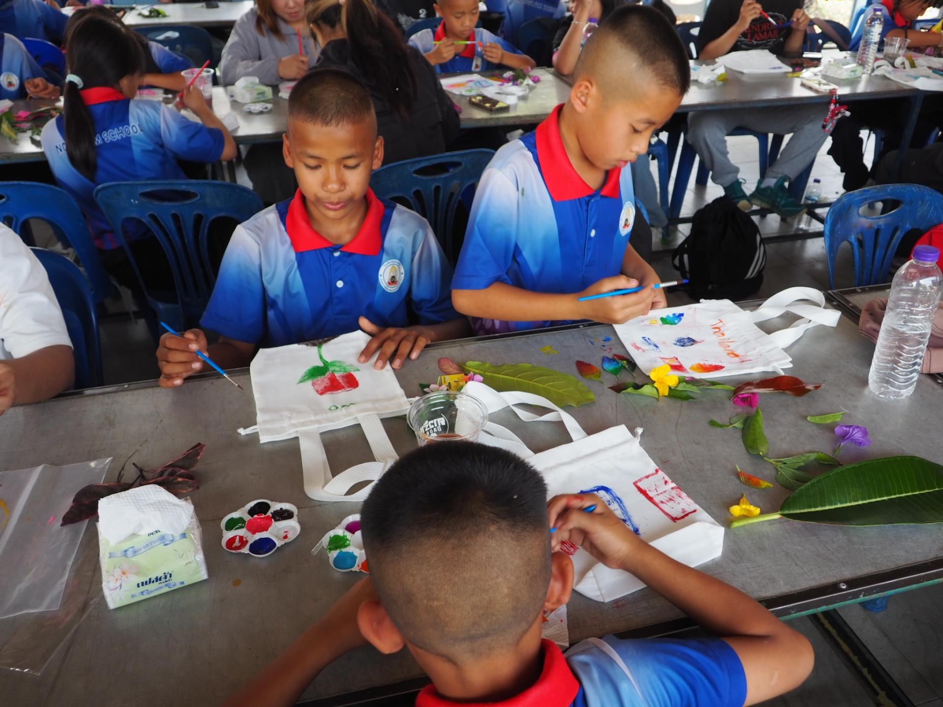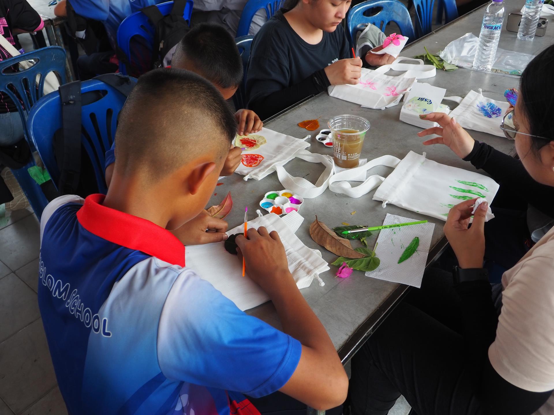 กิจกรรมที่ 3 : Eco Print ศิลปะจากธรรมชาติ กิจกรรมพิมพ์ลายกระเป๋าผ้าที่เป็นมิตรต่อสิ่งแวดล้อม โดยใช้สีและโครงสร้างจากวัสดุธรรมชาติ เช่น ใบไม้และดอกไม้ ร่วมกับนักเรียนโรงเรียนวัดหนองหล่ม (มูลนิธิหนองหล่มแบ๊พติสเทรนนิ่งเซ็นเตอร์) ระดับชั้นประถมศึกษาปีที่ 4–6 จำนวน 20 คน เป็นการส่งต่อการเรียนรู้ด้านสิ่งแวดล้อมผ่านกิจกรรมสร้างสรรค์