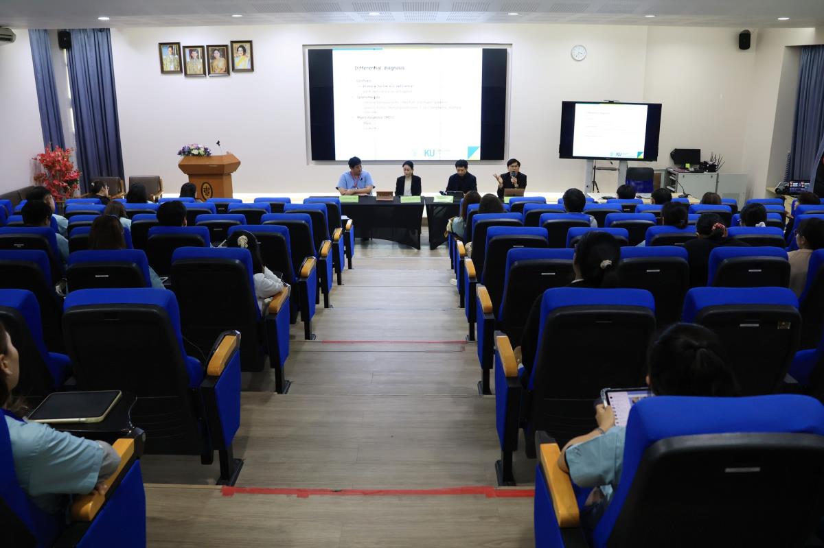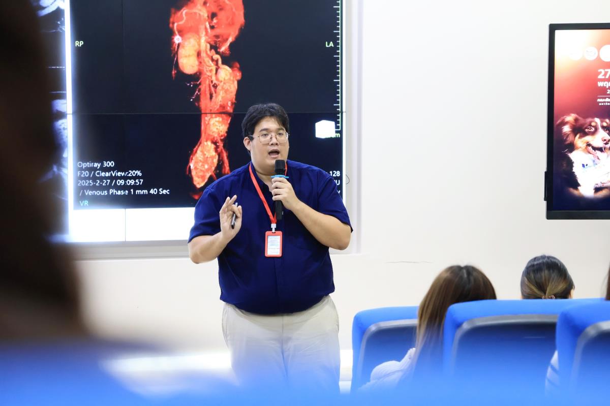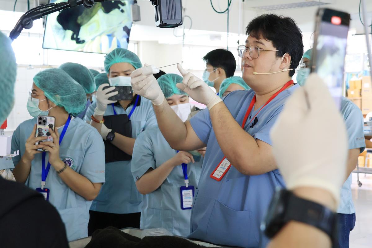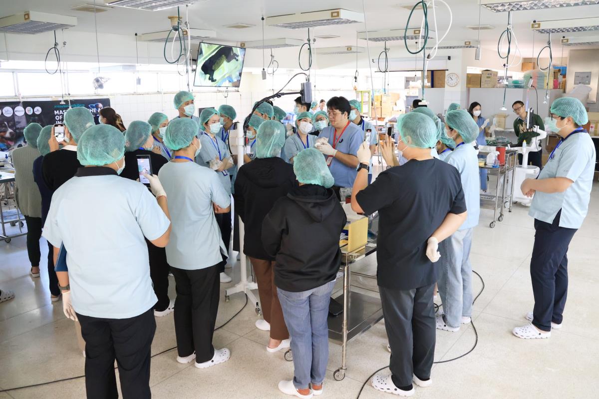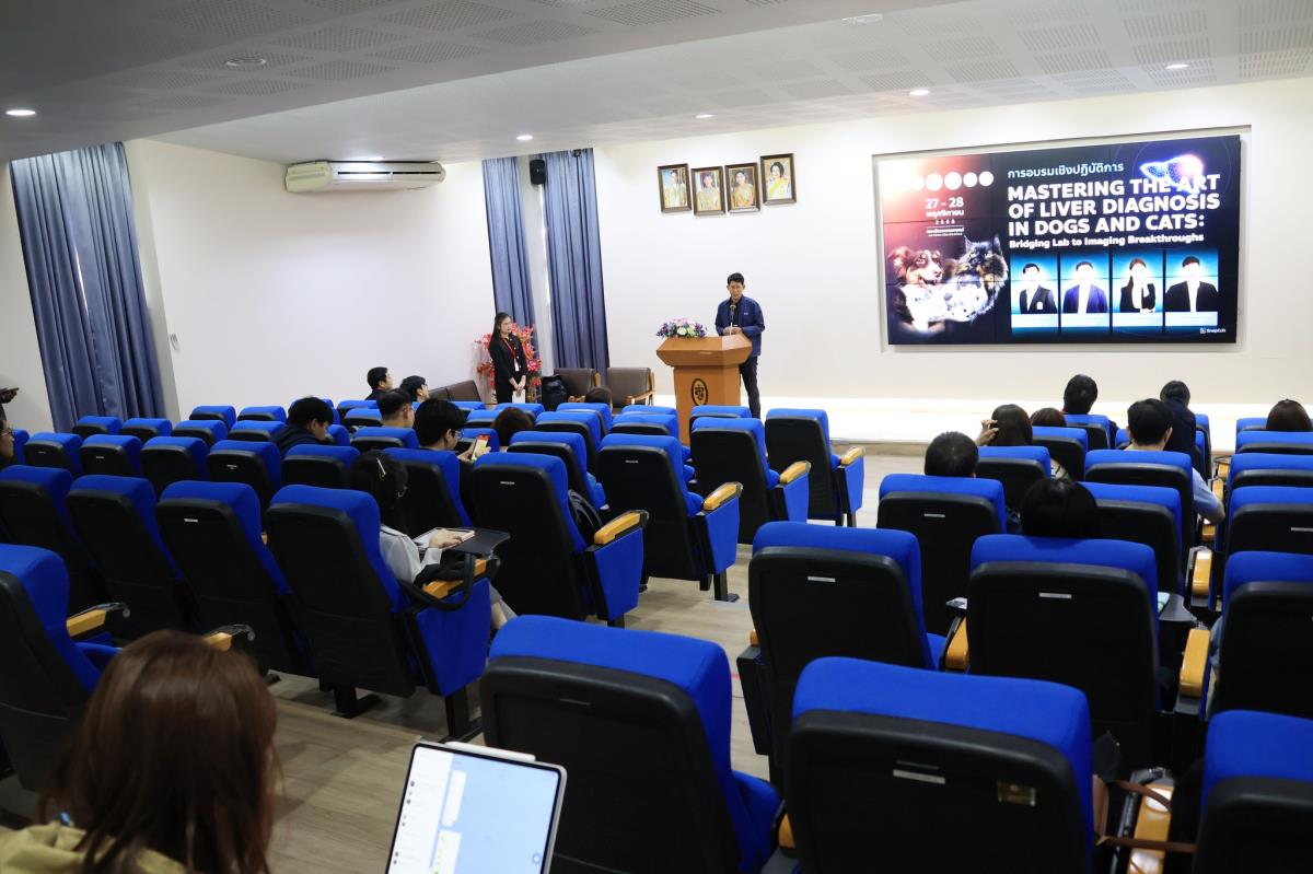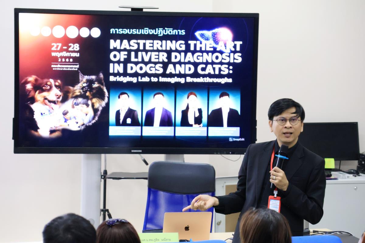 การอบรมครั้งนี้ประกอบด้วยภาคบรรยายและภาคปฏิบัติการเข้มข้น โดยได้รับเกียรติจากทีมวิทยากรผู้ทรงคุณวุฒิ ถ่ายทอดองค์ความรู้ด้านการวินิจฉัยโรคตับในสุนัขและแมวอย่างครบวงจร ตั้งแต่หลักการตรวจวิเคราะห์ทางห้องปฏิบัติการ เทคนิคการตรวจทางภาพขั้นสูง ตลอดจนการทำหัตถการแบบ Ultrasound-Guided FNA และ Core Biopsy ผู้เข้าร่วมยังได้ร่วมทำ Workshop แบบเจาะลึก เพื่อเสริมสร้างทักษะเชิงปฏิบัติให้สามารถประยุกต์ใช้ในการดูแลรักษาสัตว์ได้อย่างมีประสิทธิภาพยิ่งขึ้น โครงการอบรมดังกล่าวมีวัตถุประสงค์เพื่อยกระดับองค์ความรู้และทักษะเฉพาะทางด้านเวชศาสตร์ตับในสัตว์เลี้ยง ตลอดจนสนับสนุนการพัฒนาศักยภาพของสัตวแพทย์และบุคลากรในสายงานที่เกี่ยวข้องให้ก้าวทันนวัตกรรมการวินิจฉัยยุคใหม่อย่างต่อเนื่อง