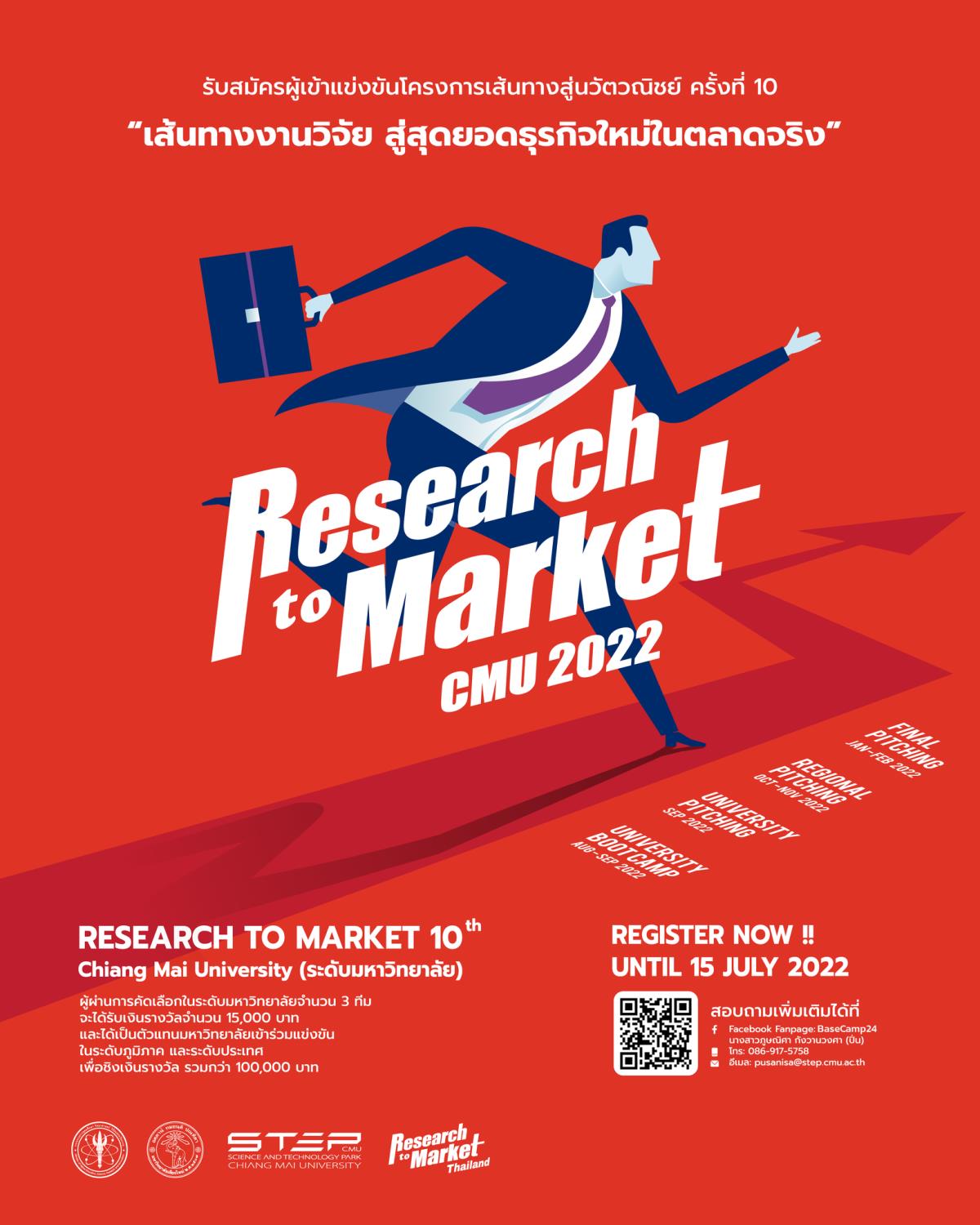 ขอเชิญนักศึกษามหาวิทยาลัยเชียงใหม่ทุกระดับ ทุกชั้นปี เข้าร่วมประกวดแข่งขันจัดทำแผนธุรกิจผลิตภัณฑ์นวัตกรรมจากงานวิจัยของมหาวิทยาลัย ชิงเงินรางวัลรวมมูลค่ากว่า 100,000 บาท