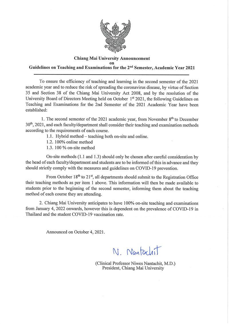 ประกาศสำคัญของมหาวิทยาลัยเชียงใหม่