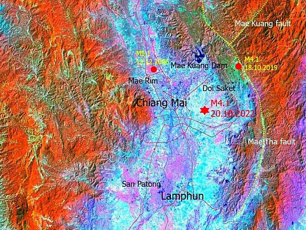 20 ตุลาคม 2565 ศูนย์กลางการเกิดอยู่ที่ ต.แม่คือ อ.ดอยสะเก็ด จ.เชียงใหม่ ขนาด 4.1 แมกนิจูด