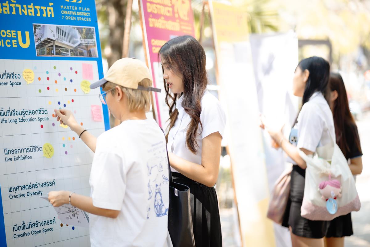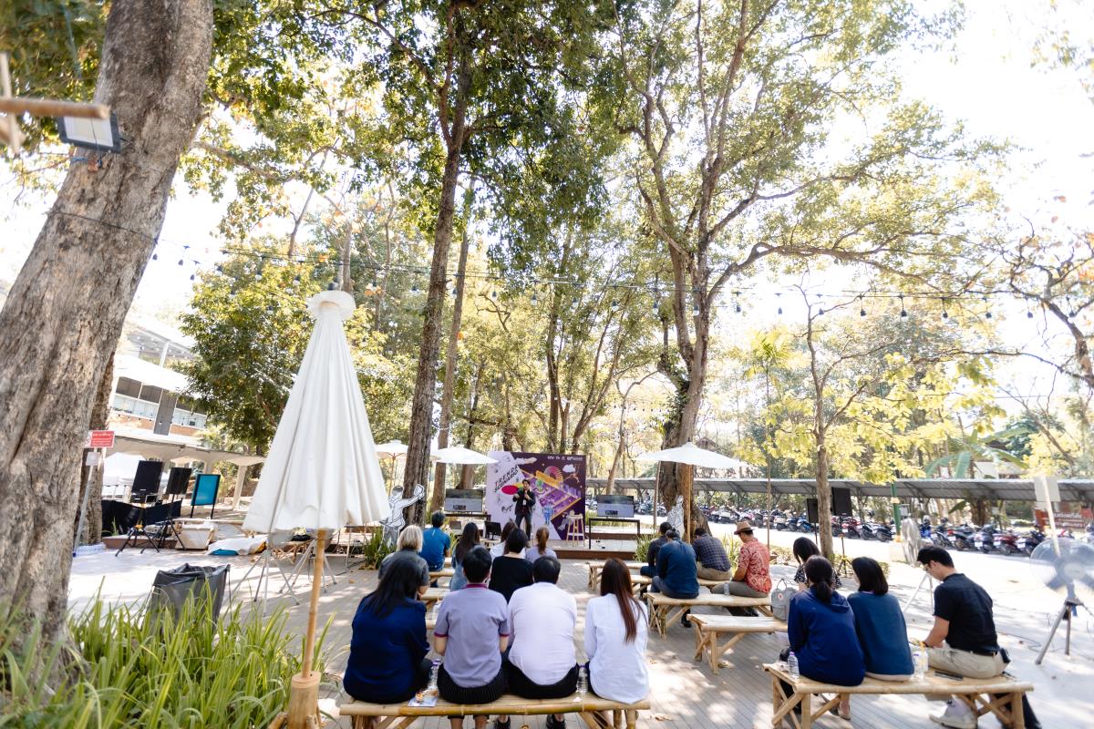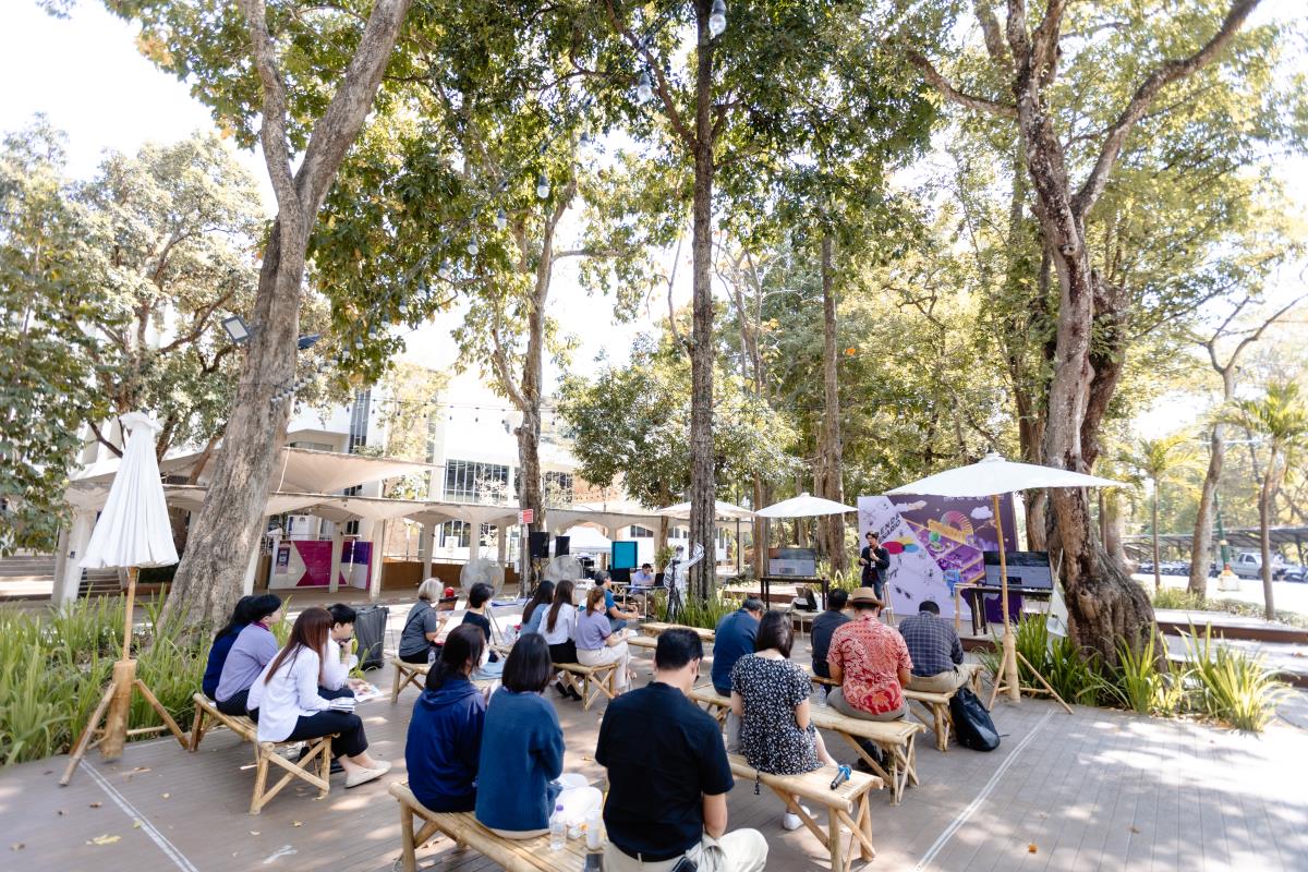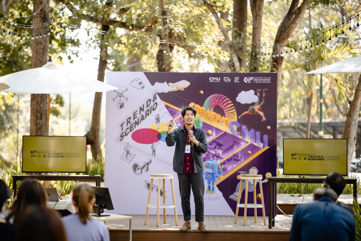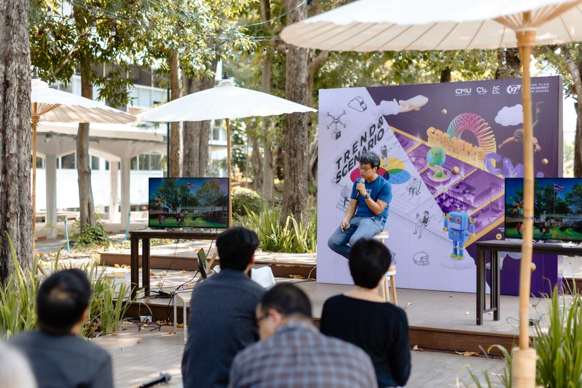 มช. จัดเสวนาเสนอข้อมูลเชิงลึก “แนวโน้มการพัฒนาย่านสร้างสรรค์ในอนาคต (Future Creative District’s Trends)” เผยแพร่ข้อมูลที่ได้จากการวิเคราะห์ และการรวบรวมข้อมูลของบุคคลสำคัญและผู้มีส่วนได้ส่วนเสีย และนำเสนอแนวโน้มอนาคต (Trends) เพื่อร่วมวางแผนพัฒนาพื้นที่นำร่องของมหาวิทยาลัยเชียงใหม่ โดยมีคุณพิทักษ์ ธนาบุตร ผู้รับผิดชอบโครงการฯ และ คุณ ณรงค์วิทย์ อารีมิตร สถาปนิกจากบริษัท สถาปนิก 49 จำกัด เป็นผู้ร่วมถ่ายถอดข้อมูลดังกล่าว ณ ลานไม้เทียม สำนักหอสมุด มช. วันที่ 13 กุมภาพันธ์ 2567