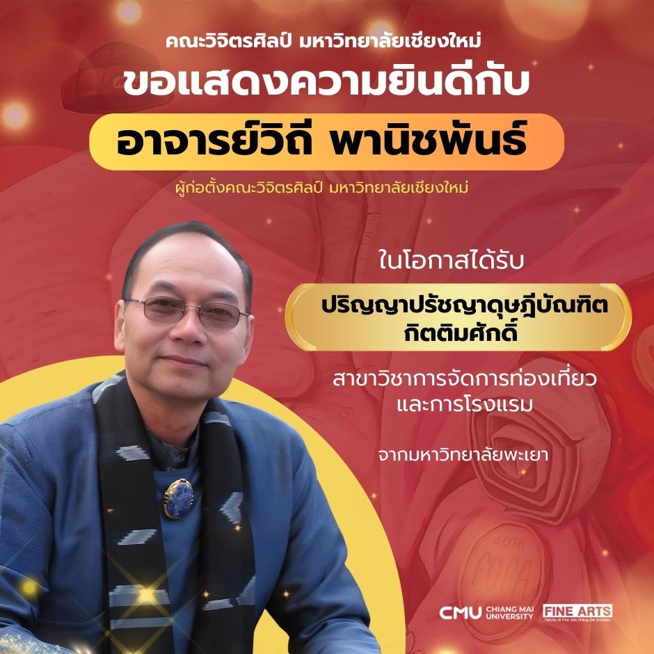 อาจารย์วิถี พานิชพันธ์ อาจารย์ผู้ก่อตั้งคณะวิจิตรศิลป์ มหาวิทยาลัยเชียงใหม่ ได้รับ ปริญญาปรัชญาดุษฎีบัณฑิตกิตติมศักดิ์ ในสาขาวิชาการจัดการท่องเที่ยวและการโรงแรม จากมหาวิทยาลัยพะเยา