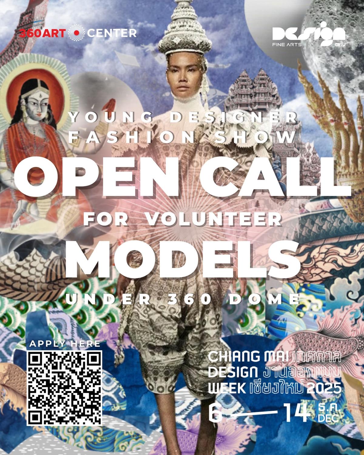 เปิดรับอาสาสมัครเดินแบบสำหรับ Young Designer Fashion Show วันที่ 14 ธันวาคม 2025 ร่วมจัดโดย 360Art Center และ สาขาการออกแบบ คณะวิจิตรศิลป์ มช. ภายใต้ CMDW 2025 Design Fine Arts CMU