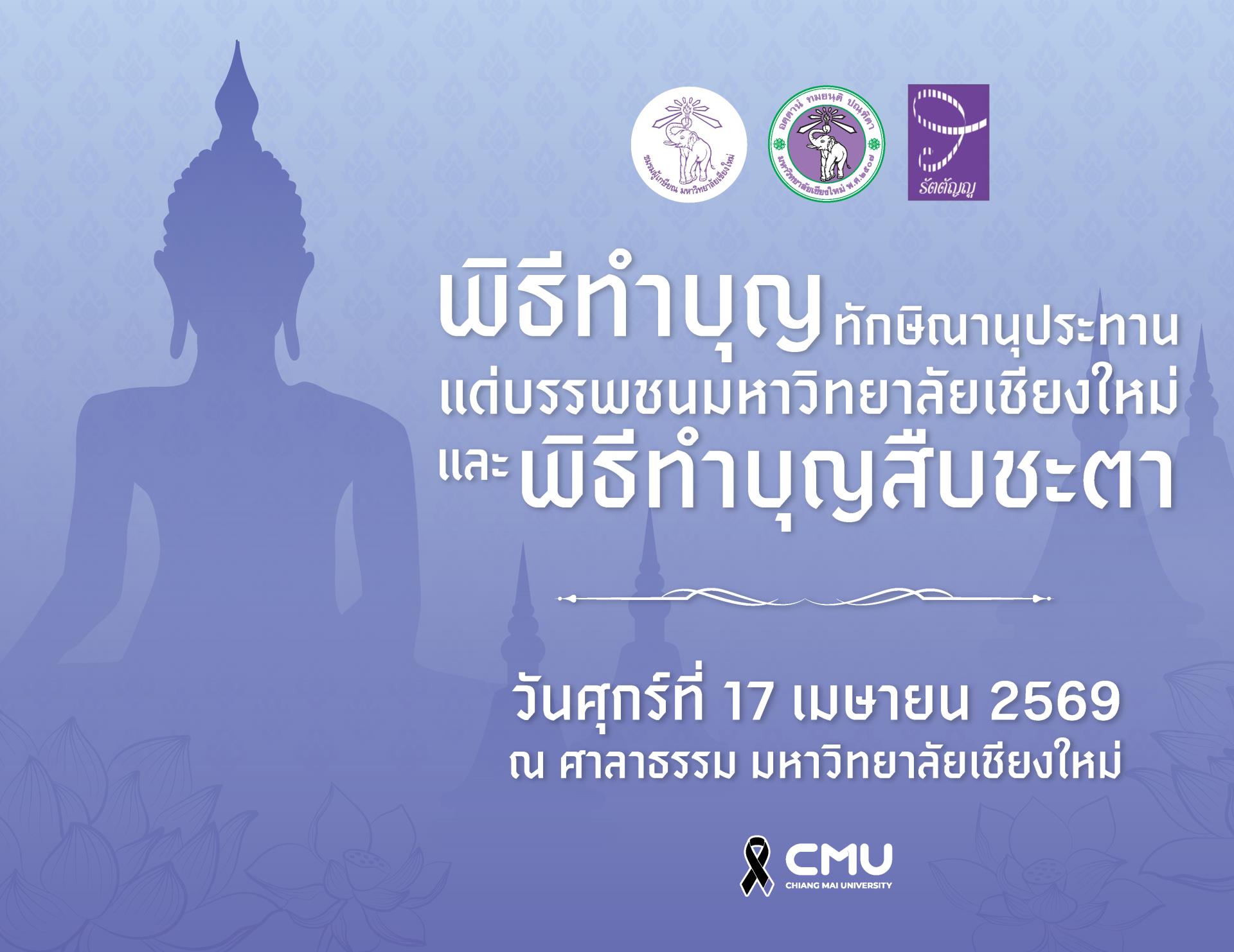 วันศุกร์ที่ 17 เม.ย. นี้ ชมรมผู้เกษียณ มช. ขอเชิญร่วมพิธีทักษิณานุประทานแด่บรรพชน พร้อมพิธีทำบุญสืบชะตา ประจำปี 2569